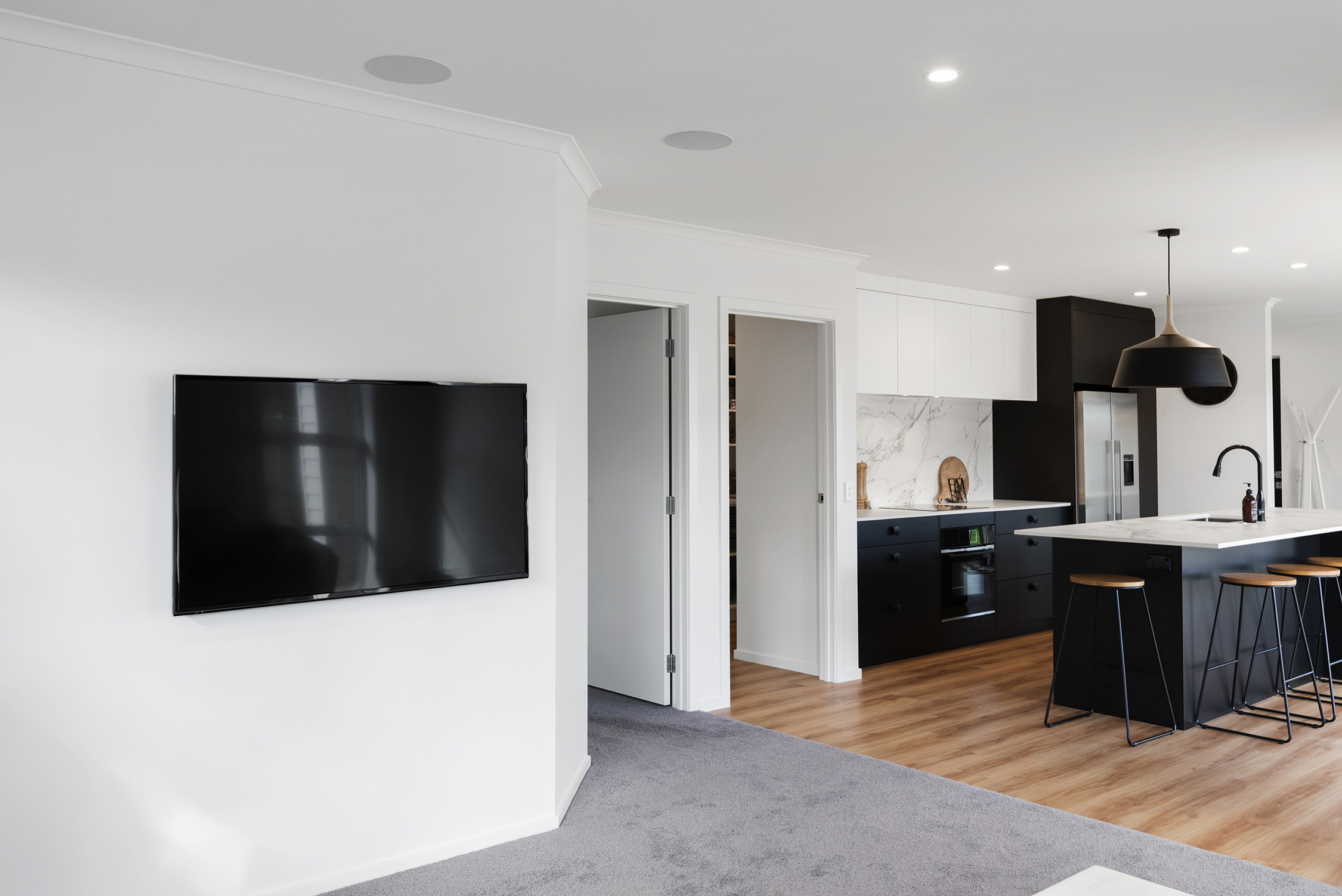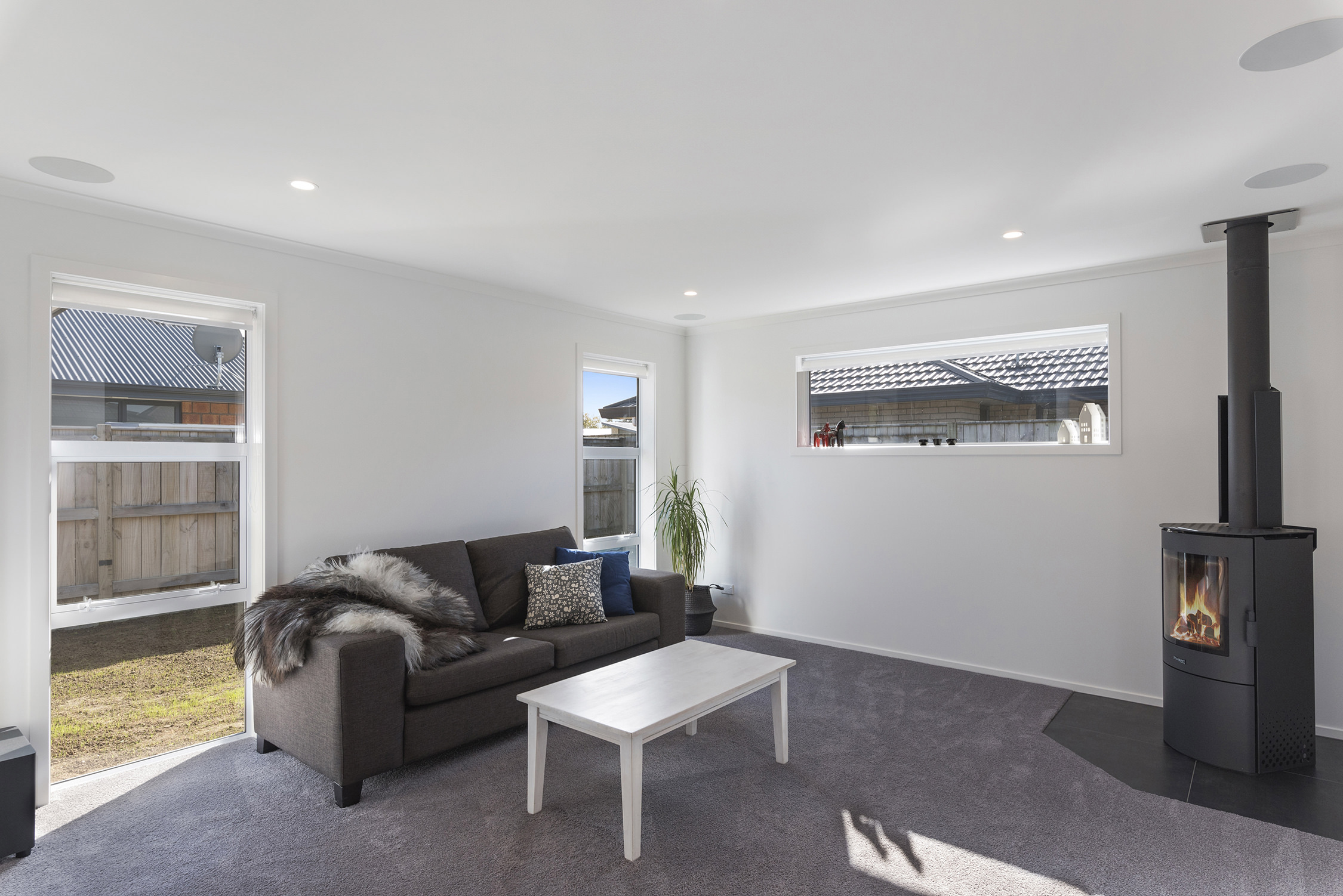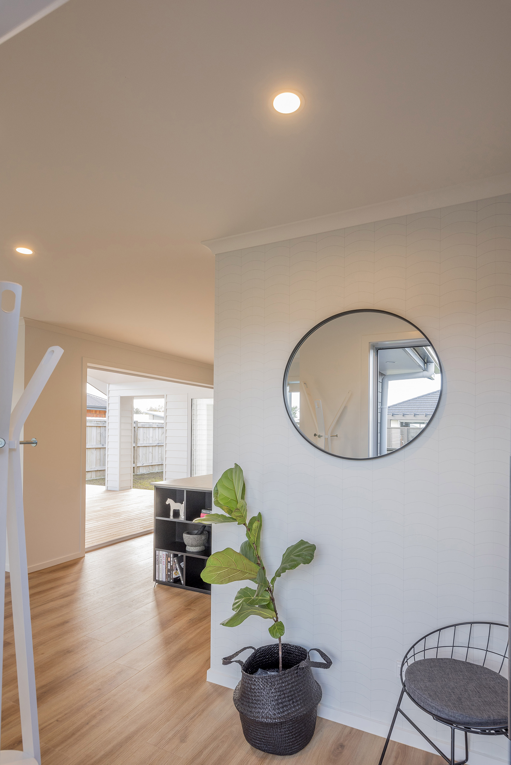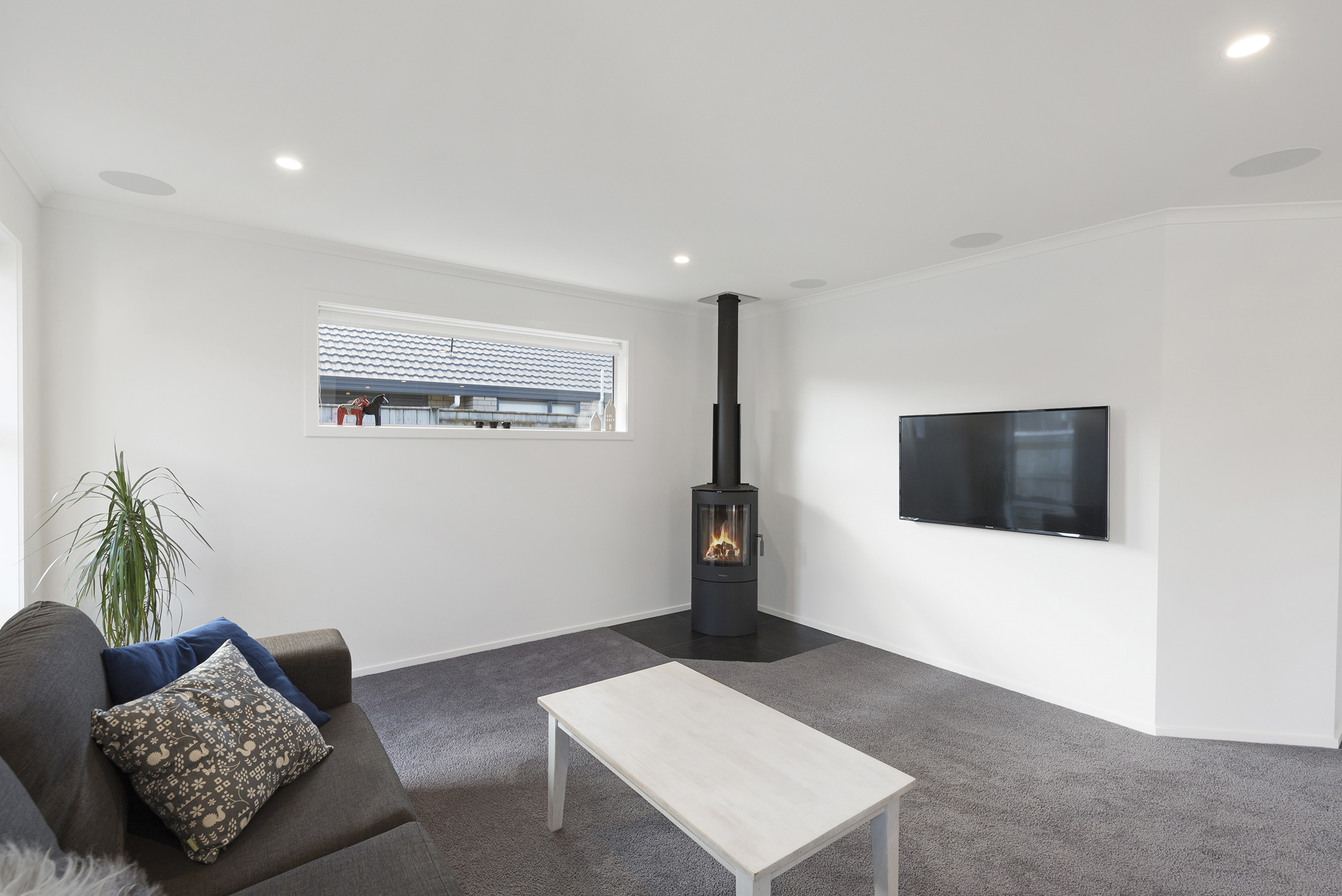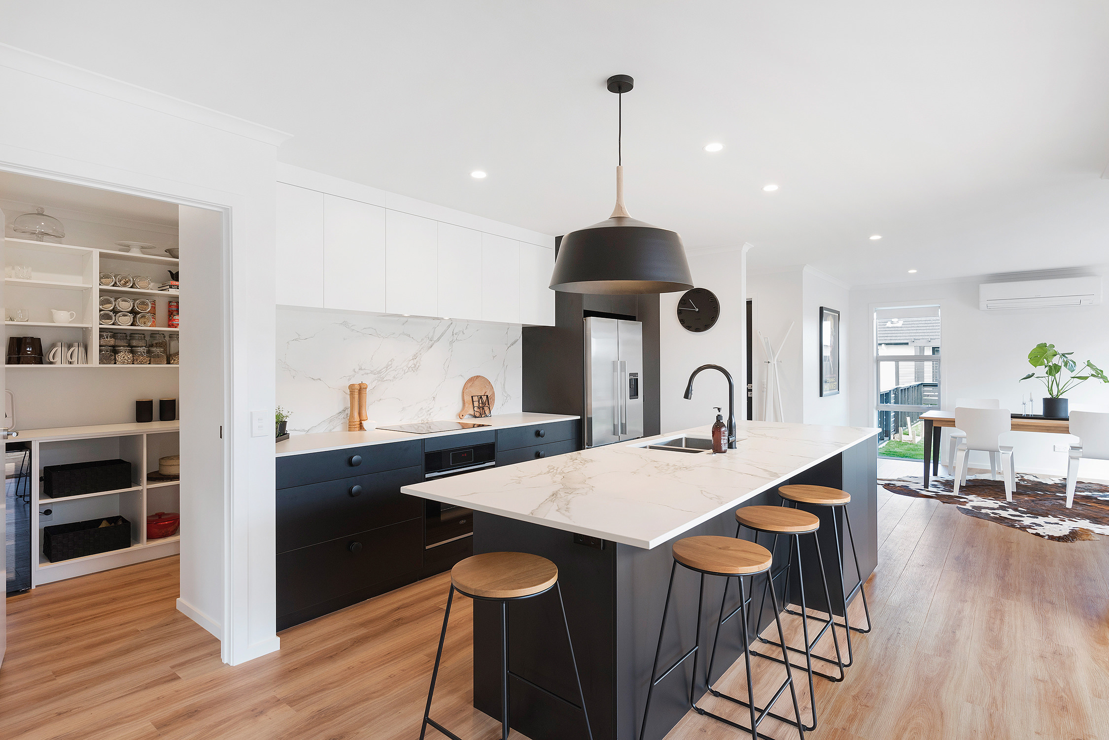 Nestled in an expanding Palmerston North suburb, this gorgeous new home is a true escape from the world. With a flexible family-friendly floor plan featuring two living spaces, this four-bedroom home is laid out for modern life with plenty of personal touches thrown in. The home was custom-designed to suit the family’s needs. Large bifold doors open to a spacious portico. This serves as a fantastic extension of the living space providing an area for all-weather entertaining. The raked ceiling is eye-catching overhead. Smartly clad in a mix of low-maintenance materials, the home’s exterior updates the traditional gable look. The spacious designer kitchen is its social hub. Striking benchtops serve up plenty of style in the entertainer’s space with self-cleaning and induction appliances and a large scullery backstage. A freestanding wood fi re keeps the lounge warm and welcoming in the depths of winter. There’s also a heat pump for instant gratifi cation. This is a wonderful example of how contemporary design and materials can serve family life in style.