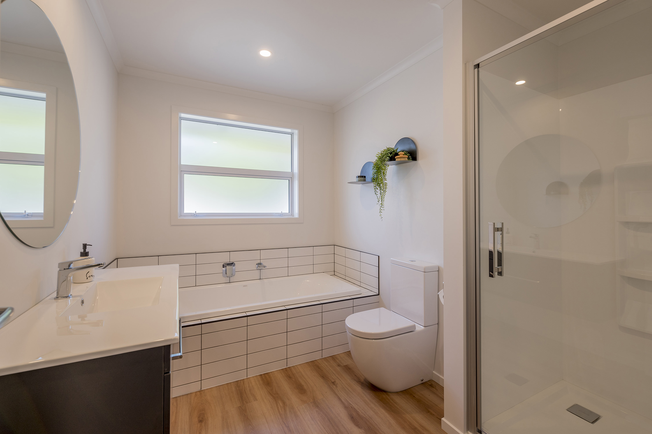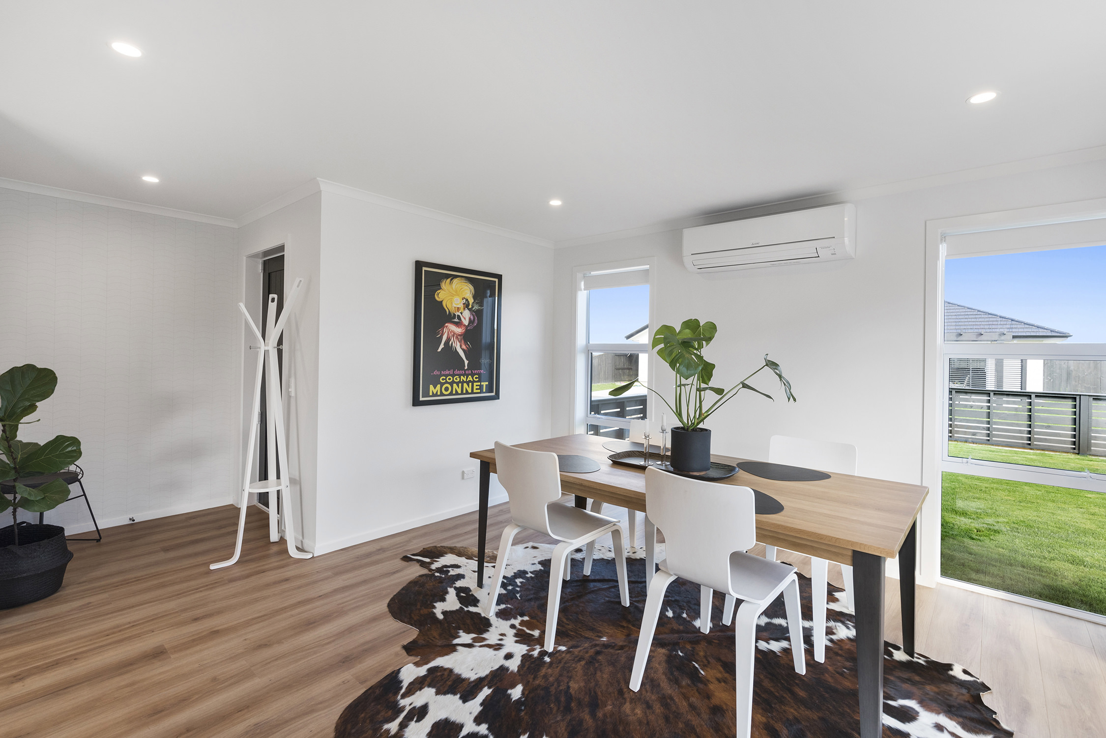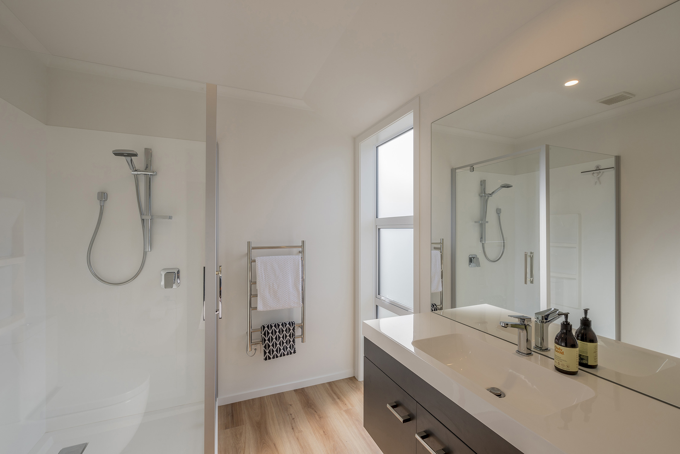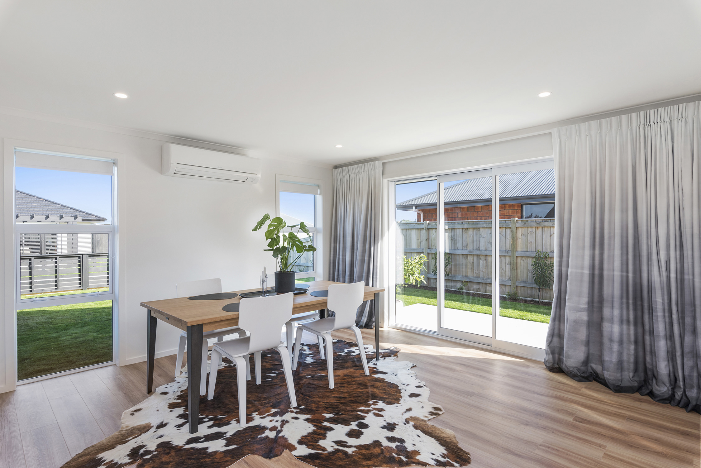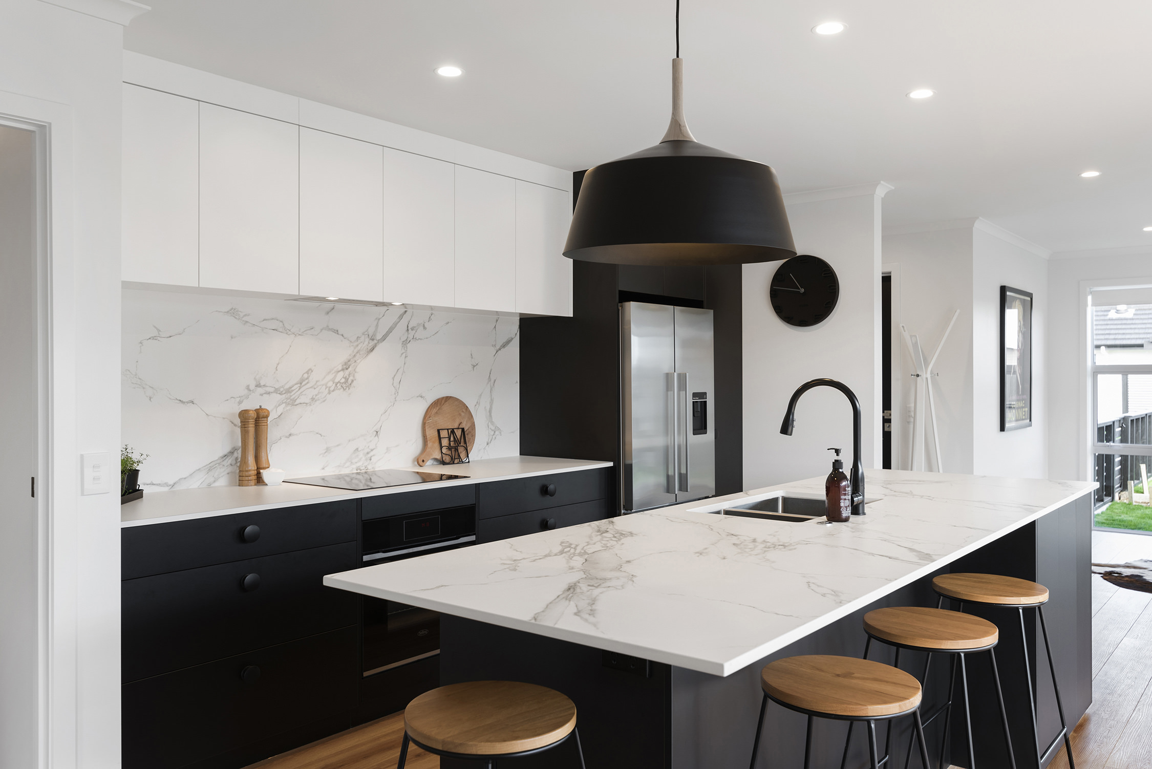 Nestled in an expanding Palmerston North suburb, this gorgeous new home is a true escape from the world. With a flexible family-friendly floor plan featuring two living spaces, this four-bedroom home is laid out for modern life with plenty of personal touches thrown in. The home was custom-designed to suit the family’s needs. Large bifold doors open to a spacious portico. This serves as a fantastic extension of the living space providing an area for all-weather entertaining. The raked ceiling is eye-catching overhead. Smartly clad in a mix of low-maintenance materials, the home’s exterior updates the traditional gable look. The spacious designer kitchen is its social hub. Striking benchtops serve up plenty of style in the entertainer’s space with self-cleaning and induction appliances and a large scullery backstage. A freestanding wood fi re keeps the lounge warm and welcoming in the depths of winter. There’s also a heat pump for instant gratifi cation. This is a wonderful example of how contemporary design and materials can serve family life in style.
