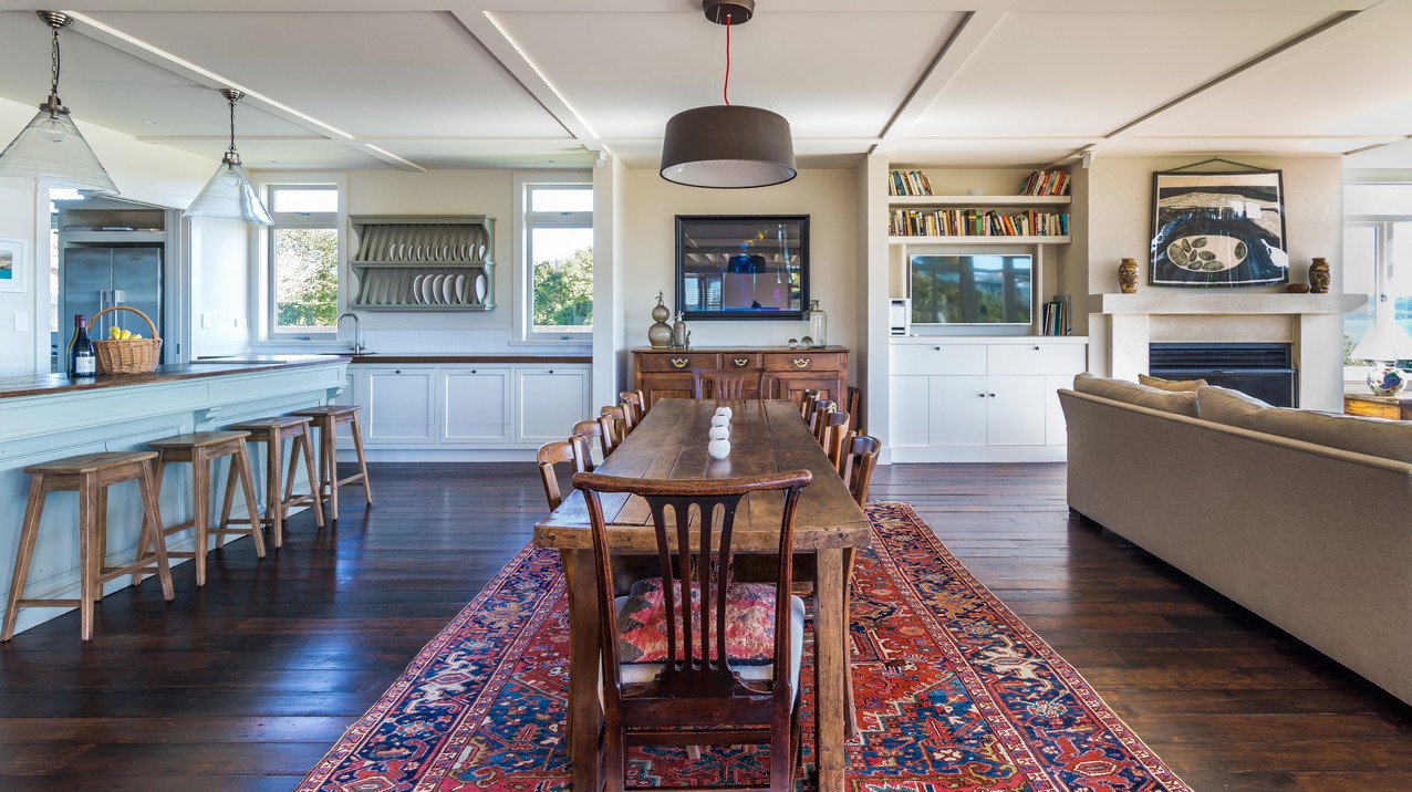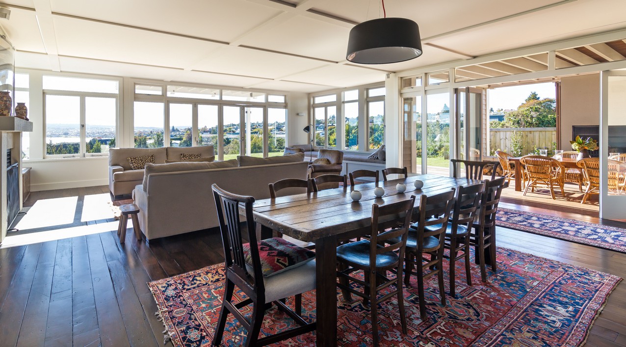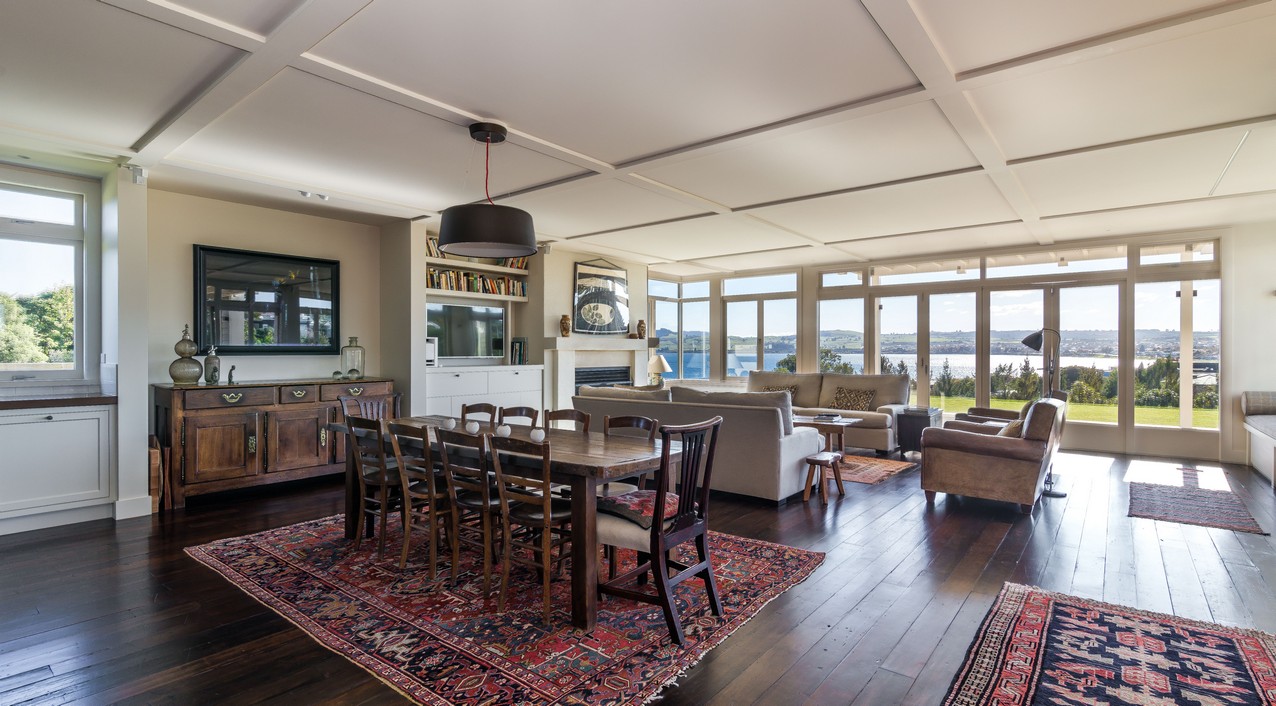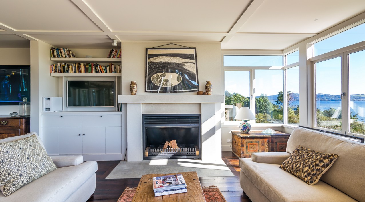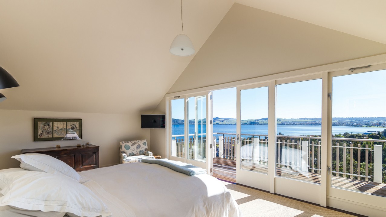 Stunning lake views and sun-drenched living spaces are only the beginning. Two covered outdoor areas offer wonderful alfresco options whatever the weather. A large fireplace allows the owners to entertain long after the sun goes down. Hidden under the deck, a thermal hot tub is revealed at the press of a button. Children and adults will love soaking away the day in this generous pool, overlooking the lake and township. Inside, it’s cosy and warm, thanks to underfloor heating and radiators throughout the house, both heated by underground thermal hot water. The beautifully detailed ceilings provide lovely balance overhead. The owners have complemented stunning craftsmanship with elegant and understated interior design. Their precious art collection is displayed with pride in the wide-open spaces. A number of daybeds have been cleverly incorporated, allowing this 448sqm three-bedroom, three-bathroom home to sleep 16. Bring your friends.