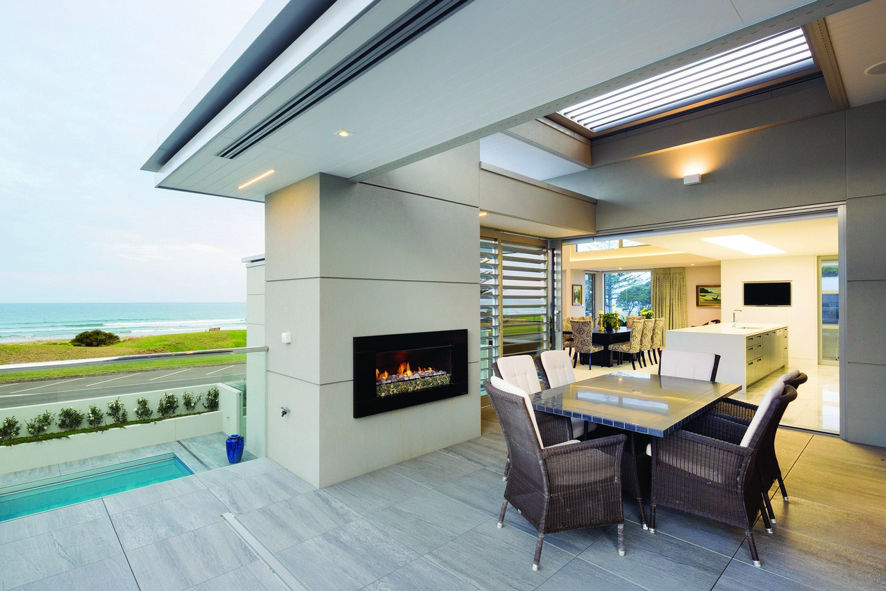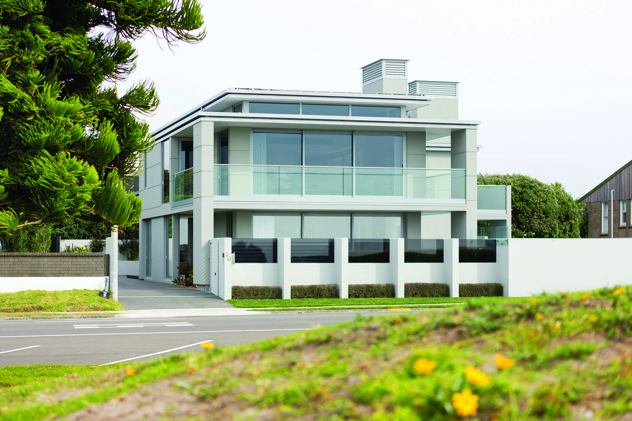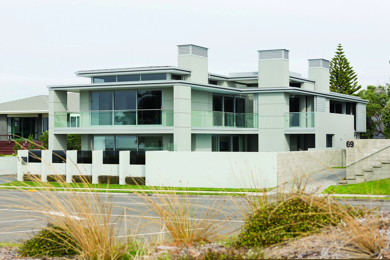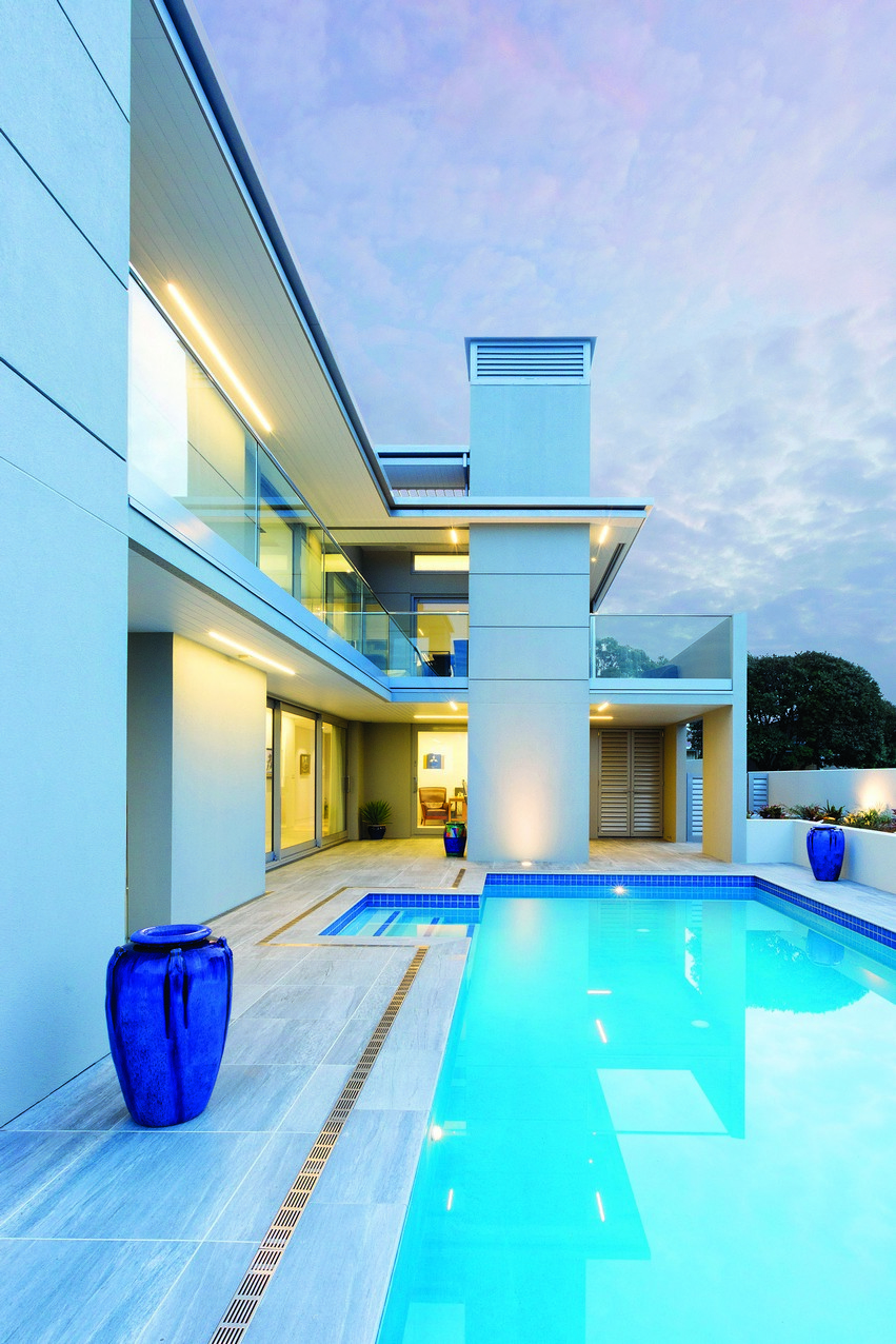 A 3.5m-high cedar door opens to the ultra-chic 419sqm interior of this modern Mt Maunganui marvel. Polished stone tiling in the entrance is a Turkish delight.