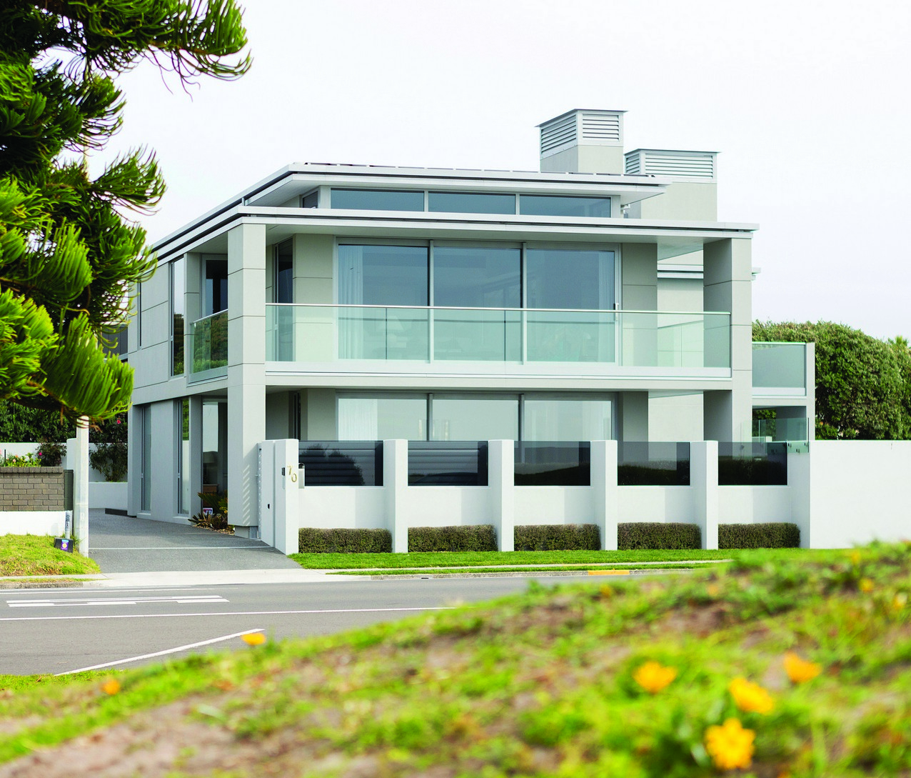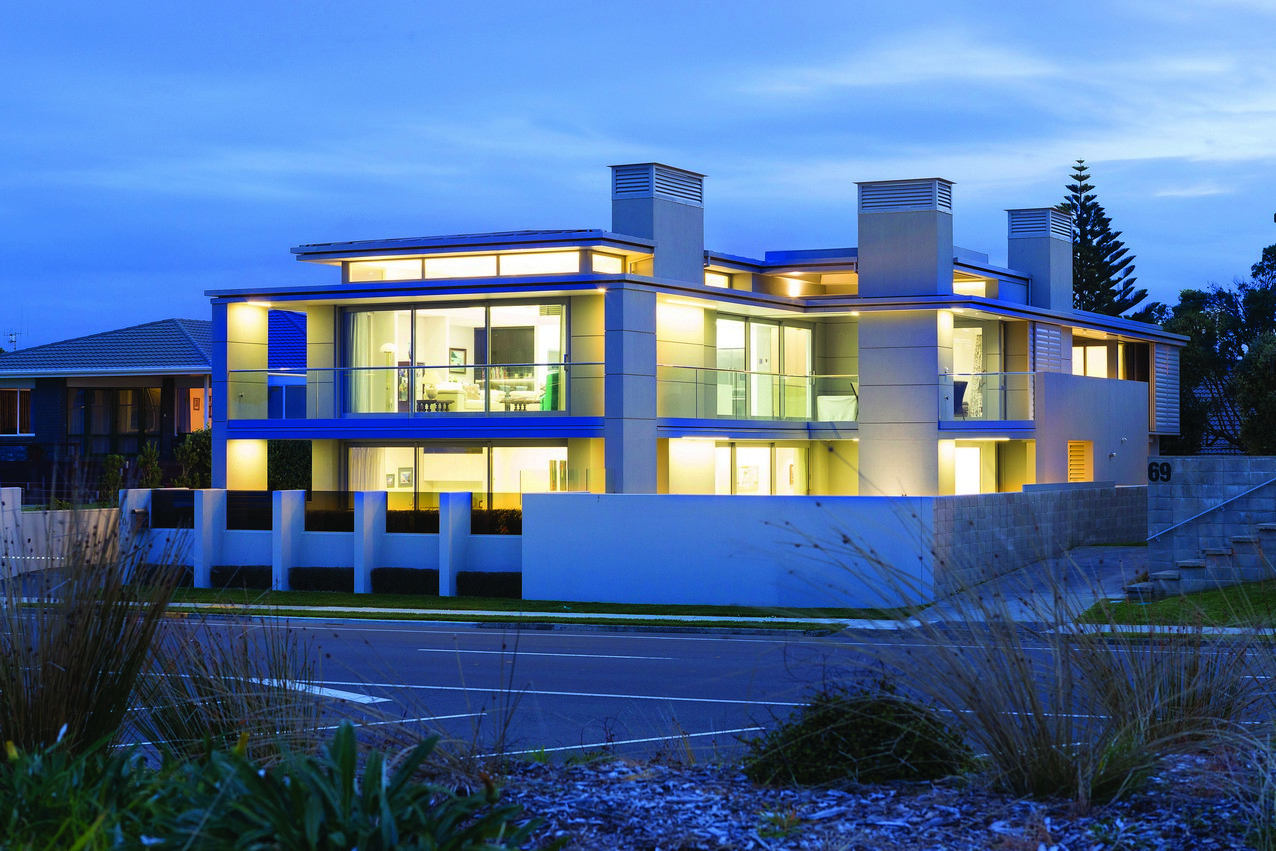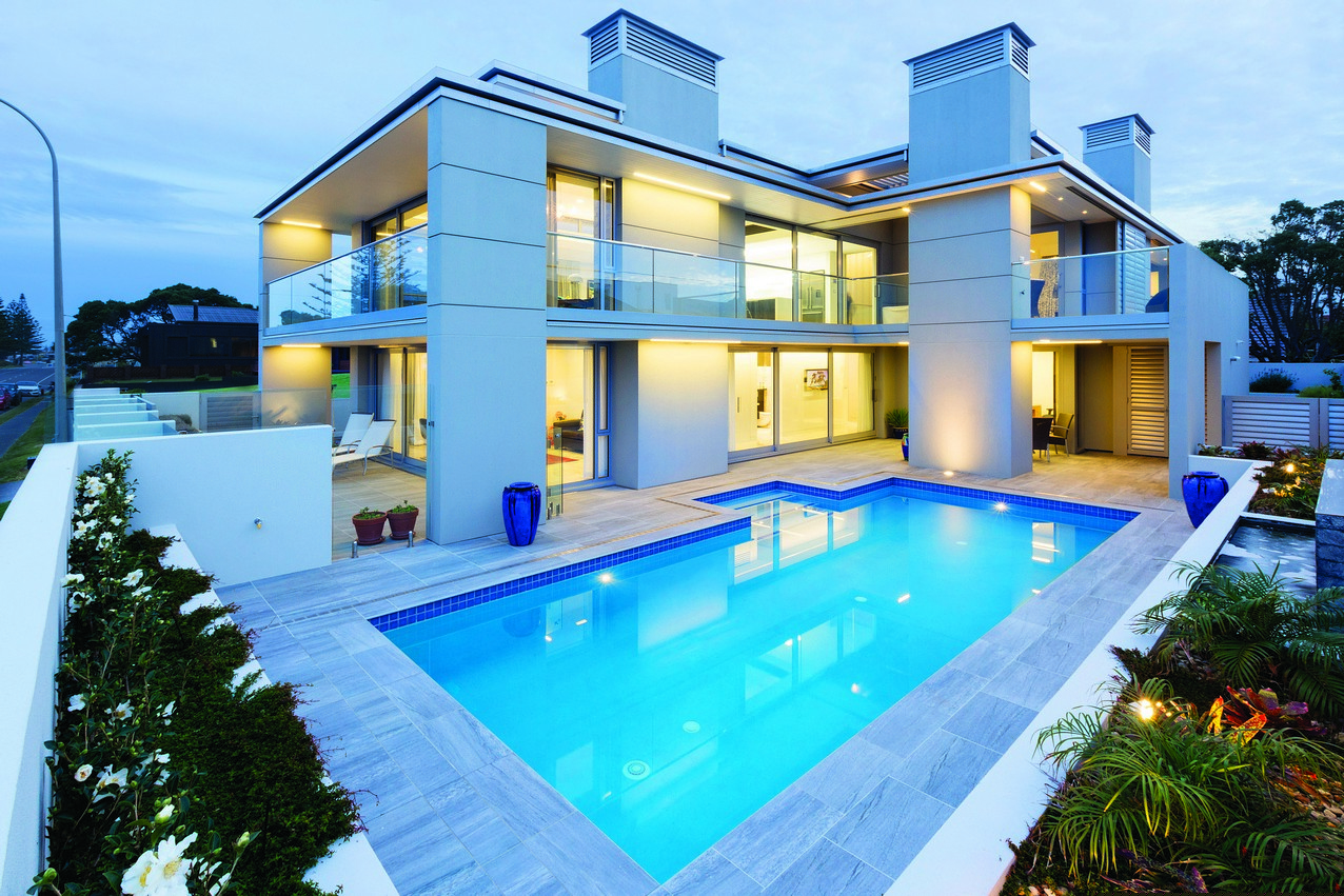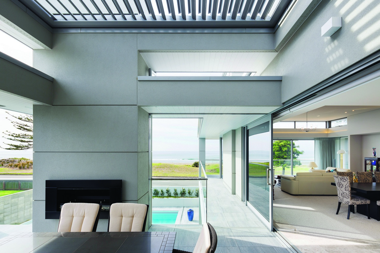 A 3.5m-high cedar door opens to the ultra-chic 419sqm interior of this modern Mt Maunganui marvel. Polished stone tiling in the entrance is a Turkish delight.