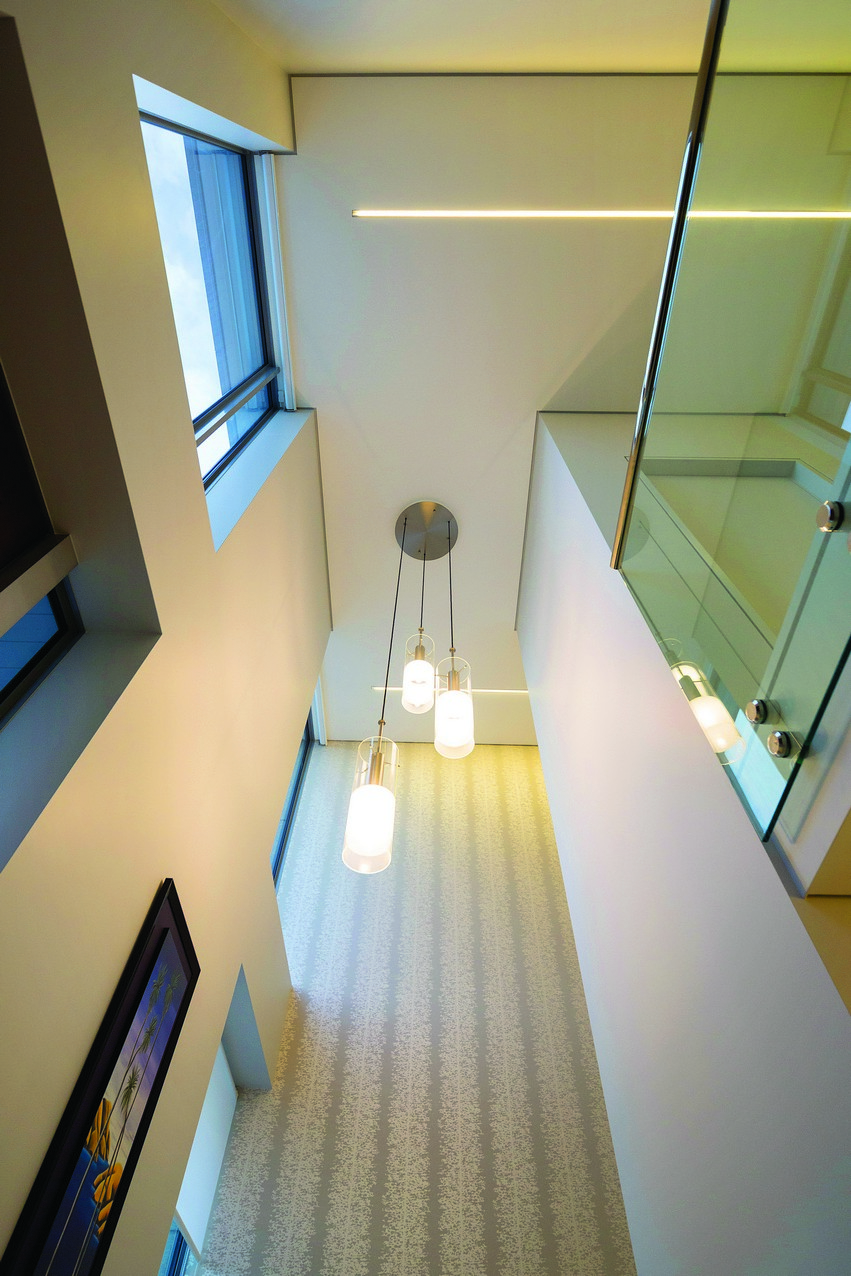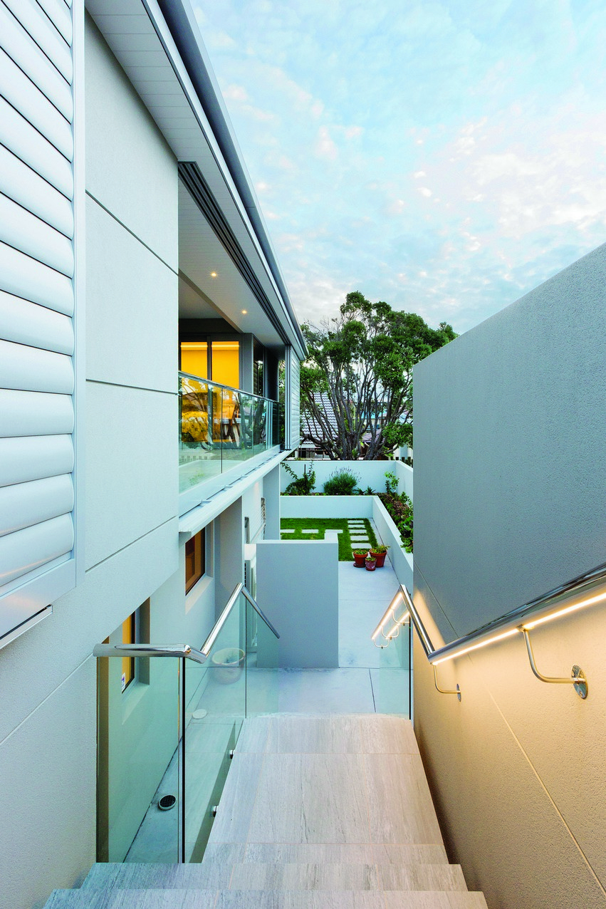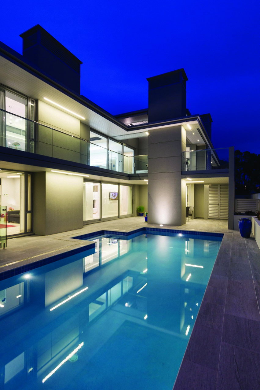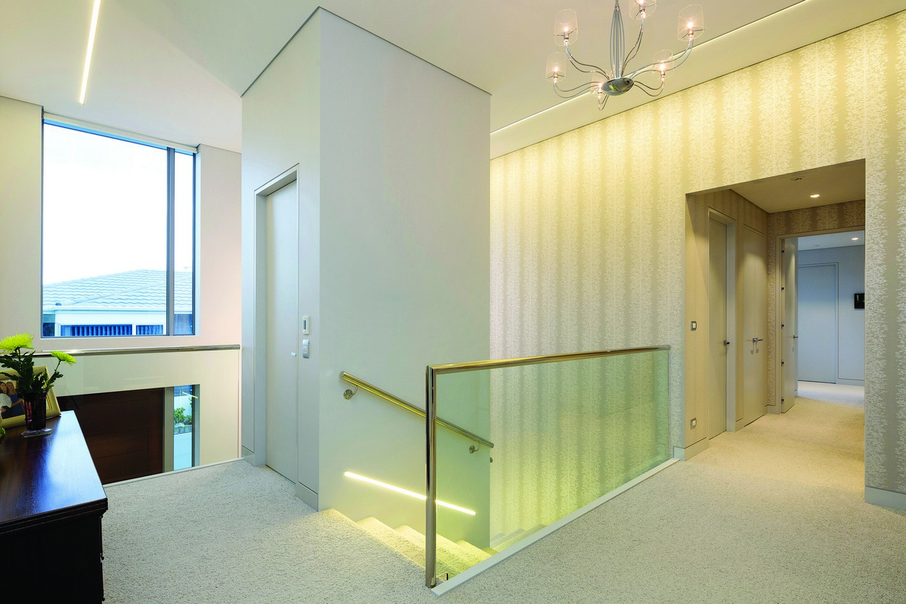 Follow the passageway to find two bedrooms, a study and a family room complete with kitchenette. Large glass sliders open from the hall to an outdoor entertaining area with barbecue, overlooking the stunning swimming pool. The lift or staircase will deliver you to the upper floor and incredible open-plan living space. A state-of-the-art kitchen and a dining-lounge area offer everydayindulgence. Spectacular beach views flood in through extensive glazing. If the residents ever tire of the outlook, there’s a television integrated into the kitchen wall, offering convenient viewing while preparing meals or snacks. A light and airy scullery with cavity slider allows items to be kept close at hand but out of view of the living area.