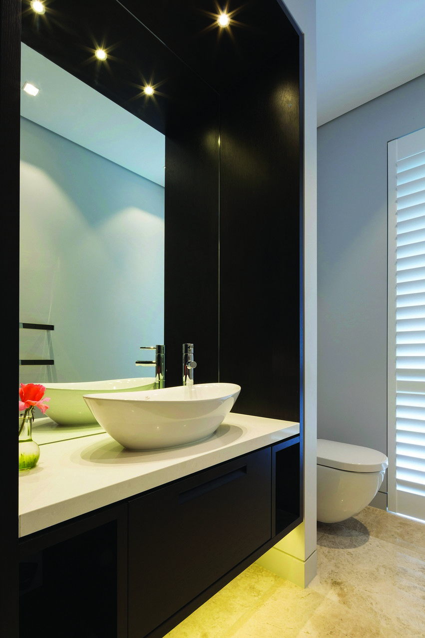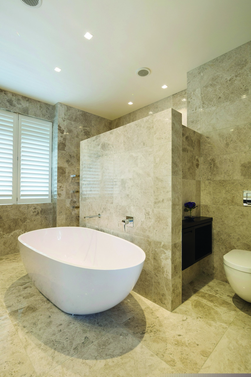 Glass doors take you to another outdoor entertaining area where you can enjoy the views of Mauao and the beach. An outdoor fire is on hand for the cooler days. Back past the landing, the media room beckons with comfy seating for the ultimate movie night. A stylish powder room serves the second study. Stepping into the master bedroom, you’ll be struck by stunning views from the private balcony. The dressing room boasts American oak cabinetry. With twin basins, a fully tiled shower and a freestanding bath, the ensuite is a true retreat. Soft colours and fabrics blend harmoniously throughout, to create fresh and contemporary pavilion-style living.