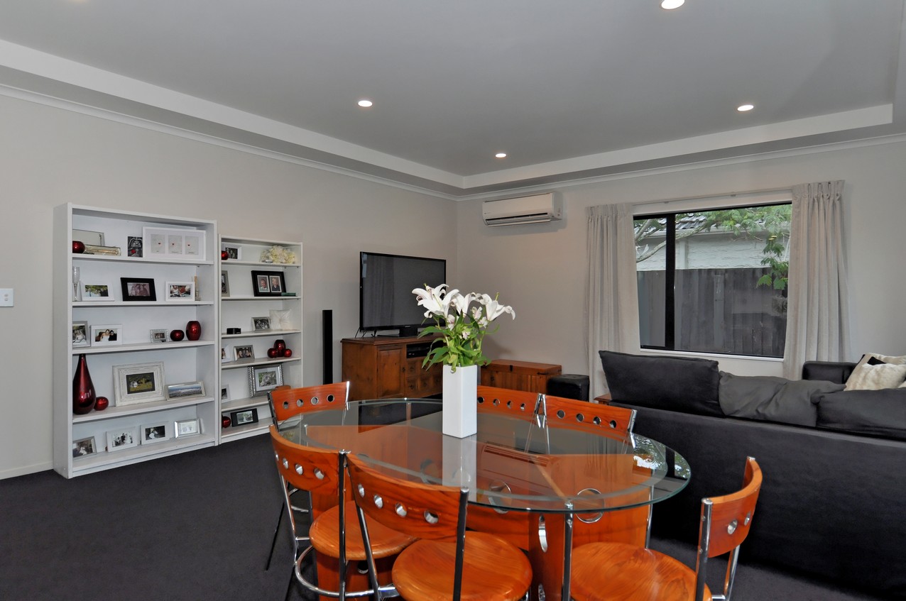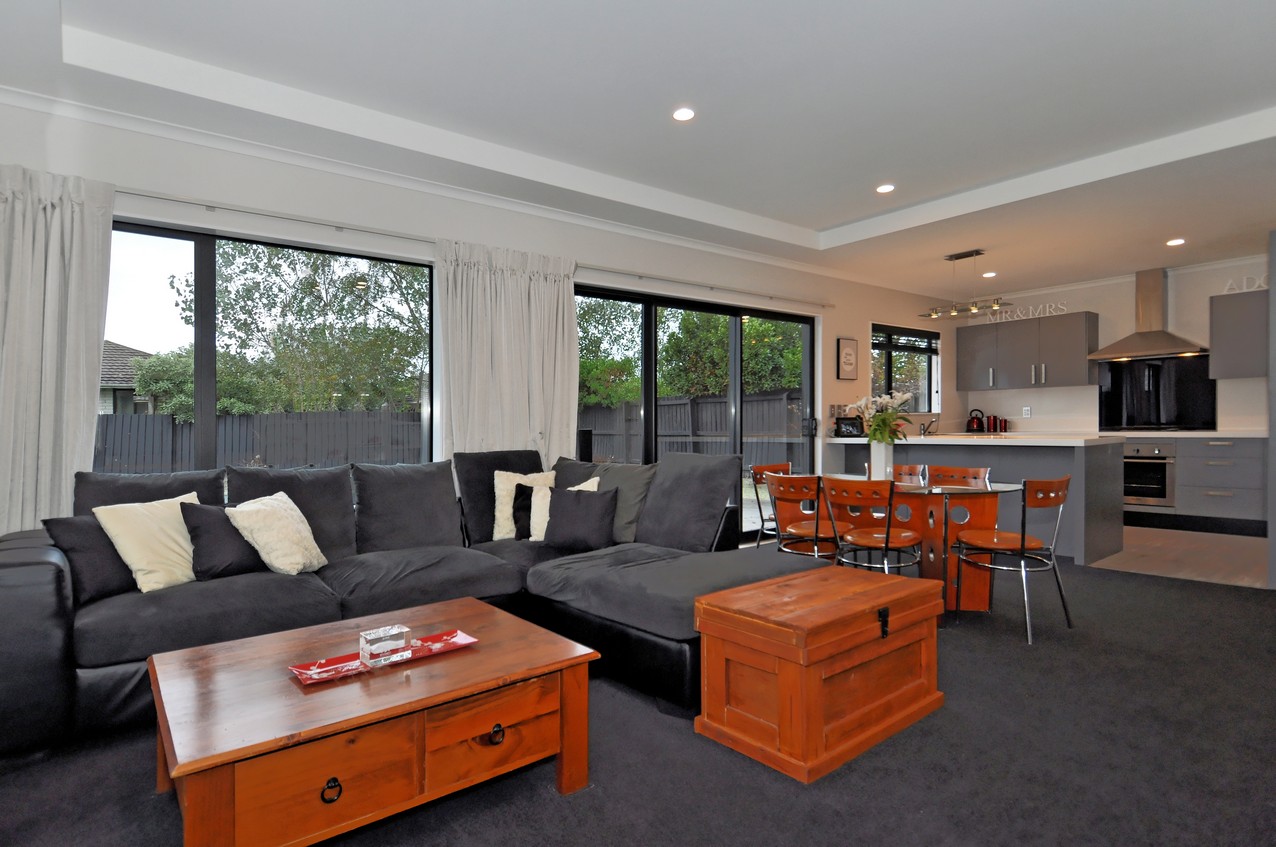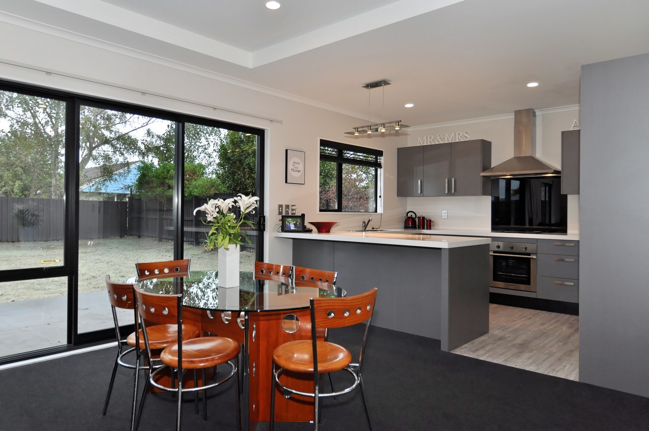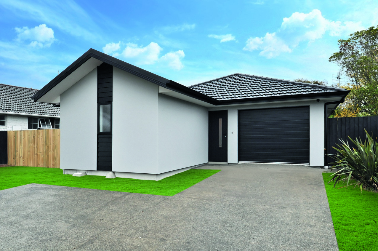 With a 2.5m stud increasing to 2.7m in the living area, this 124sqm dwelling in Parklands, Christchurch, possesses a roomy feel. A combination of light and dark on the exterior increases the overall sense of size.