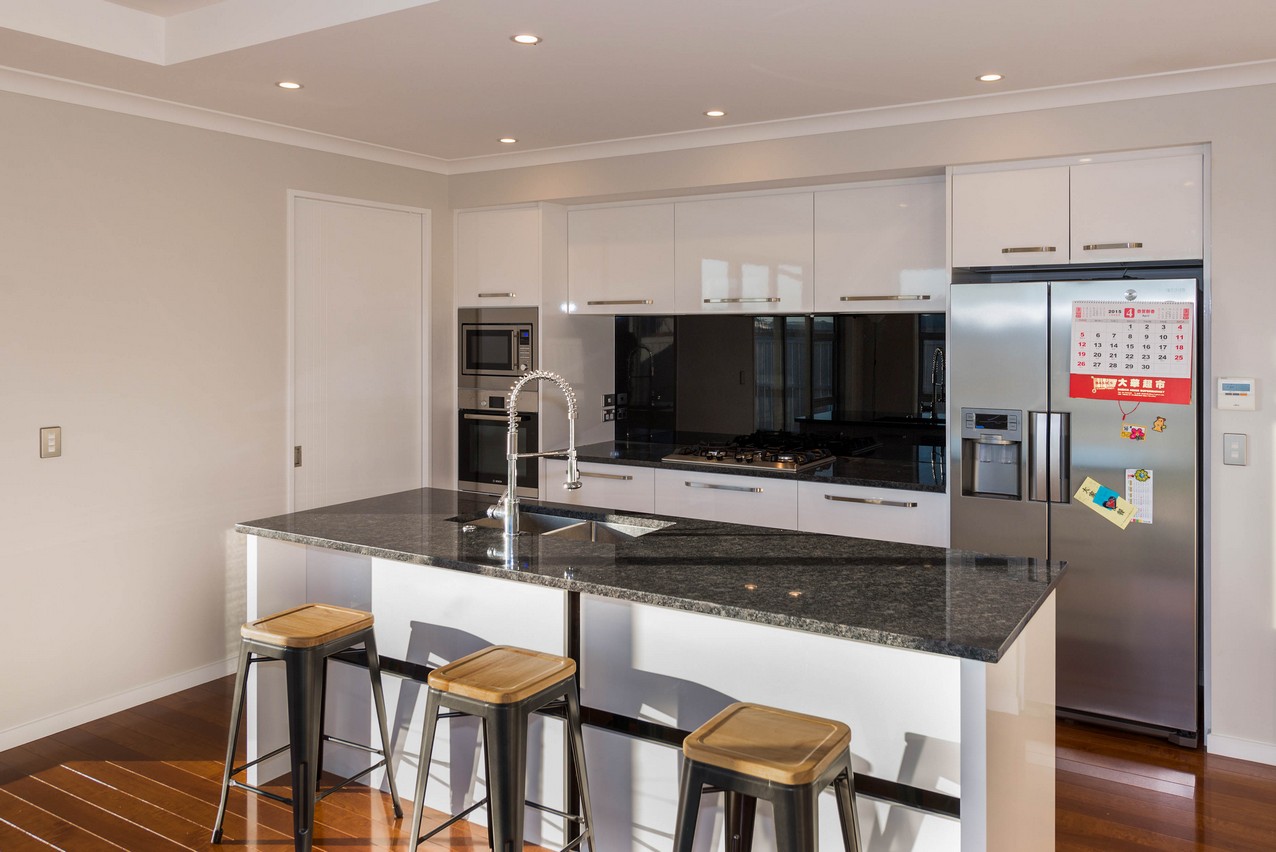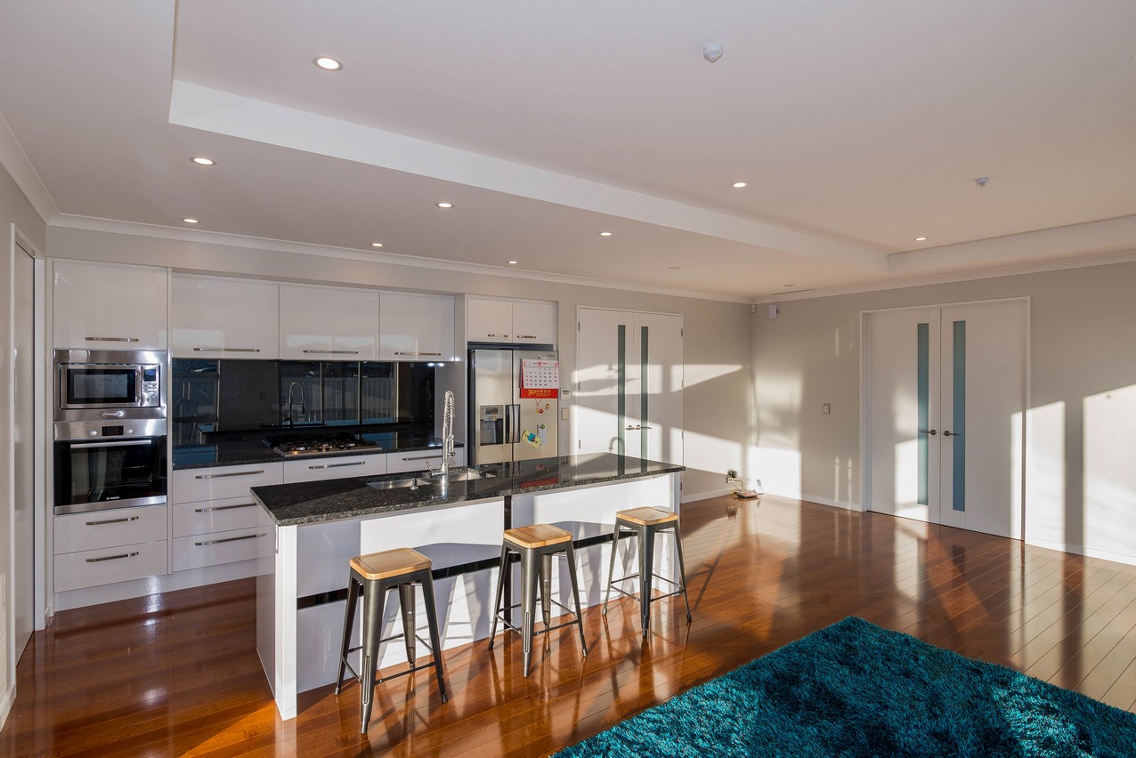 The street-facing formal lounge doubles as a playroom for grandkids. Large windows welcome natural light into the cosy, carpeted hub. Double doors swing back to the bright and spacious open-plan area. Extensive glazing and wonderful engineered timber flooring provides good thermal mass. A ducted heat-pump system and insulation work hard behind the scenes. Eggs are always served sunny side up in the north- facing kitchen, which offers a bright, stylish and well-equipped cooking space. The island bench is a lovely gathering point, encouraging young ones to get involved. A scullery with cooking facilities provides back up for large family gatherings. The French-door fridge feeds the masses. Alfresco living, sheltered on three sides, is just around the corner. Three beautifully tiled bathrooms, including ensuites in the master and guest rooms, allow everyone their own peace and privacy.