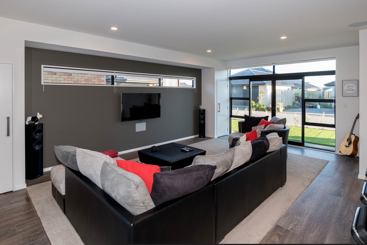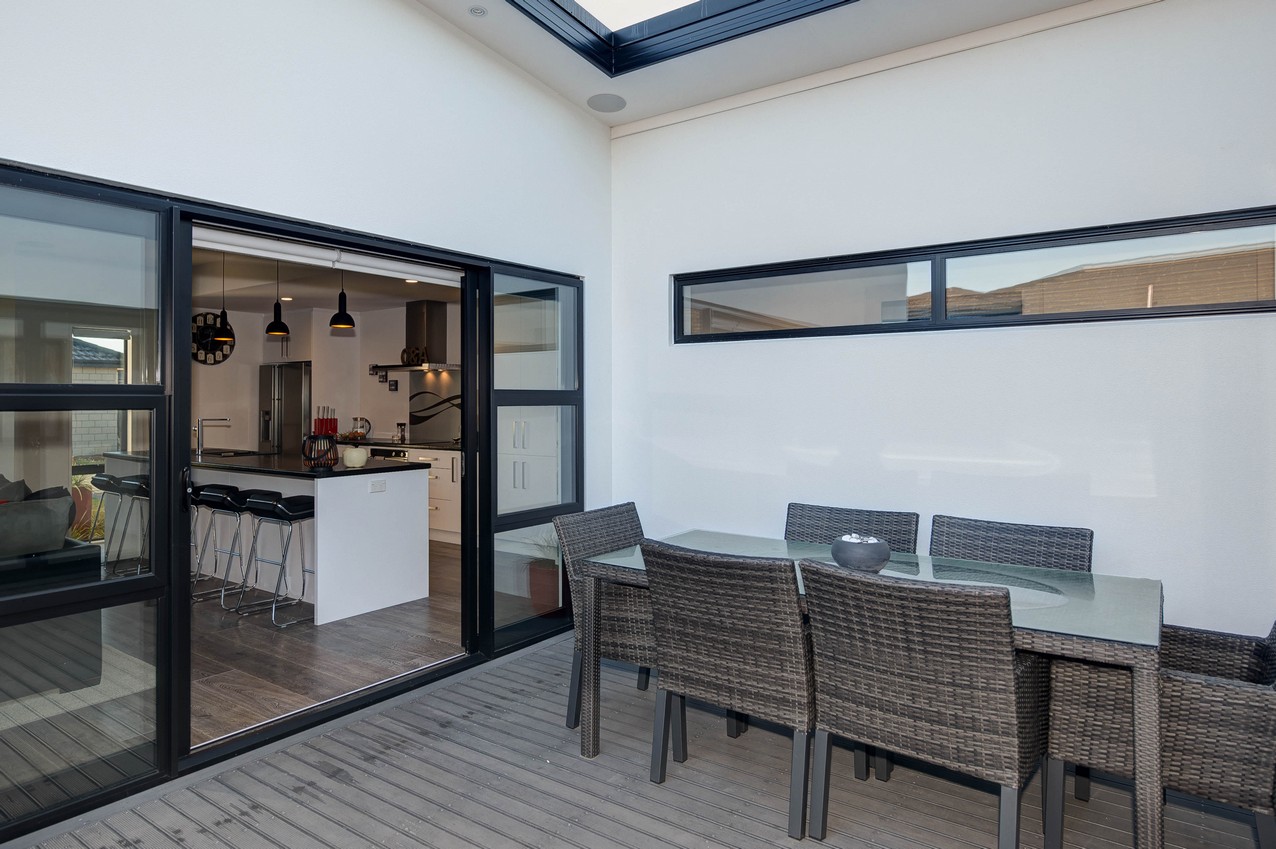 Touch down in Pegasus Town and discover this three-bedroom gem. The monopitch Colorsteel roofline incorporates a tandem garage and presents a modern trapezoidal profile to the street.