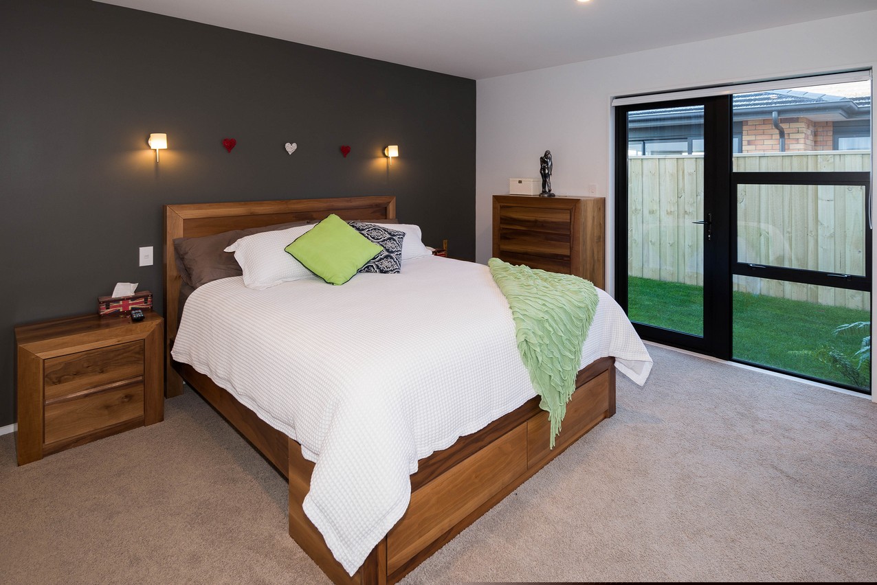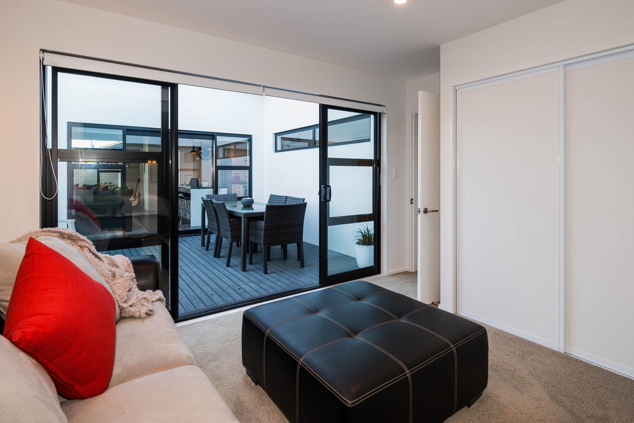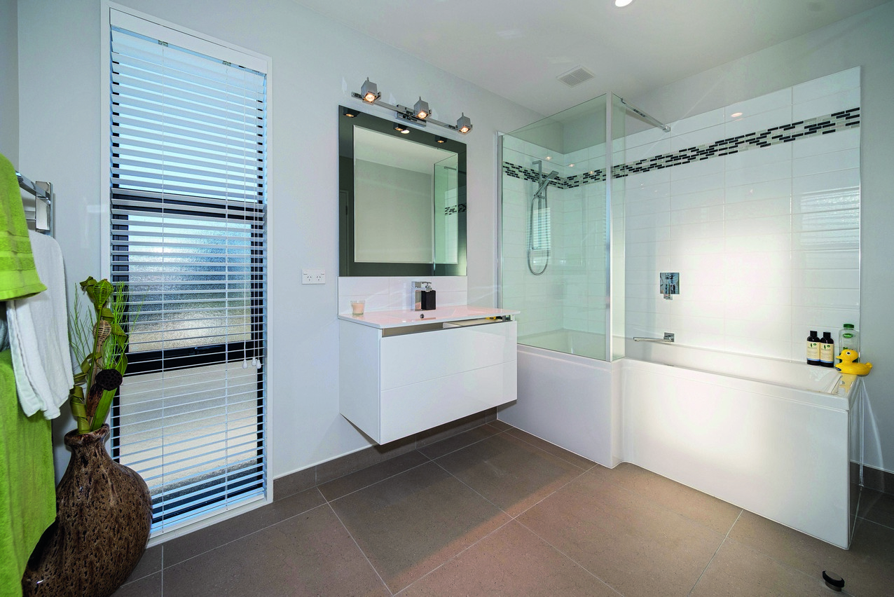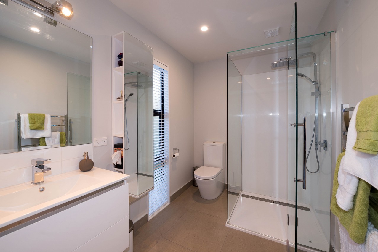 Continue across the deck to the superbly designed master suite. Its adjoining lounge with built-in wardrobe is practical and relaxing, allowing the residents their own space when required. Buried a little further back, the sleeping quarters beckon with their elegant feature wall and ensuite. Plush carpet adds extra luxury underfoot. Discreetly tucked away, the ensuite boasts a glazed shower and modern fixtures, fittings and storage. The main bathroom incorporates a dual tub-shower, partially glazed to avoid any off-spray. A separate laundry allows this necessary chore to be kept out of the way. A crisp, clean colour palette ties the whole home together, and is enhanced by natural light from the well-placed windows. The three bedrooms enjoy separate access to the rear yard.