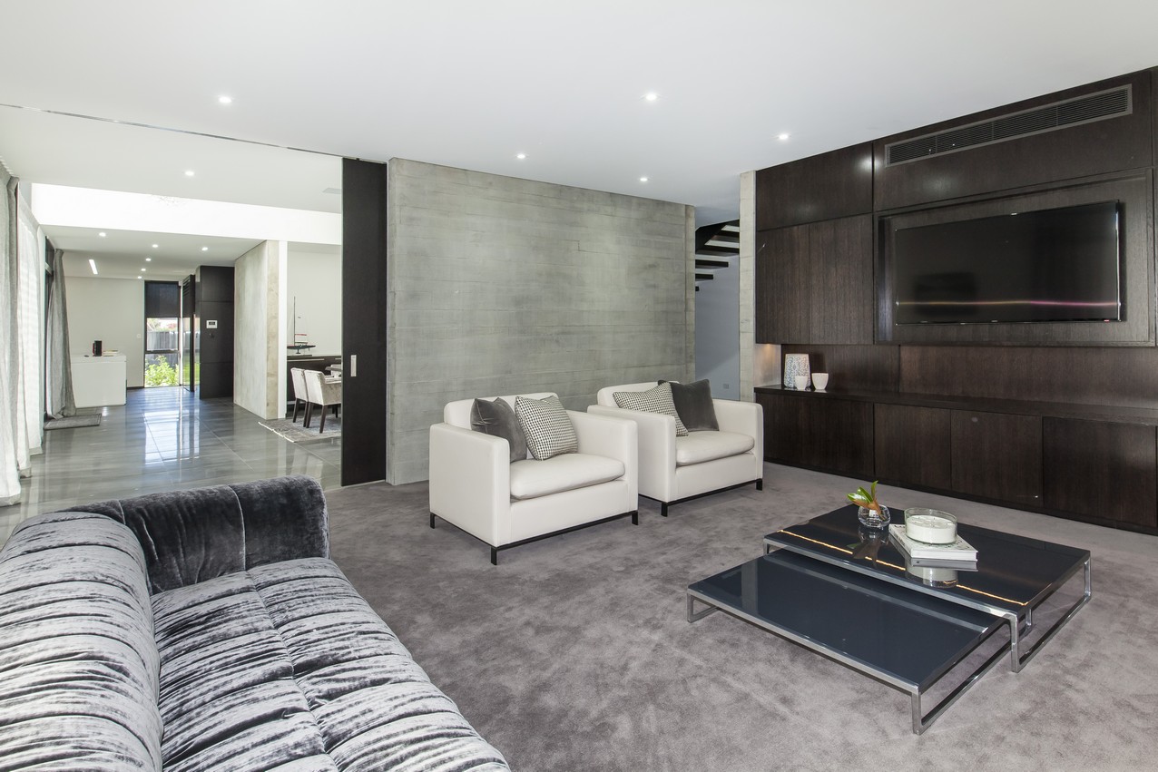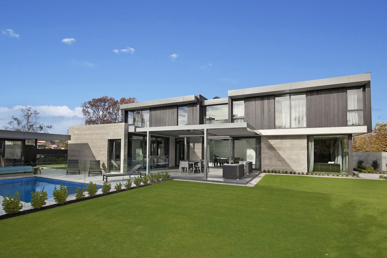 Wander through the carpeted formal lounge with cavity slider to the dining area. Cathedral ceilings bless the room with an incredible sense of space. American oak adds elegance throughout, tying in to the wood- themed cladding. A wine cellar adds another touch of luxury, while the study takes care of business. Upstairs, a walkway with glass balustrades gazes over diners and leads to three beautifully finished bedrooms, complete with ensuites. Overnight visitors – there are sure to be a few – can make themselves at home in the downstairs guest suite. An open-tread staircase links the two levels in style. Inside flows out from the north-facing living and dining spaces to a patio by the pool. A self-contained pool house provides a retreat for teenagers. The sauna and gym are great spaces to let off steam.