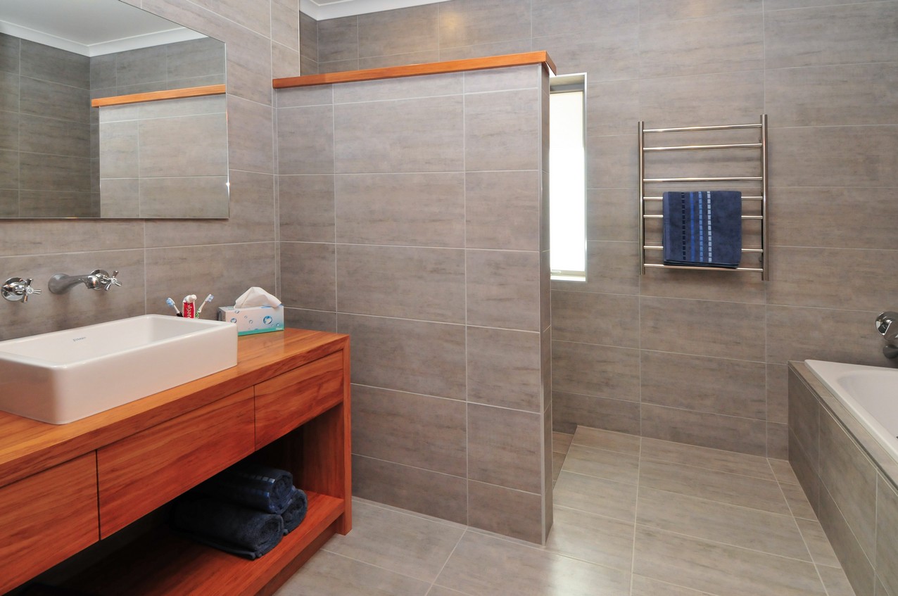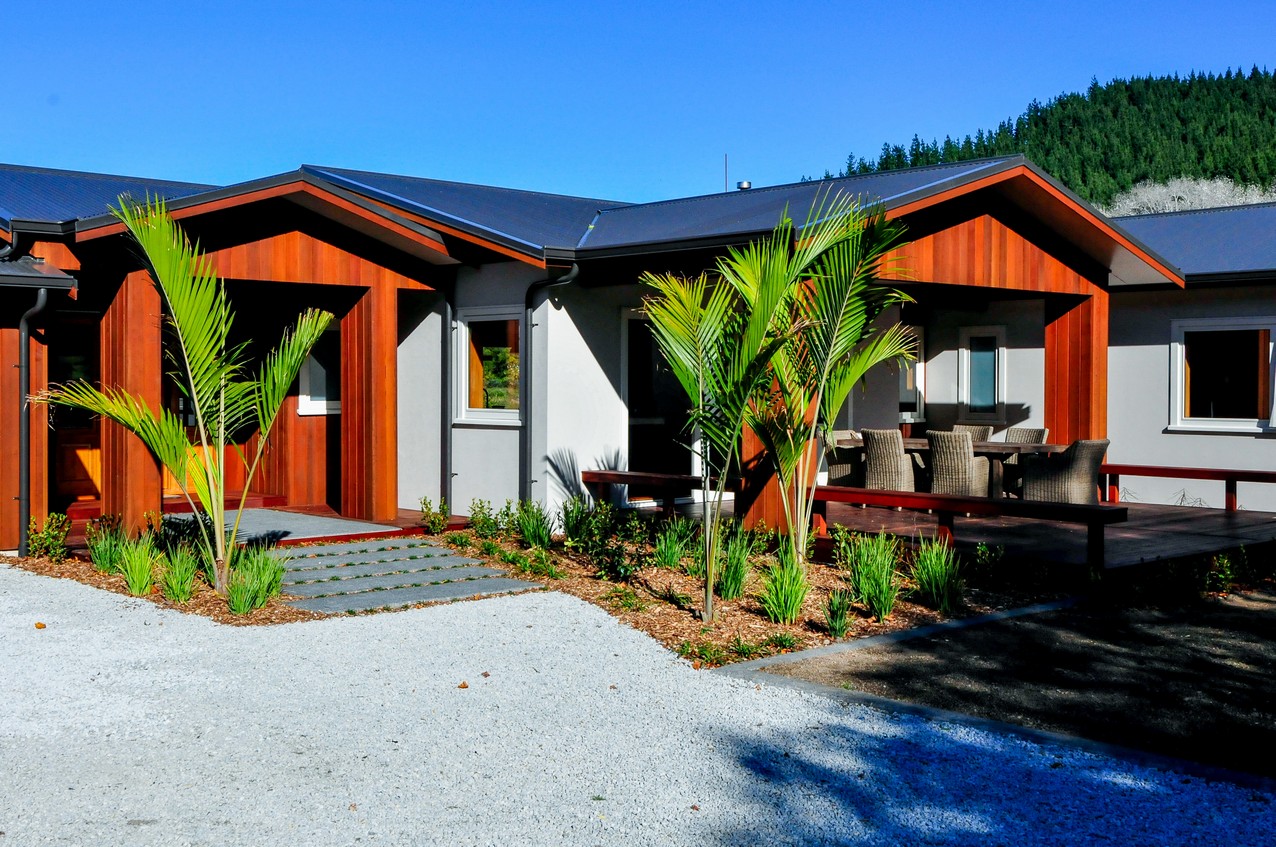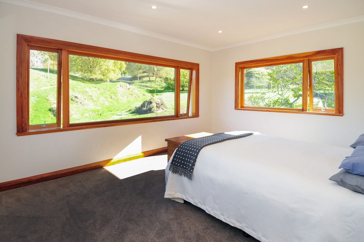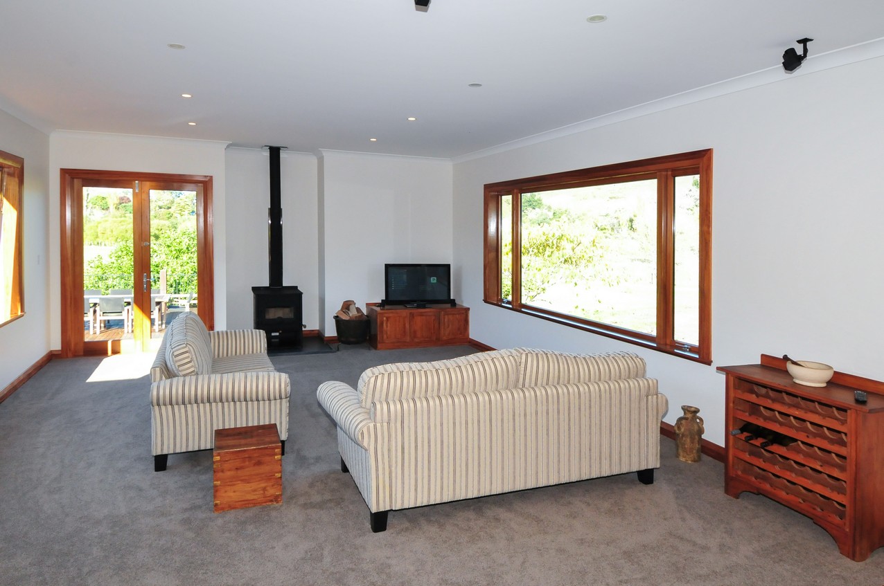 Tying in beautifully to the outdoor decking, the interior’s kwila floor sets off the eye-catching joinery. All the trims and doors are cedar or rimu throughout. Step down from the kitchen to the spacious central living area. The impressive 3m-high stud enhances the sense of space and light. The separate dining area provides a more formal setting for dinner parties or special occasions. Warmth emanates from a large granite hearth flanked by feature wood cupboards. A second fireplace can be found in the family room. Cedar sliding doors allow the formal dining room to be opened up on balmy evenings; the adjoining deck also serves the master bedroom. Orientation of the main deck, meanwhile, has put the existing pool at the heart of everyday life. The new entertainer’s kitchen is a dream space for anyone passionate about making great food. The polished concrete slab benchtop provides a sleek and hard-wearing work surface. A scullery allows extra appliances to be kept out of sight. Positioned close to the family dining room, the spacious central island also serves the covered alfresco area. It’s a lovely place to relax and soak up the relaxed surroundings. The sliding doors foster flow outdoors. Two of the three bathrooms boast floor-to-ceiling tiles, rimu vanities and underfloor heating. The third bathroom – once a detached garage – incorporates a workstation and laundry; it serves swimmers, and grubby youngsters returning from rugby training.