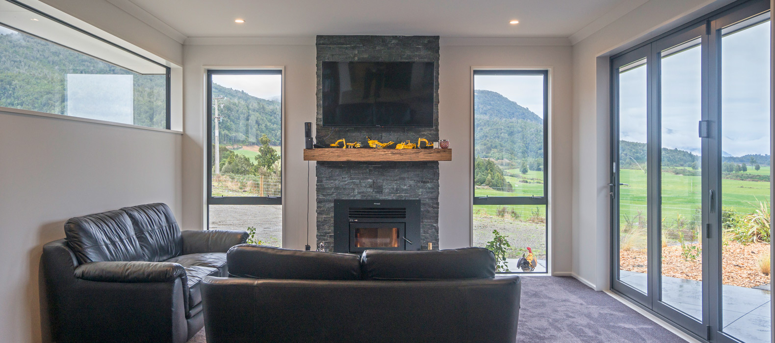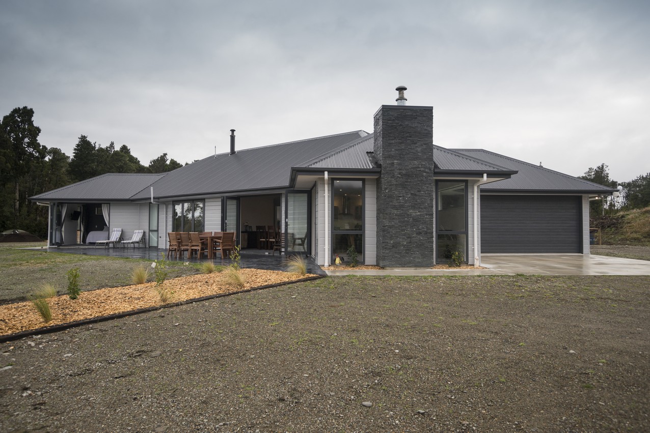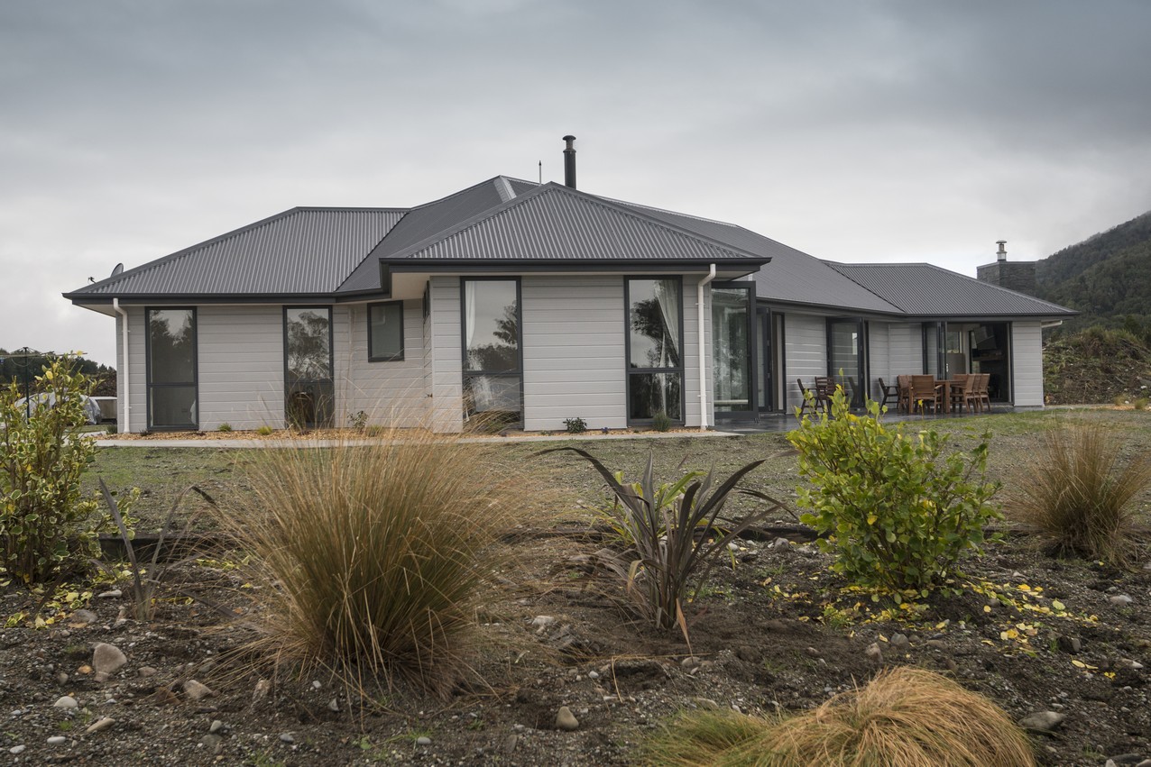 With its elegantly textured exterior, combining schist and aluminium, this contemporary home puts the grey in Greymouth and the open in open-plan.