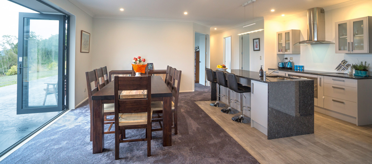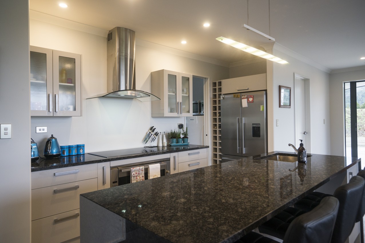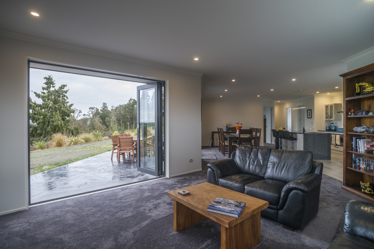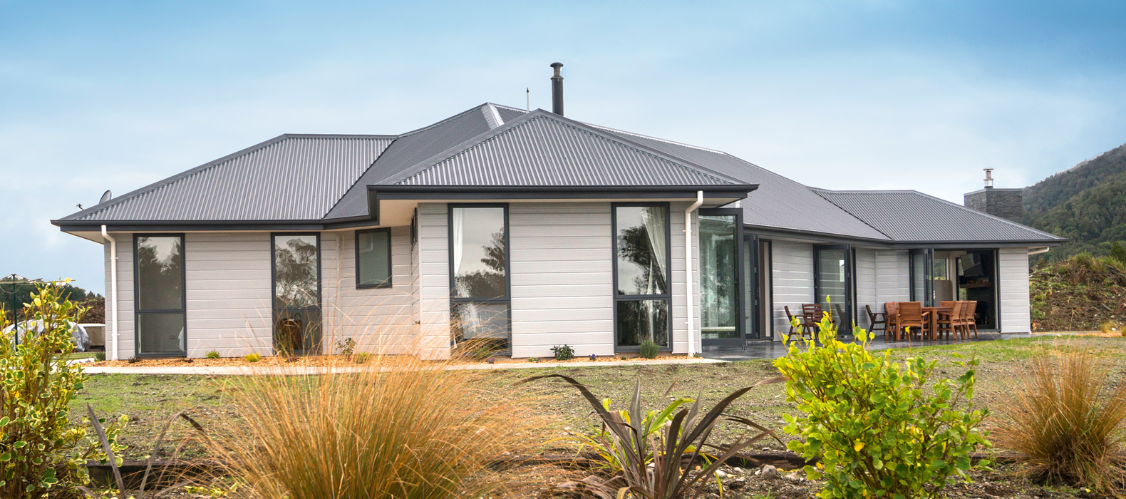 With its elegantly textured exterior, combining schist and aluminium, this contemporary home puts the grey in Greymouth and the open in open-plan.