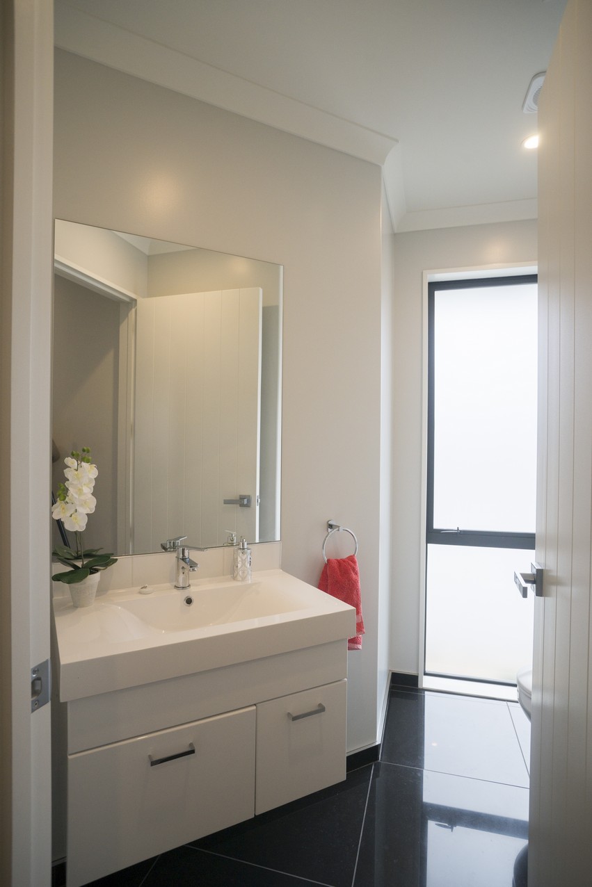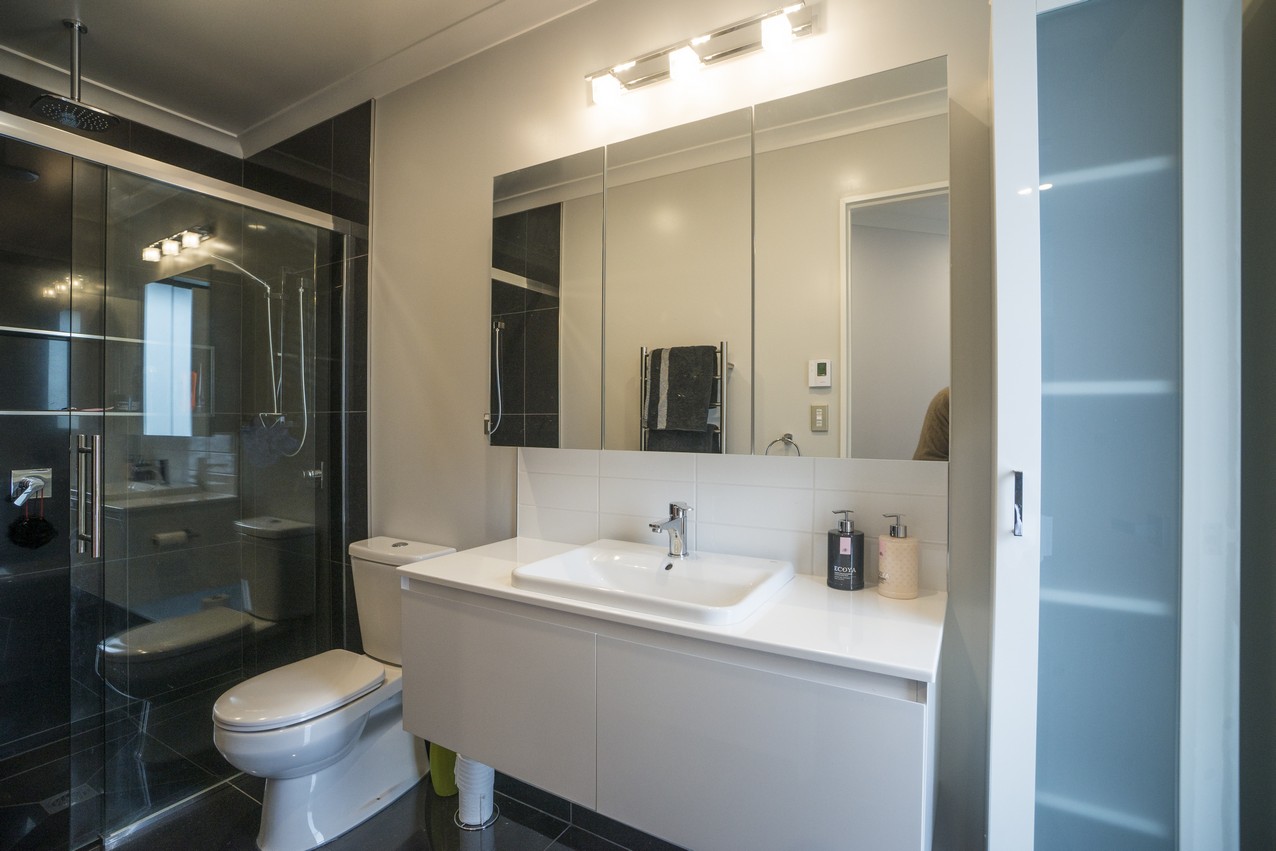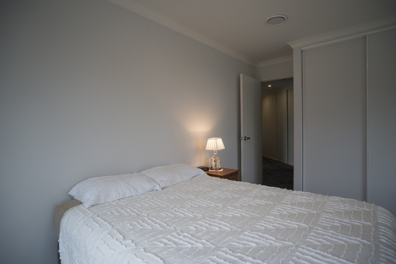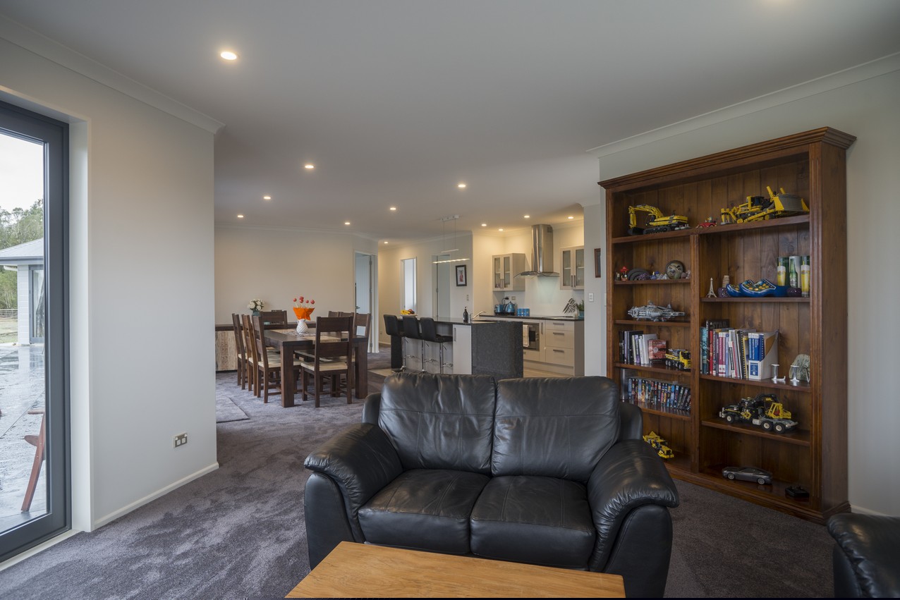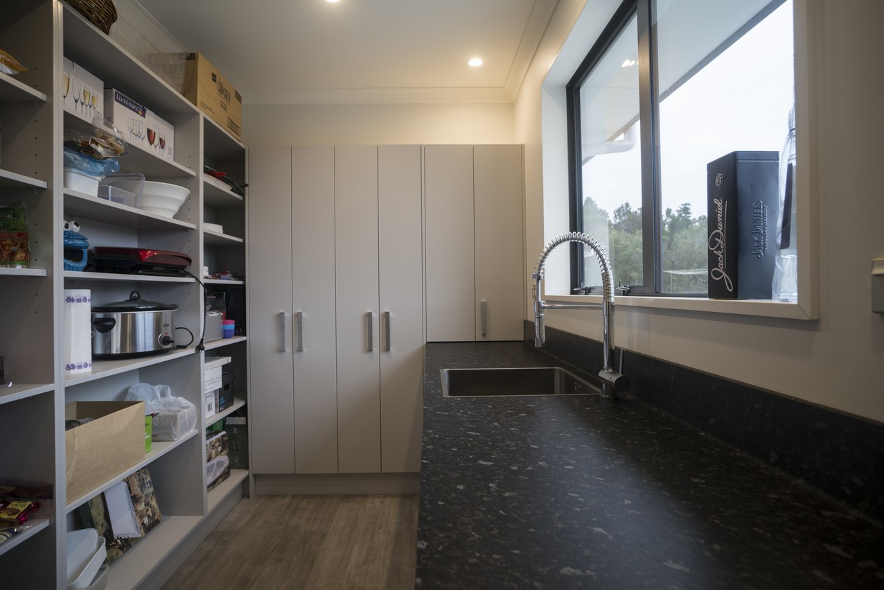 A smart design eliminates the need for hallways, instead utilising a set of 135-degree wings to arrange interior spaces and shelter alfresco living. Lovely French doors connect the open-plan area to the patio, which stretches the length of the home. The other two living areas and ensuited master bedroom also connect to this space. Bi-fold doors allow uninterrupted views whether they’re open or closed. A spacious kitchen with granite waterfall benchtop connects to the garage, so there will be no dashing through the rain with heavy bags of groceries. A butler’s pantry enjoys natural light and views of the bush. The schist fireplace, complete with Australian hardwood from the owner’s grandfather’s farm, adds warmth and history to the family room. Four bedrooms – including two of identical size and layout – leave room for any children who might come along.