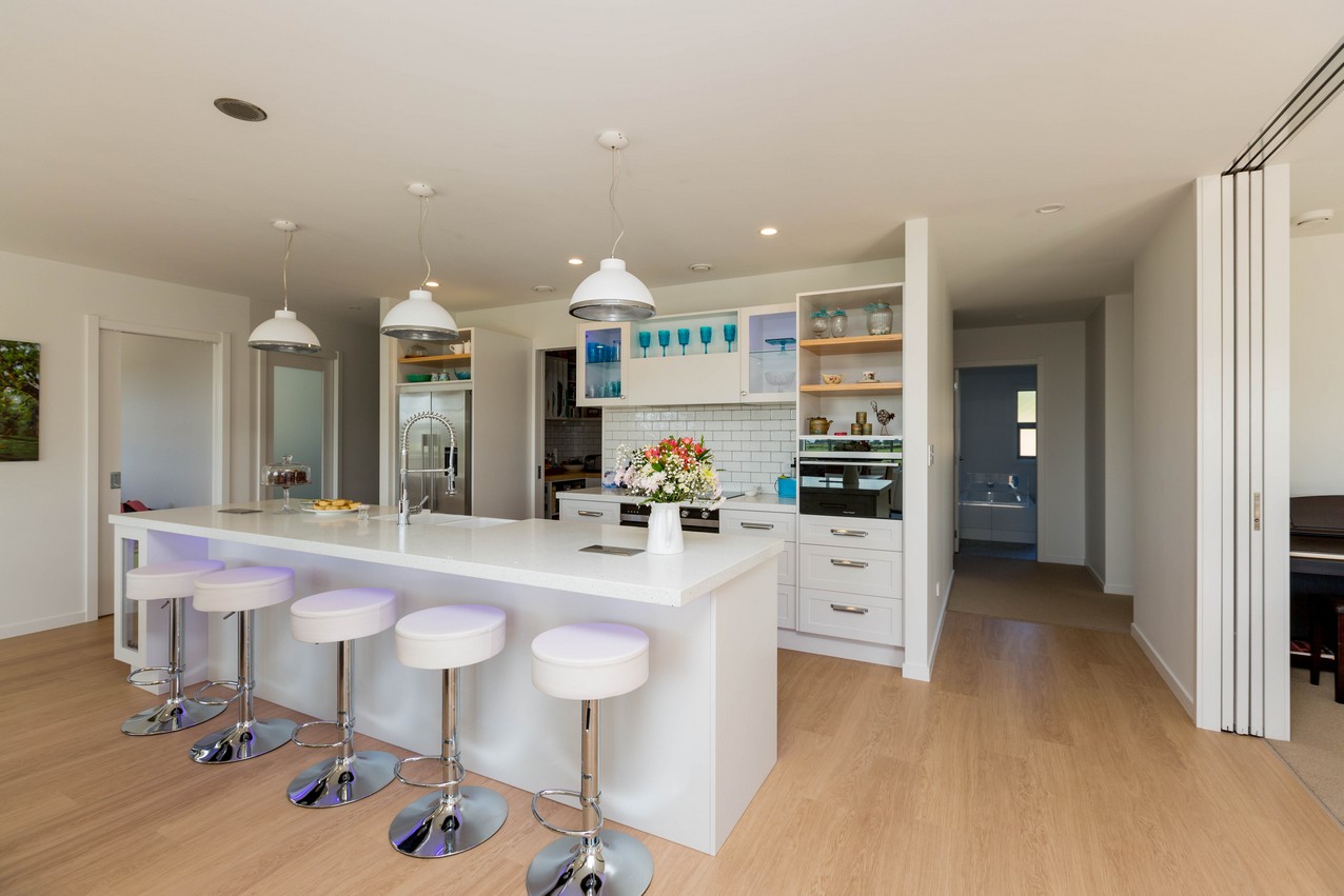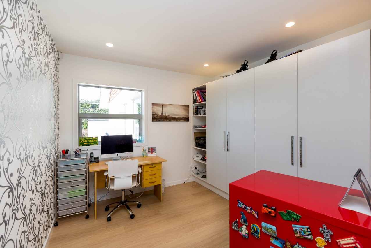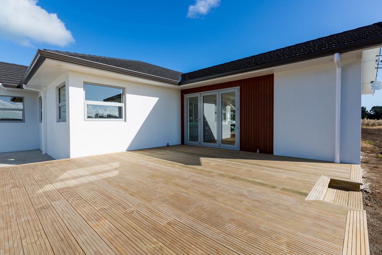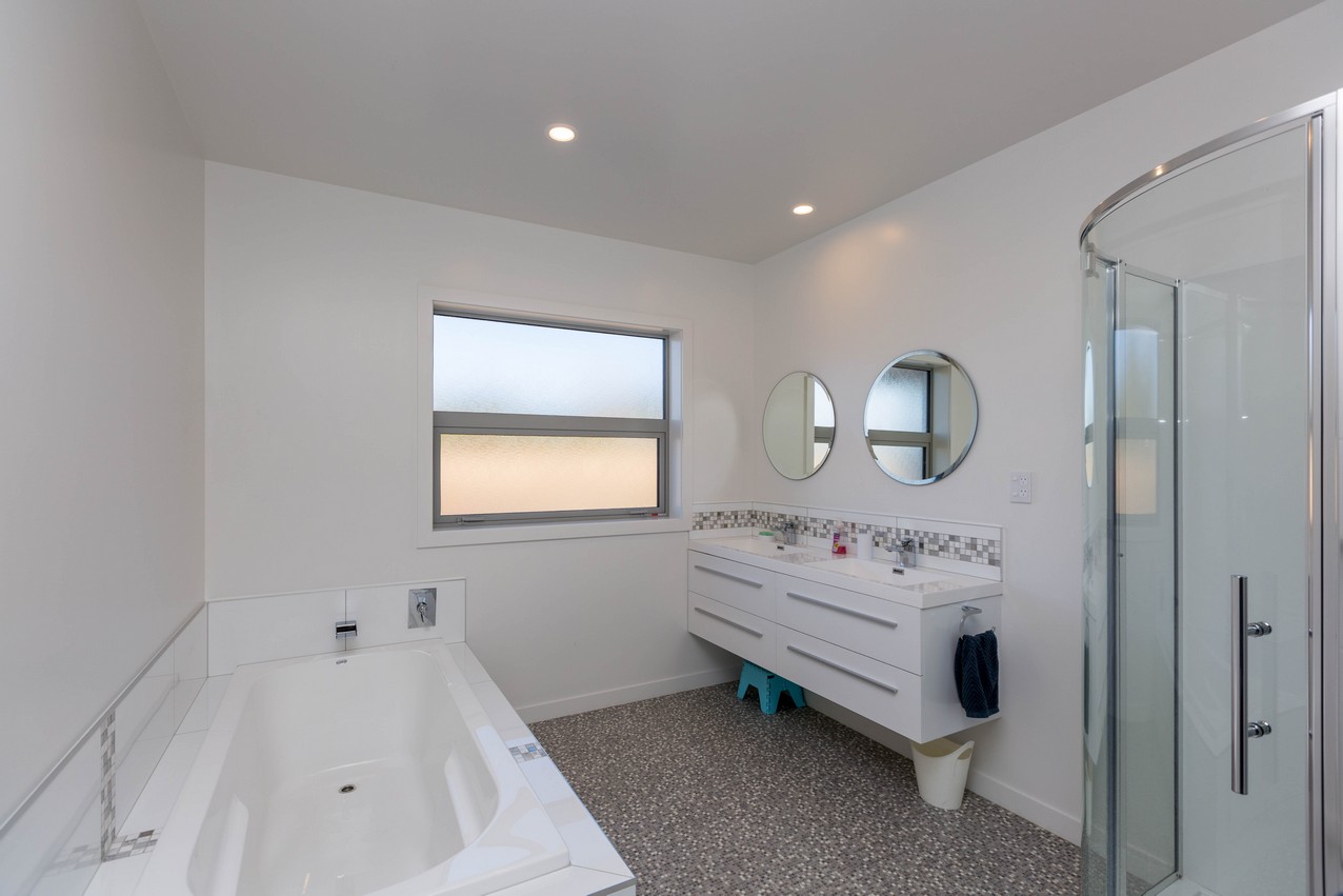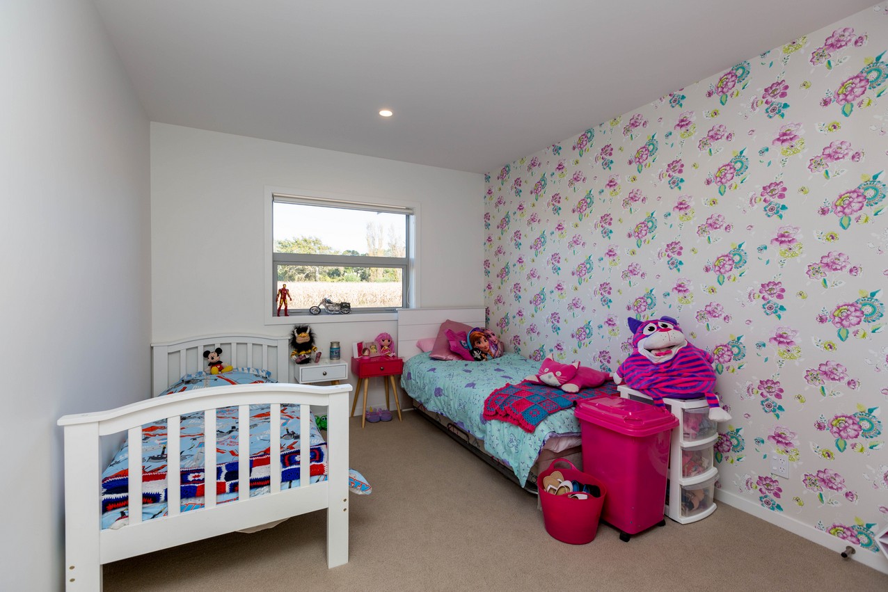The front entry to the home is stunning and unique. A feature rock wall flows from the front door through the entrance into the home. This opens up to a light-filled kitchen/family area, which is the heart of this home and central to work, craft and leisure areas. The fantastic views over farmland to Mount Ruapehu, with cathedral ceiling and feature window, add a serving of ‘X’ factor. Huge sliding doors between the open-plan living space and lounge can create one spacious room. Four interior living rooms provide ample options for the evolving needs of family life. The children’s playroom is designed to convert into a study space down the track. The well-planned office is also located close to the heart of the home. Three sets of bi-fold doors provide great flow to large decks, flexible entertaining and play areas for the family. Modern, clean lines and an understated colour palette provide a blank canvas for the owners’ personal style. Well-chosen feature walls add appeal in the bedrooms. Open the wardrobes to discover different coloured interiors, which add a whole new dimension to each room. The ensuite includes a large double vanity, free- standing stone bathtub and tiled shower. This home is both practical and stylish. It fits the owners’ lifestyle and desire for a sustainable home. It is all about “living the dream”.