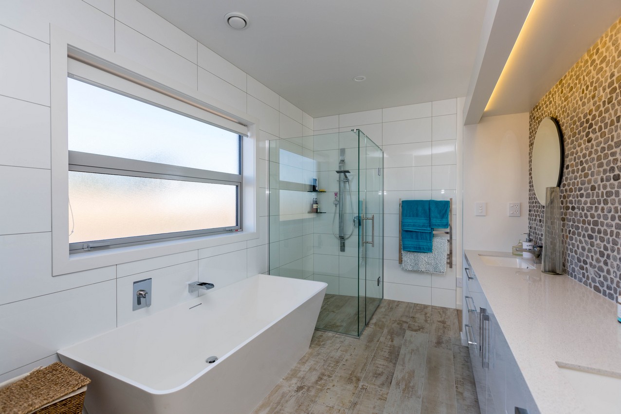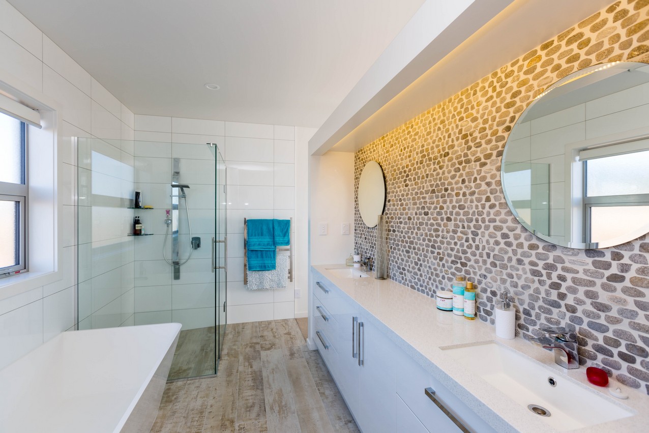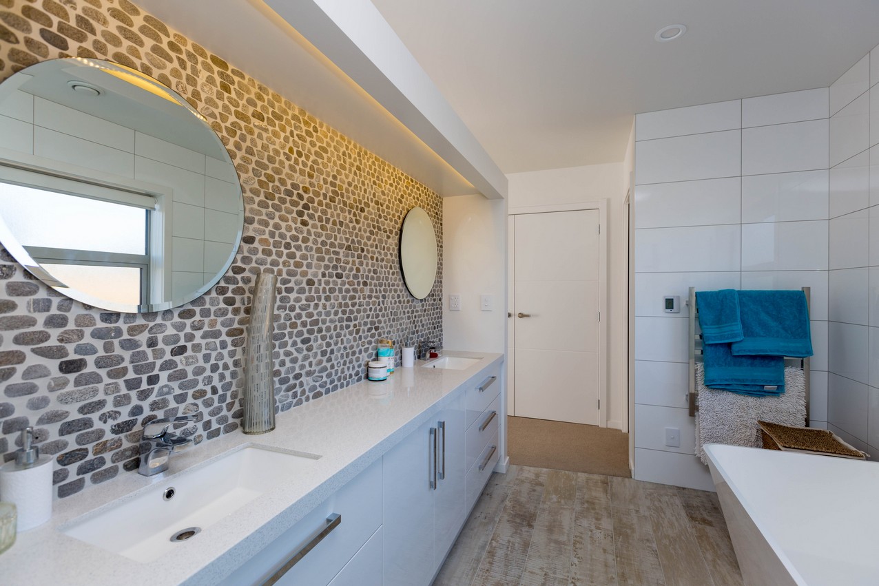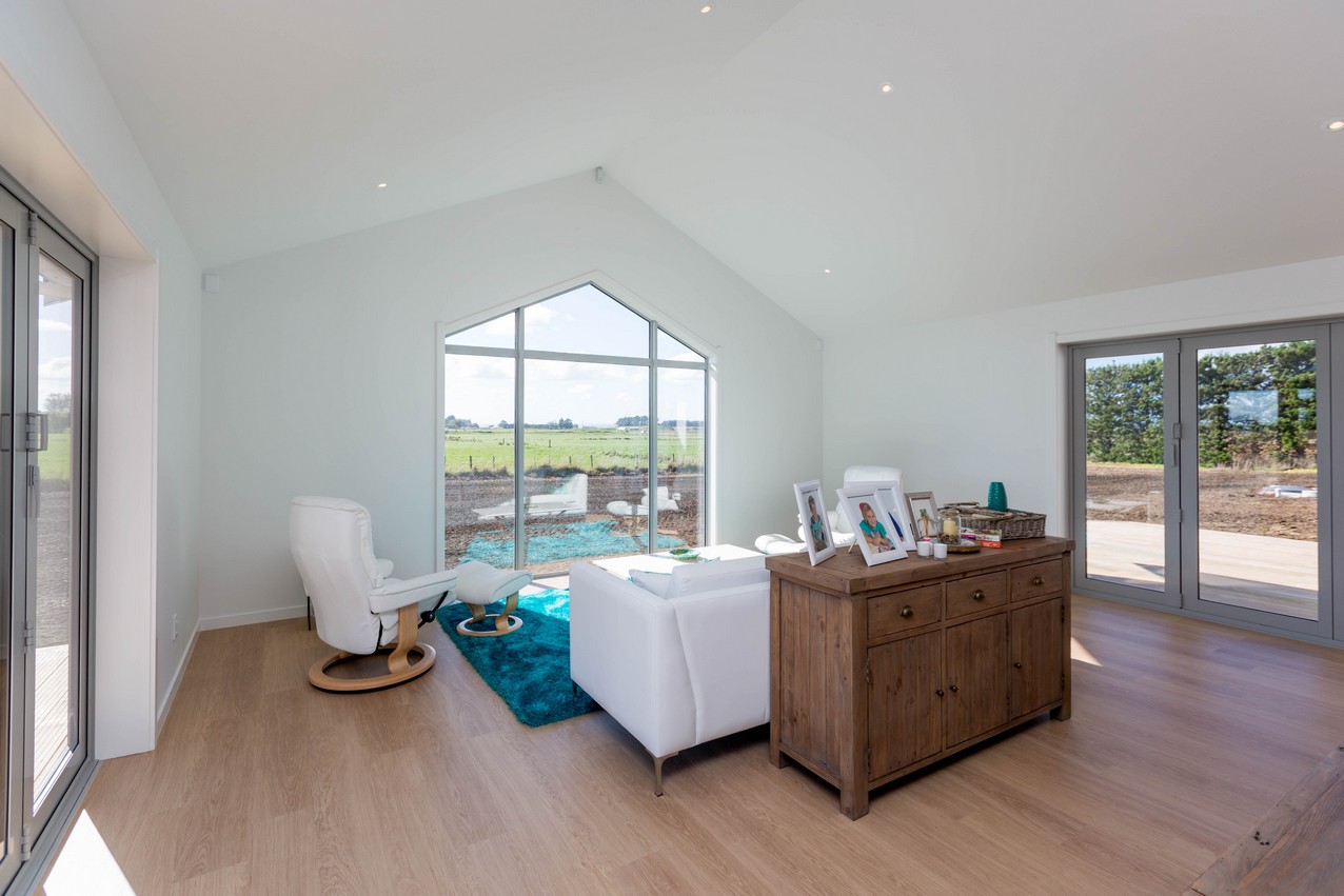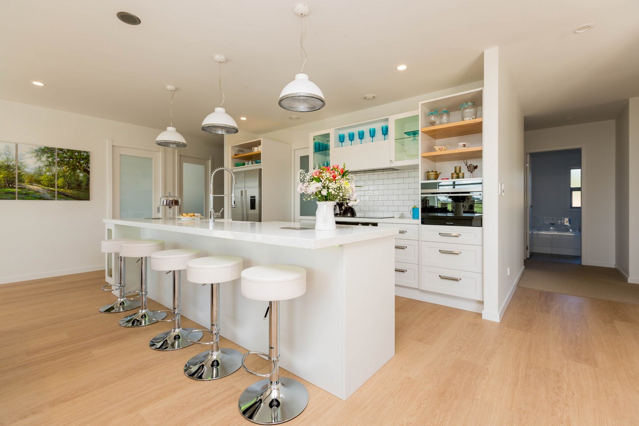The front entry to the home is stunning and unique. A feature rock wall flows from the front door through the entrance into the home. This opens up to a light-filled kitchen/family area, which is the heart of this home and central to work, craft and leisure areas. The fantastic views over farmland to Mount Ruapehu, with cathedral ceiling and feature window, add a serving of ‘X’ factor. Huge sliding doors between the open-plan living space and lounge can create one spacious room. Four interior living rooms provide ample options for the evolving needs of family life. The children’s playroom is designed to convert into a study space down the track. The well-planned office is also located close to the heart of the home. Three sets of bi-fold doors provide great flow to large decks, flexible entertaining and play areas for the family. Modern, clean lines and an understated colour palette provide a blank canvas for the owners’ personal style. Well-chosen feature walls add appeal in the bedrooms. Open the wardrobes to discover different coloured interiors, which add a whole new dimension to each room. The ensuite includes a large double vanity, free- standing stone bathtub and tiled shower. This home is both practical and stylish. It fits the owners’ lifestyle and desire for a sustainable home. It is all about “living the dream”.
