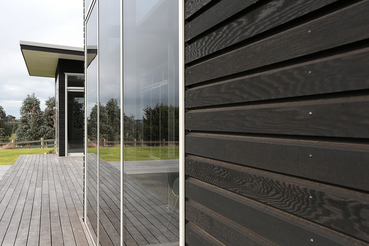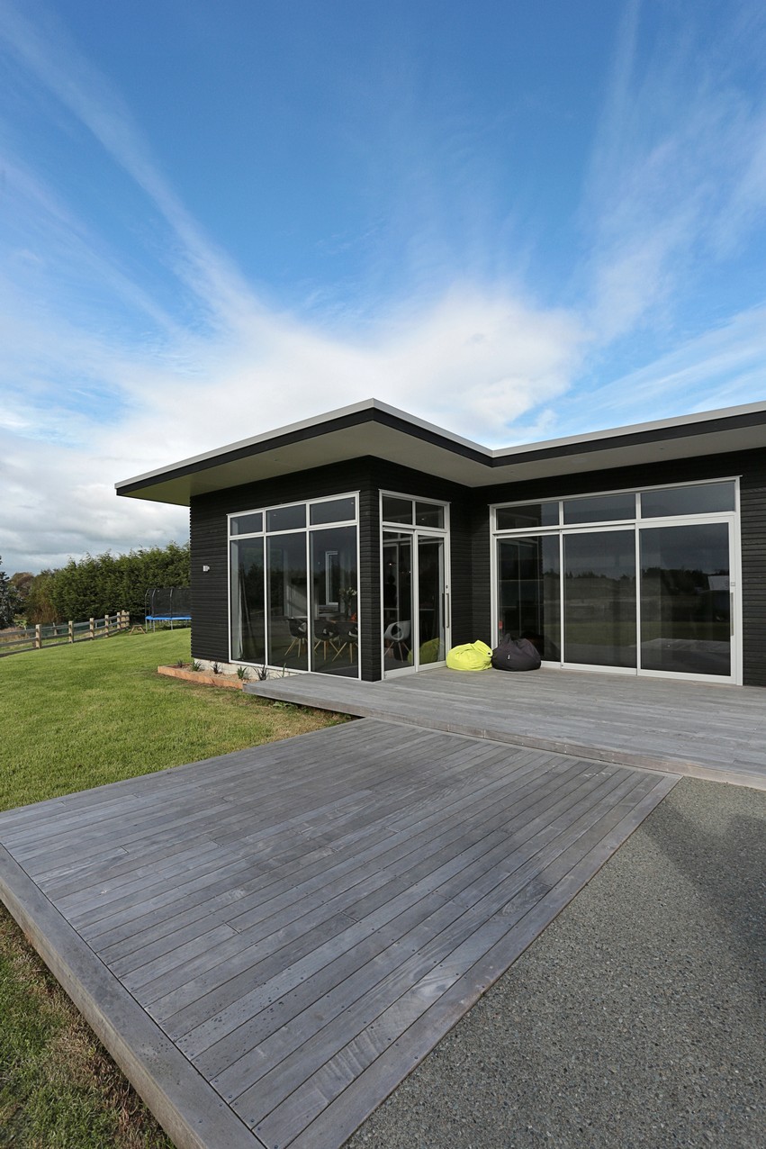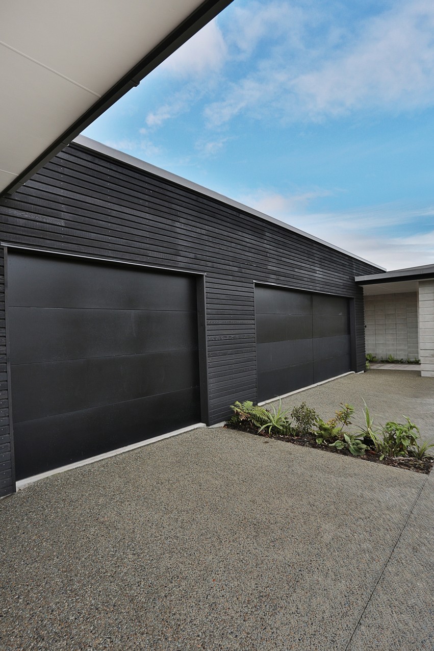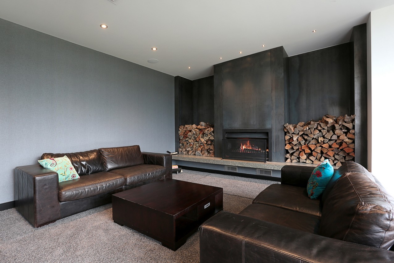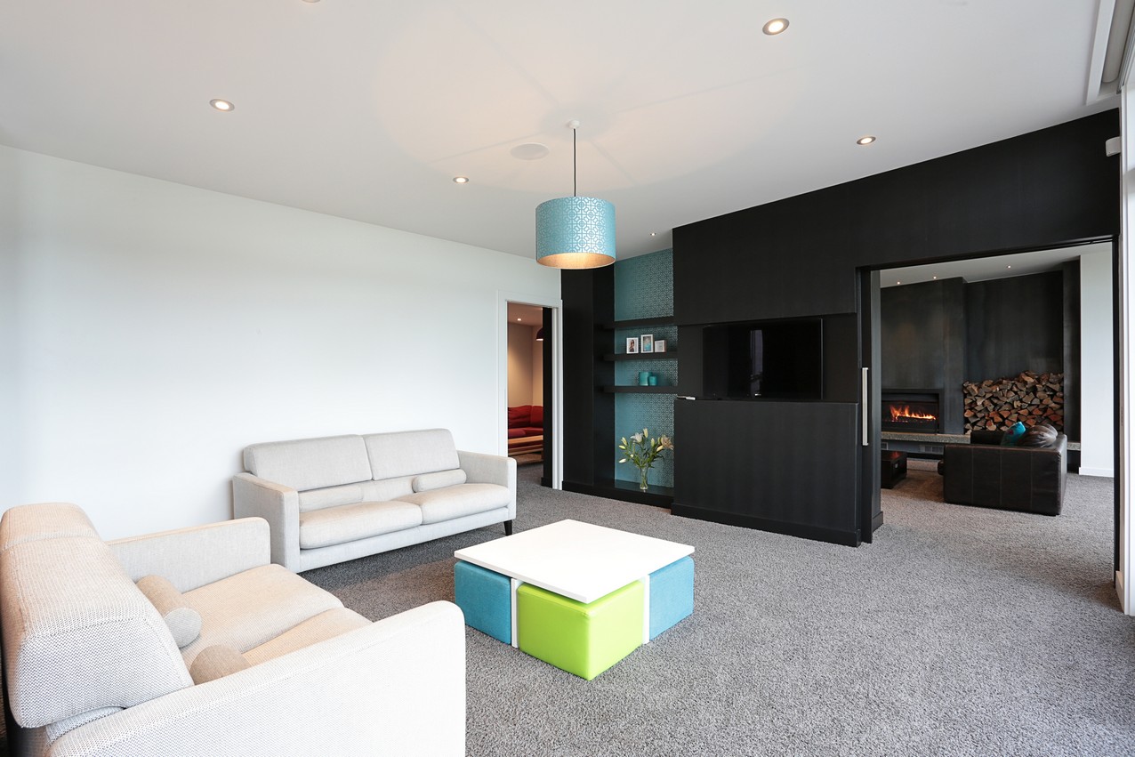 For formal dinner or large gatherings, the scullery allows the cook to impress guests while keeping clutter backstage. Exposed concrete flooring and a striking colour scheme add contemporary cool. Carpet keeps the bedrooms and open-plan area cosy. A snug off one of the two living areas allows kids their own space to relax with friends. Natural light spills into the main living space through over-sized sliders. Warmth and personality emanate from the Jetmaster open fire. The room flows onto a large outdoor deck that is ideal for summer soirees. The exterior is clad in horizontal black cedar and concrete block, creating a bold impression that speaks to the modern décor within. Floor-to-ceiling tiles in the three bathrooms give a fresh, timeless look.