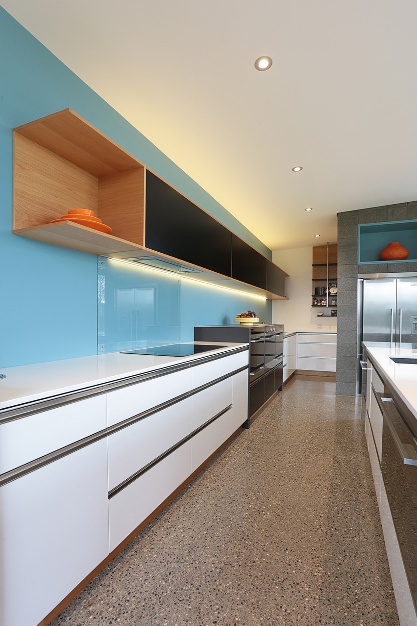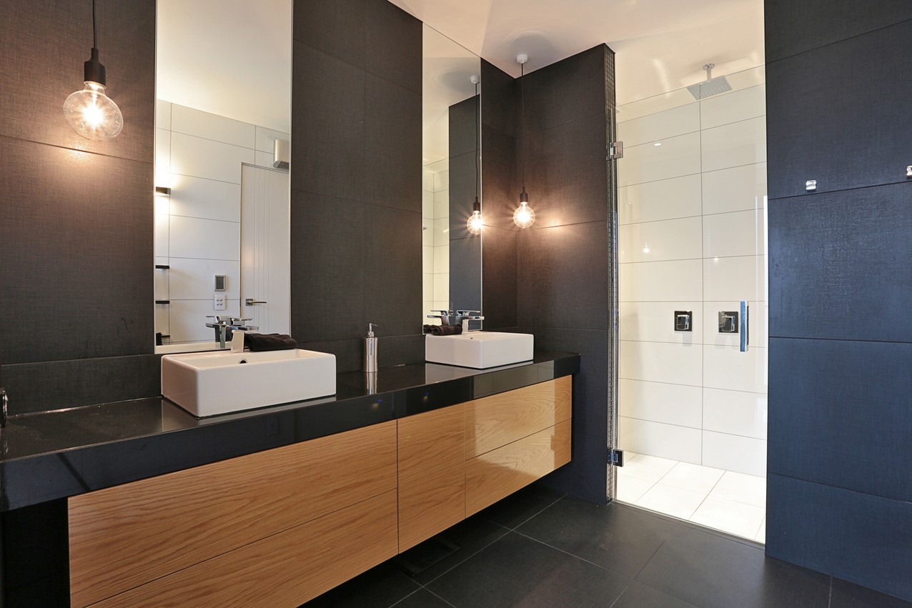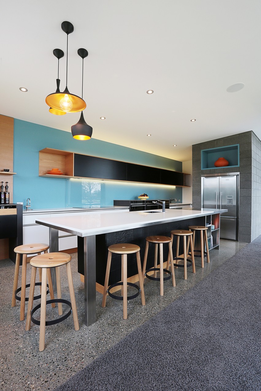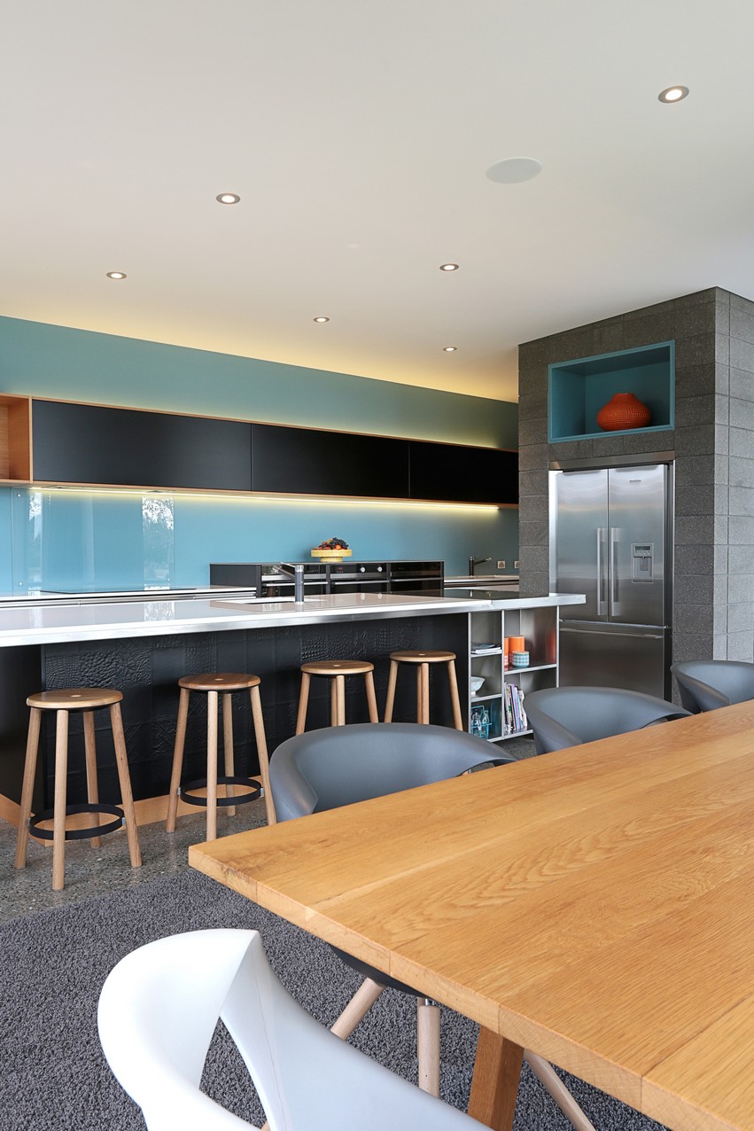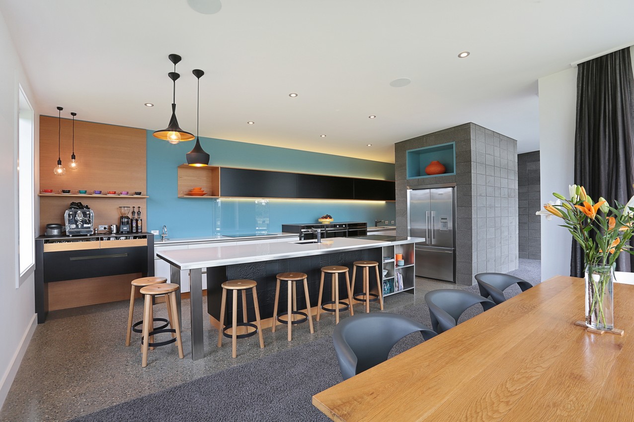 For formal dinner or large gatherings, the scullery allows the cook to impress guests while keeping clutter backstage. Exposed concrete flooring and a striking colour scheme add contemporary cool. Carpet keeps the bedrooms and open-plan area cosy. A snug off one of the two living areas allows kids their own space to relax with friends. Natural light spills into the main living space through over-sized sliders. Warmth and personality emanate from the Jetmaster open fire. The room flows onto a large outdoor deck that is ideal for summer soirees. The exterior is clad in horizontal black cedar and concrete block, creating a bold impression that speaks to the modern décor within. Floor-to-ceiling tiles in the three bathrooms give a fresh, timeless look.
