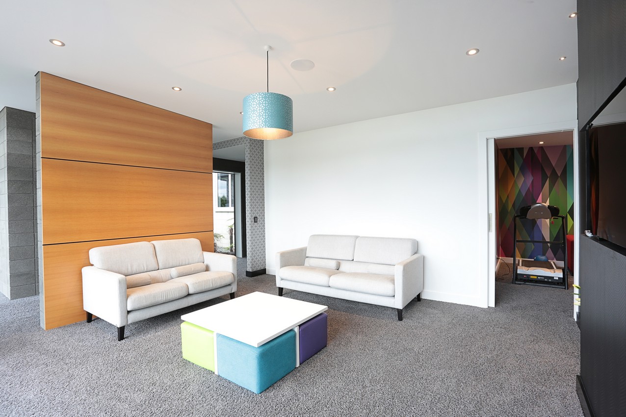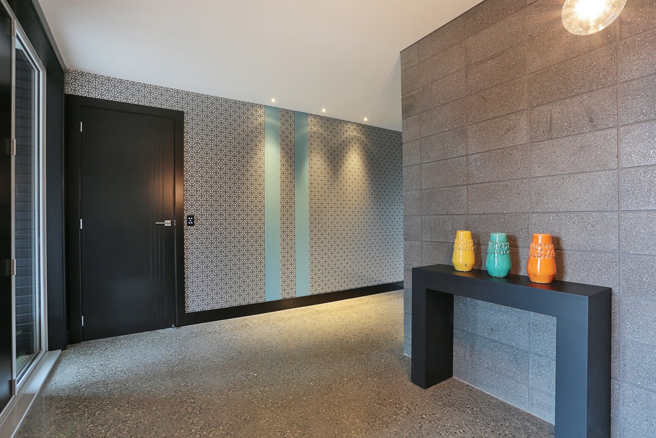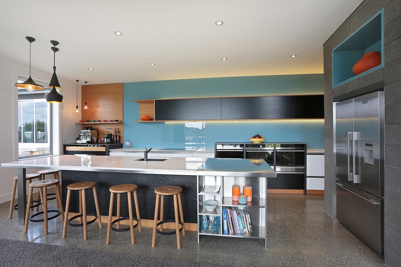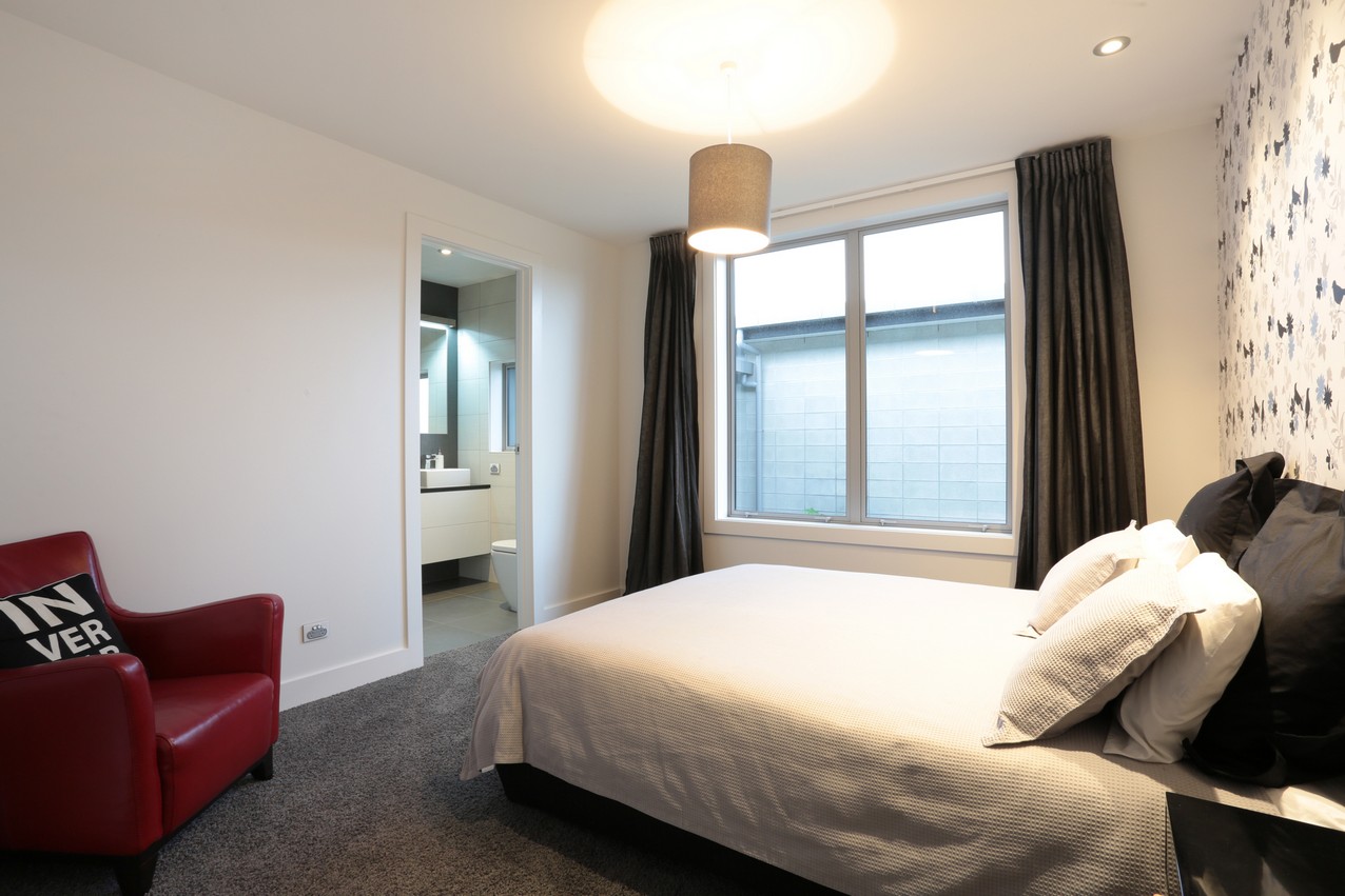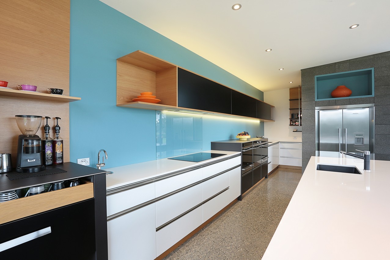 For formal dinner or large gatherings, the scullery allows the cook to impress guests while keeping clutter backstage. Exposed concrete flooring and a striking colour scheme add contemporary cool. Carpet keeps the bedrooms and open-plan area cosy. A snug off one of the two living areas allows kids their own space to relax with friends. Natural light spills into the main living space through over-sized sliders. Warmth and personality emanate from the Jetmaster open fire. The room flows onto a large outdoor deck that is ideal for summer soirees. The exterior is clad in horizontal black cedar and concrete block, creating a bold impression that speaks to the modern décor within. Floor-to-ceiling tiles in the three bathrooms give a fresh, timeless look.