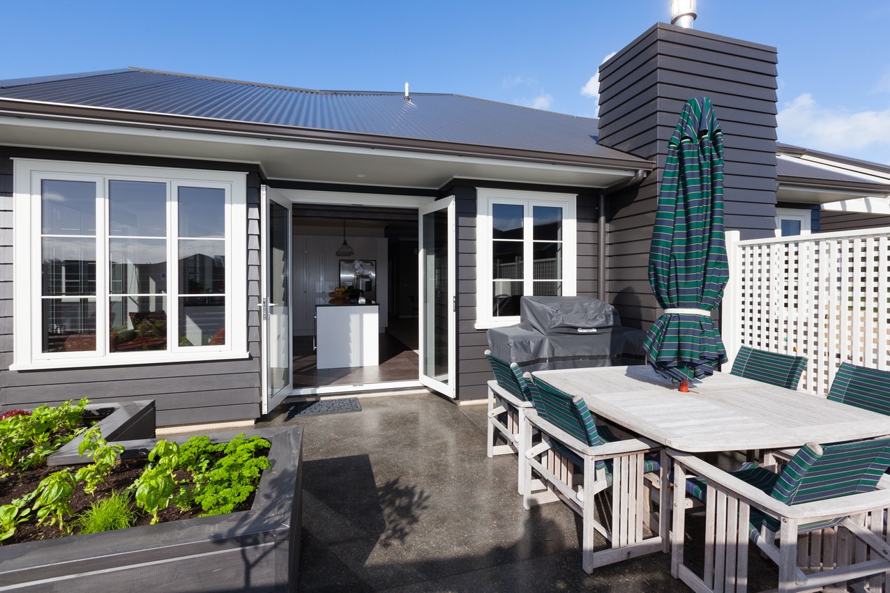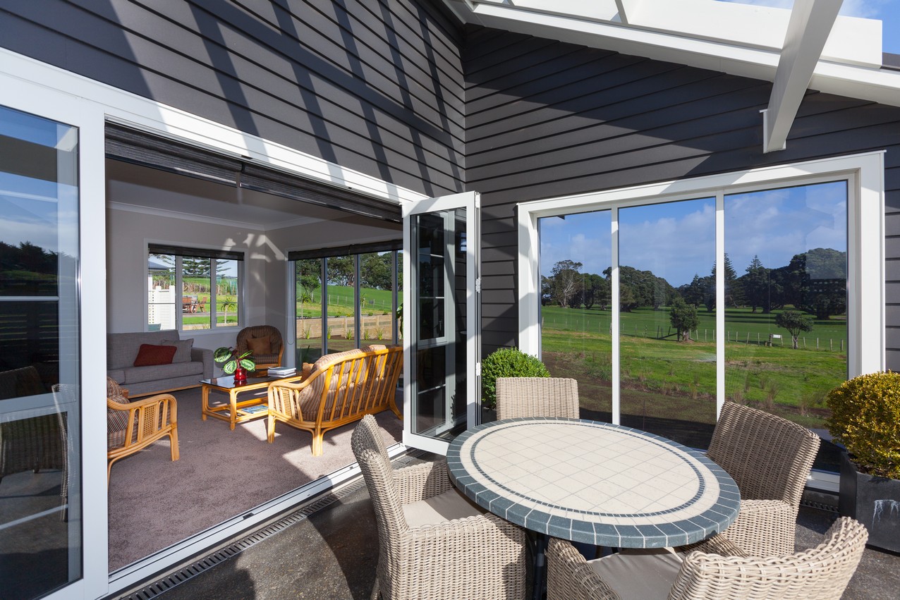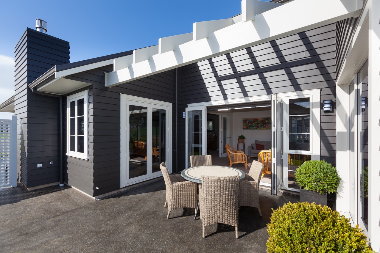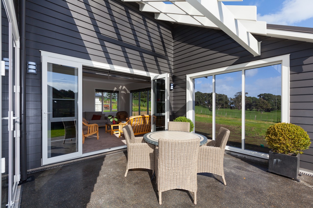 This Bell Block beauty makes clever use of outdoor space to frame the rural New Plymouth scenery. An extension of the formal lounge wall, complete with windows, shelters outdoor entertaining without spoiling the view.