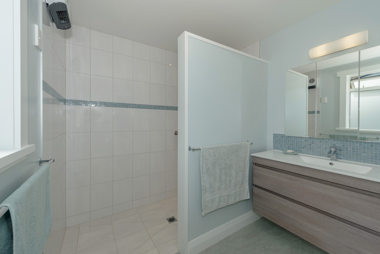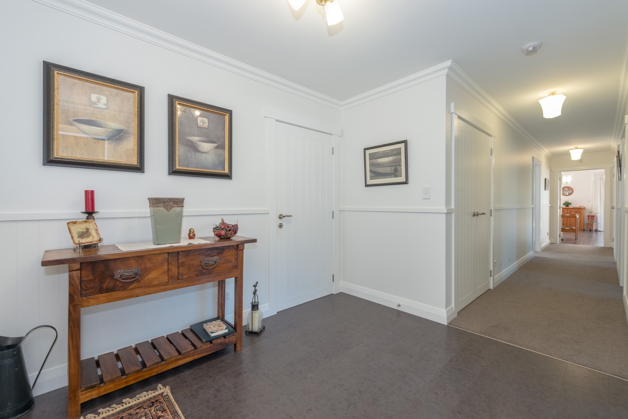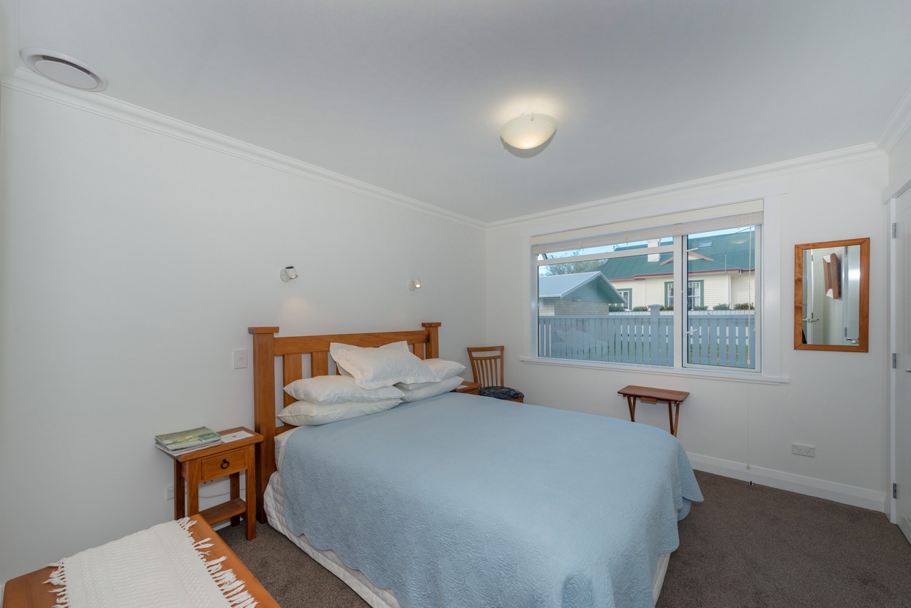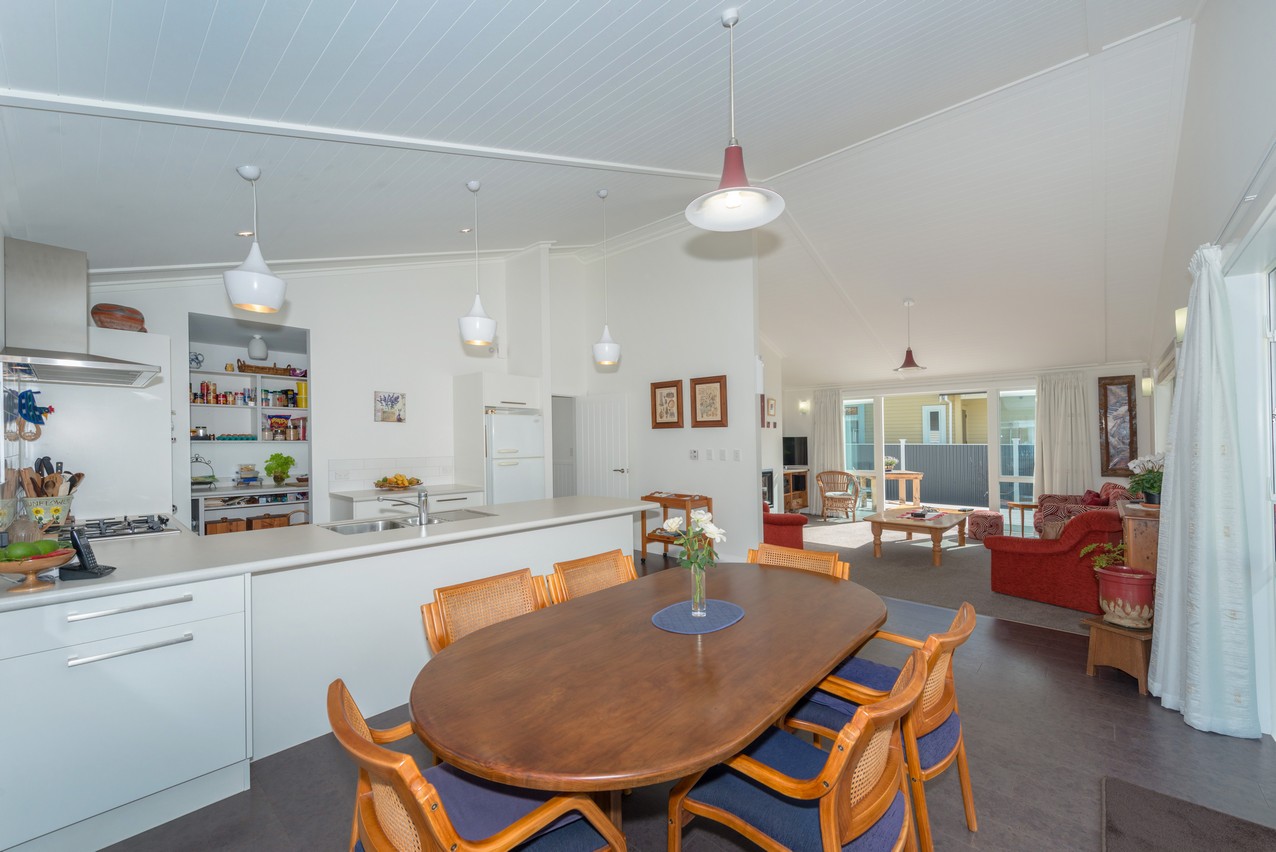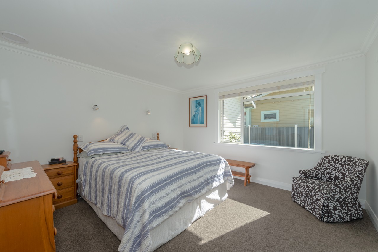 Particular attention has been given to ensure the front porch, soffits, exposed rafters and coverboards are in keeping with neighbouring homes. Cladding, meanwhile, was constructed with a cavity to meet modern-day standards. On entering the three-bedroom home, it’s worth noting the hallway panelling, crafted to maintain equal spacing between the architraves for an authentic heritage look. Windowsills mimic the classic 1930s aesthetic. The doors are solid core with thicker jambs to prevent potential movement; the result is a visually appealing feature. The tongue-and-groove ply and timber battens of the ceiling are also in keeping with the era. Reinforced wing walls in the bathrooms provide a wheelchair-friendly feature; patio doors offer level entry for fluid mobility. Safety features include sensors for low-light conditions. The home is insulated for quiet and warmth.