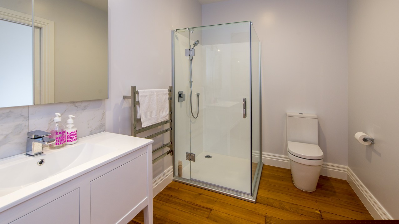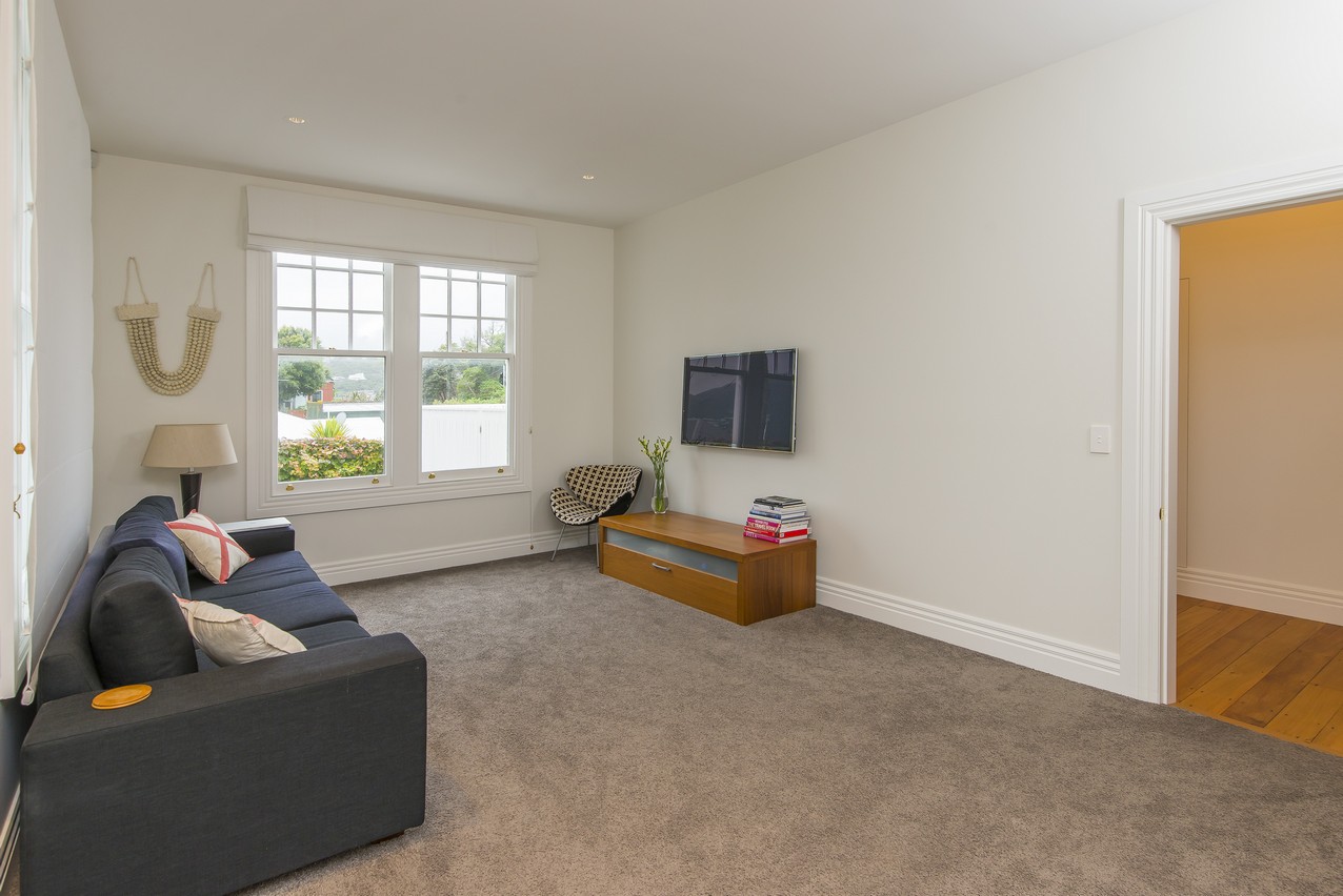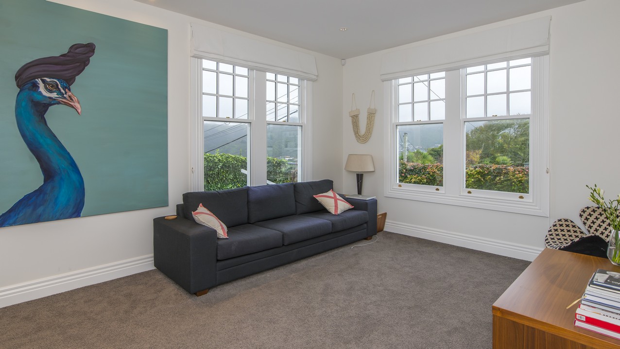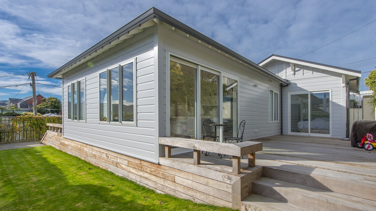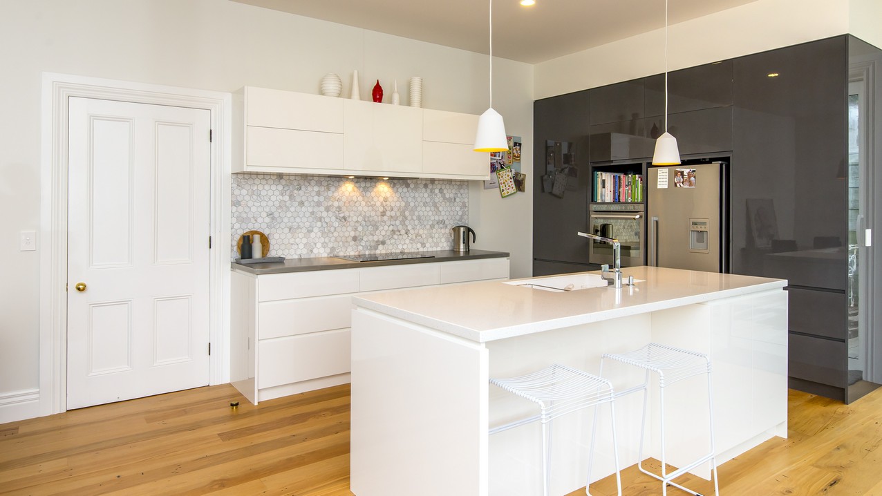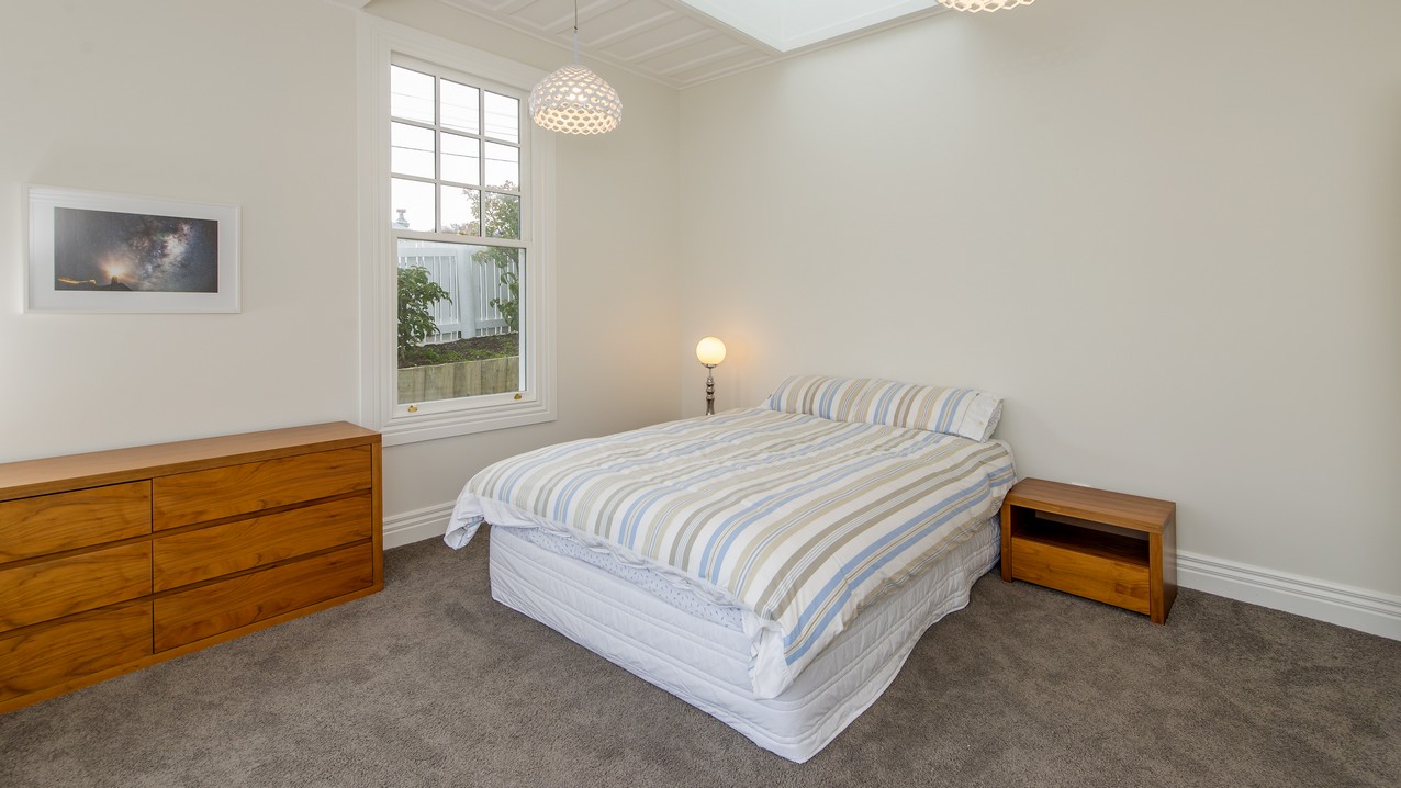 Now with four bedrooms and two bathrooms, the spacious family home in Wadestown, Wellington, is light, warm, comfortable and a pleasure to live in. The owners had firm requirements of functionality for their young and growing family, and wanted to find a balance between maintaining the character of their home and making it fit for modern living. Building on its lovely bones, the upgrade and extension has restored this residence to its former glory and beyond. While much of the internal structure has been reorganised for effective use of space, external features have been retained to reinforce the home’s historic identity. A mixture of traditional details, such as timber sash windows and a stunning reclaimed stained-glass front door, coexist with modern conveniences. Aluminium multi-sliders in the new open-plan space, and an ensuite off the master bedroom, are conducive to contemporary, easy living.