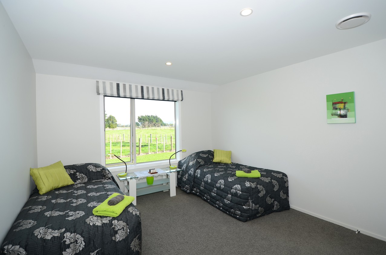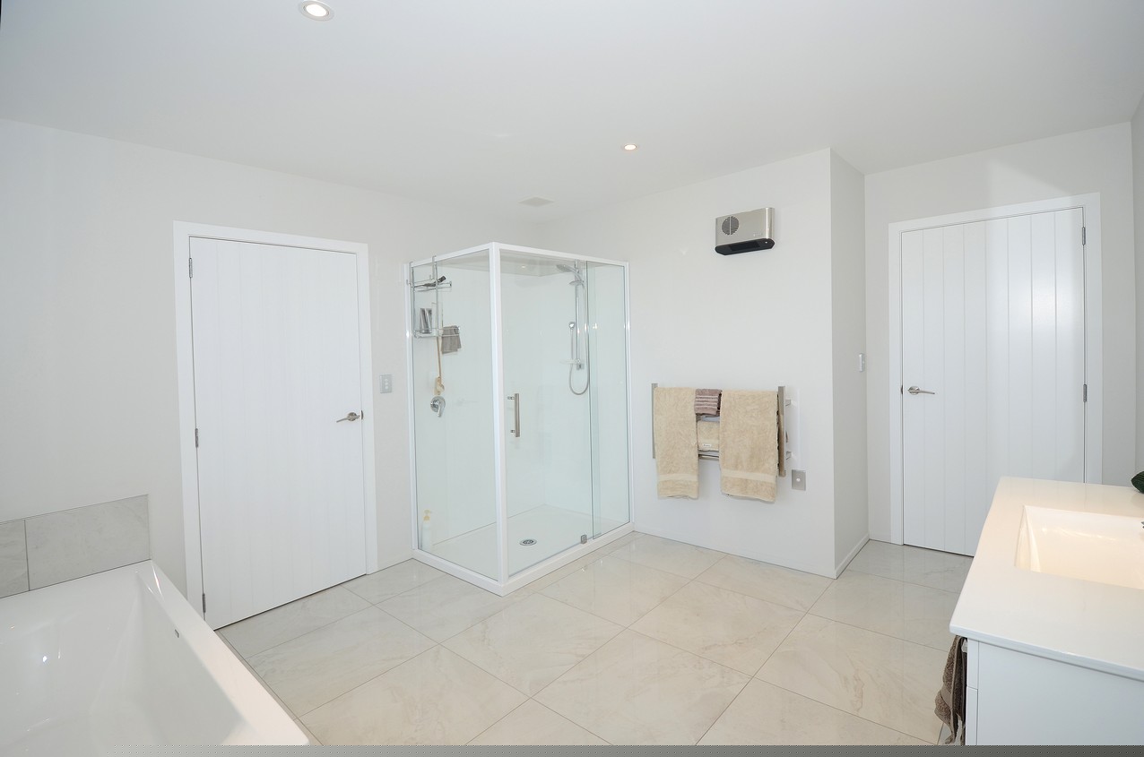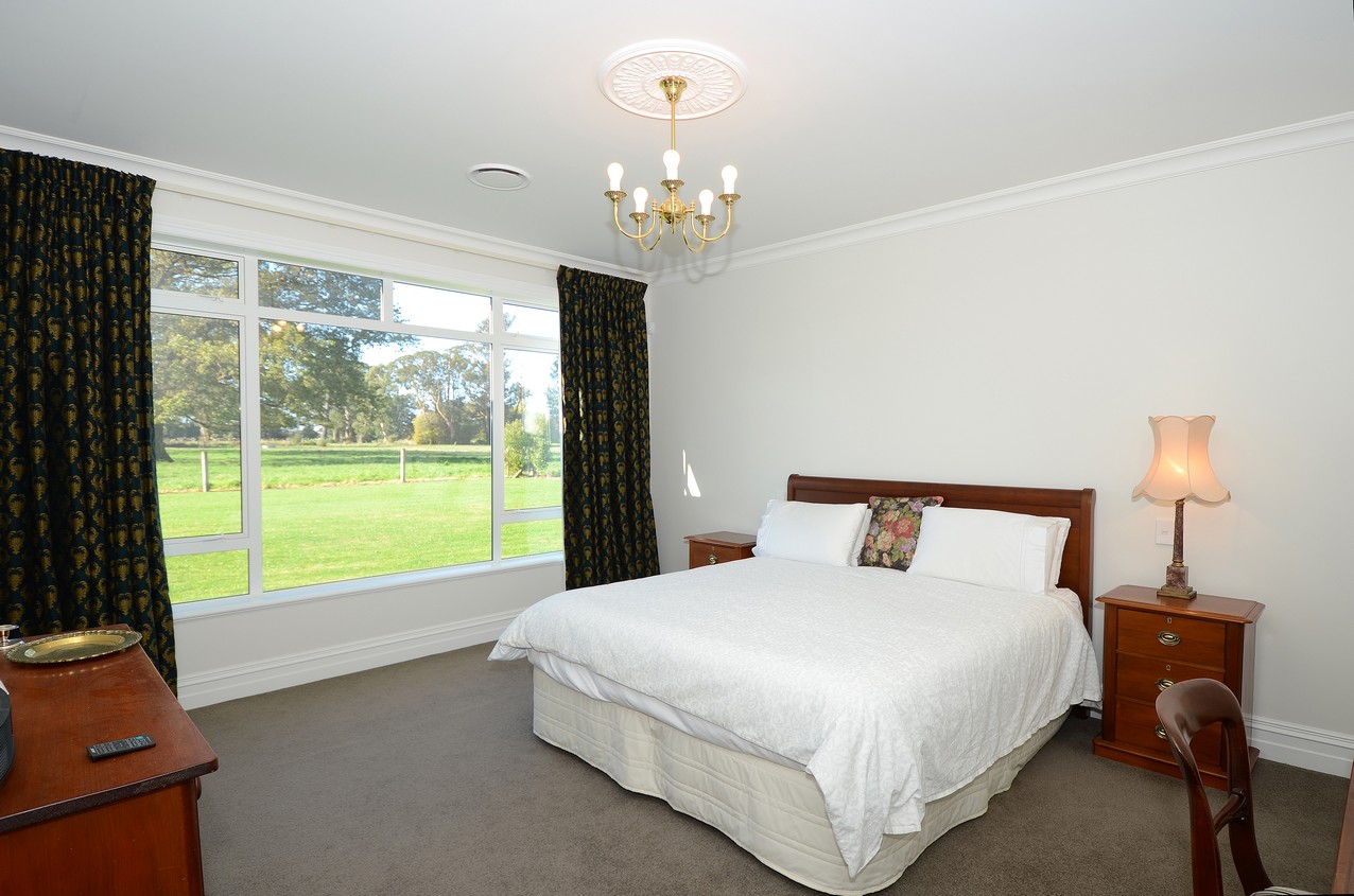 Exposed trusses enhance the country feel of the covered outdoor entertaining area, drawing attention to its impressive height. Brick feature columns tie into the home’s rock-solid cladding. The alfresco space flows inside to a large open-plan living hub, the heart of this 318sqm four-bedroom home. A separate lounge offers a cosy, quiet place away from the action and the TV. A terraced area, protected from prevailing winds, is also on offer for enjoyment of the outdoors. For more comfortable – and horizontal – appreciation of the ever-changing vista, the master bedroom is the place to be. Grey tint glass offers sun protection without spoiling the view. An ensuite completes this retreat. The home has been built to last using quality products throughout. A high level of insulation keeps things lovely and warm.