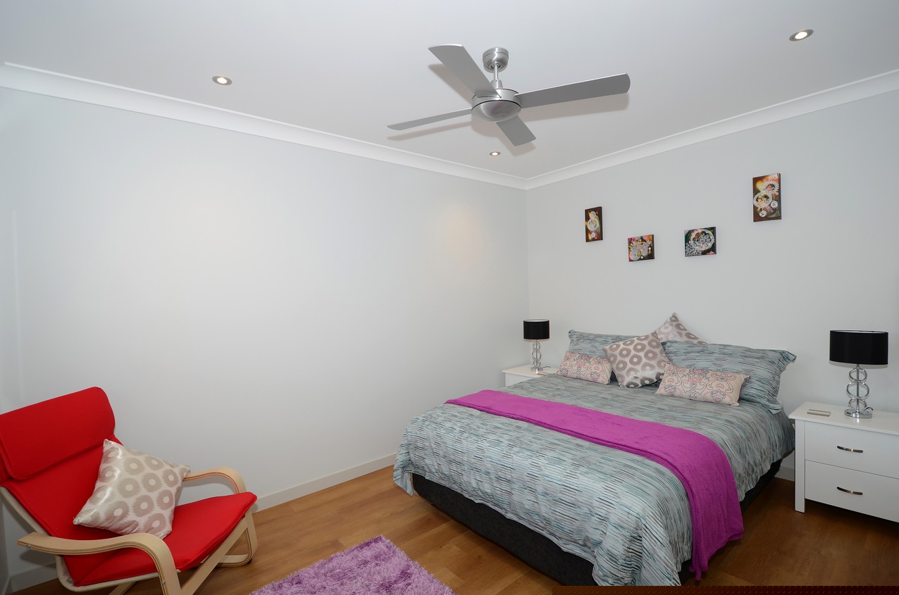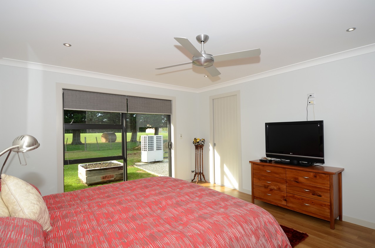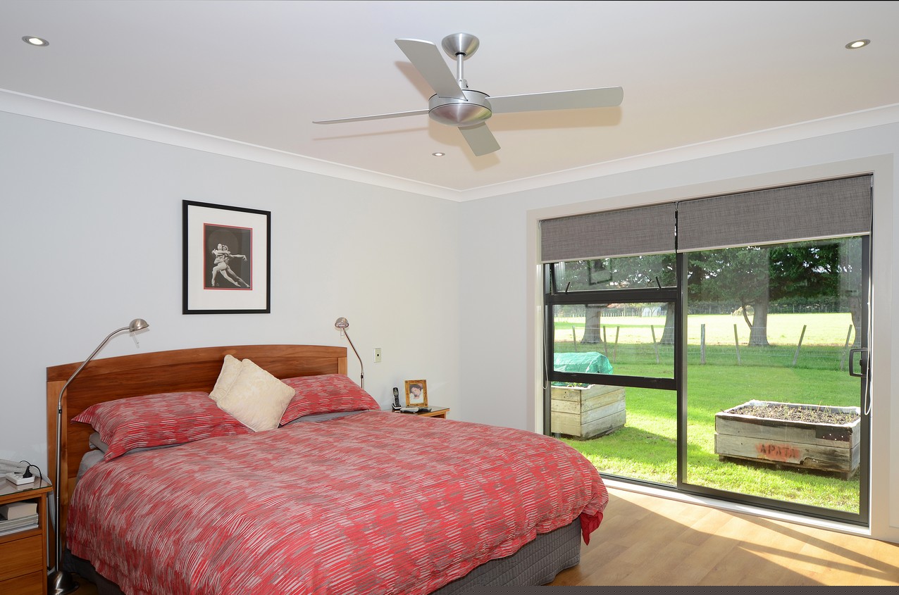 The fully tiled kitchen, dining and living area sets the stage for everyday relaxing and weekend get- togethers. Timber floors grace the bedrooms. Ceiling fans encourage good airflow, keeping the interior cool in summer. Underfloor heating does its bit too. A large timber deck enjoys all-day sun, with a panel heater to keep things cosy when the temperature cools. The pitched rooftops above provide shelter and a welcoming sense of space. Clean lines and soft-close drawers disguise ample storage in the well-designed kitchen. LED lighting in the overhead wine unit glows with the flow. Sliding windows allow the cook to chat with guests and pass food directly to the alfresco dining area. Three bedrooms include a master with beautiful ensuite and outdoor access. A purpose-built Pilates studio completes this thoroughly thought-out relaxing retreat.