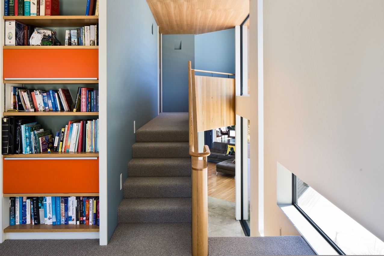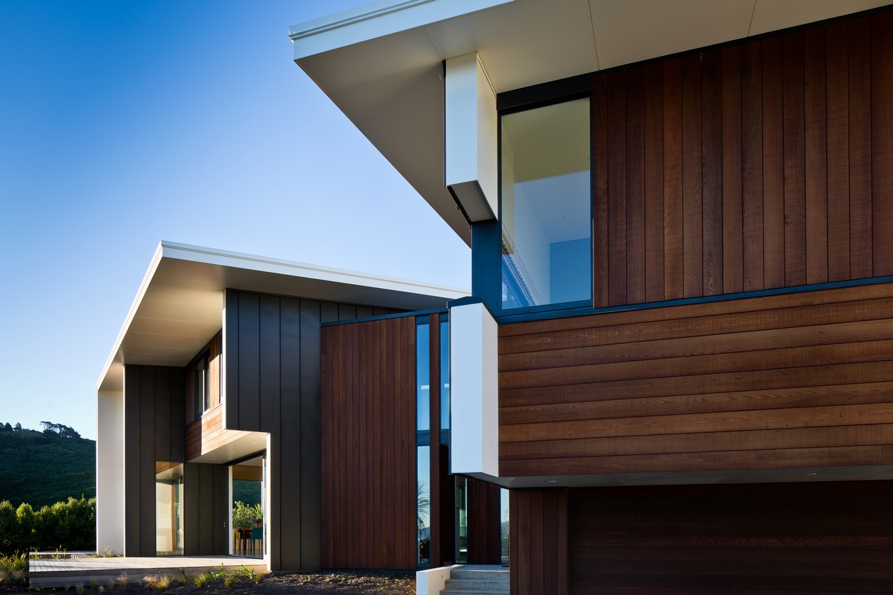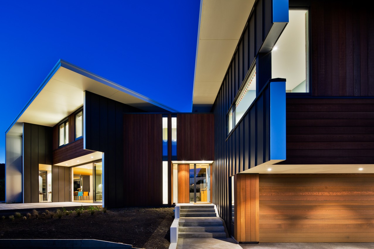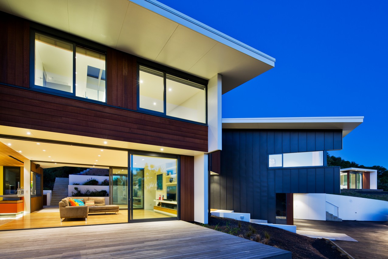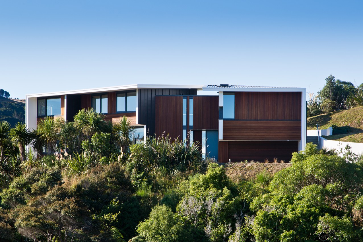 Clad in zinc, corrugated Colorsteel and cedar, this architecturally designed home in Lower Hutt exudes space and style. Wood elements and splashes of orange give the contemporary home a retro vibe.
