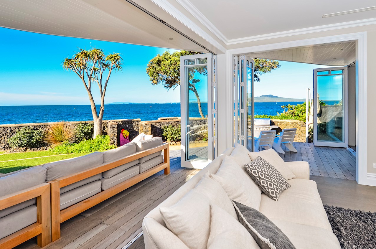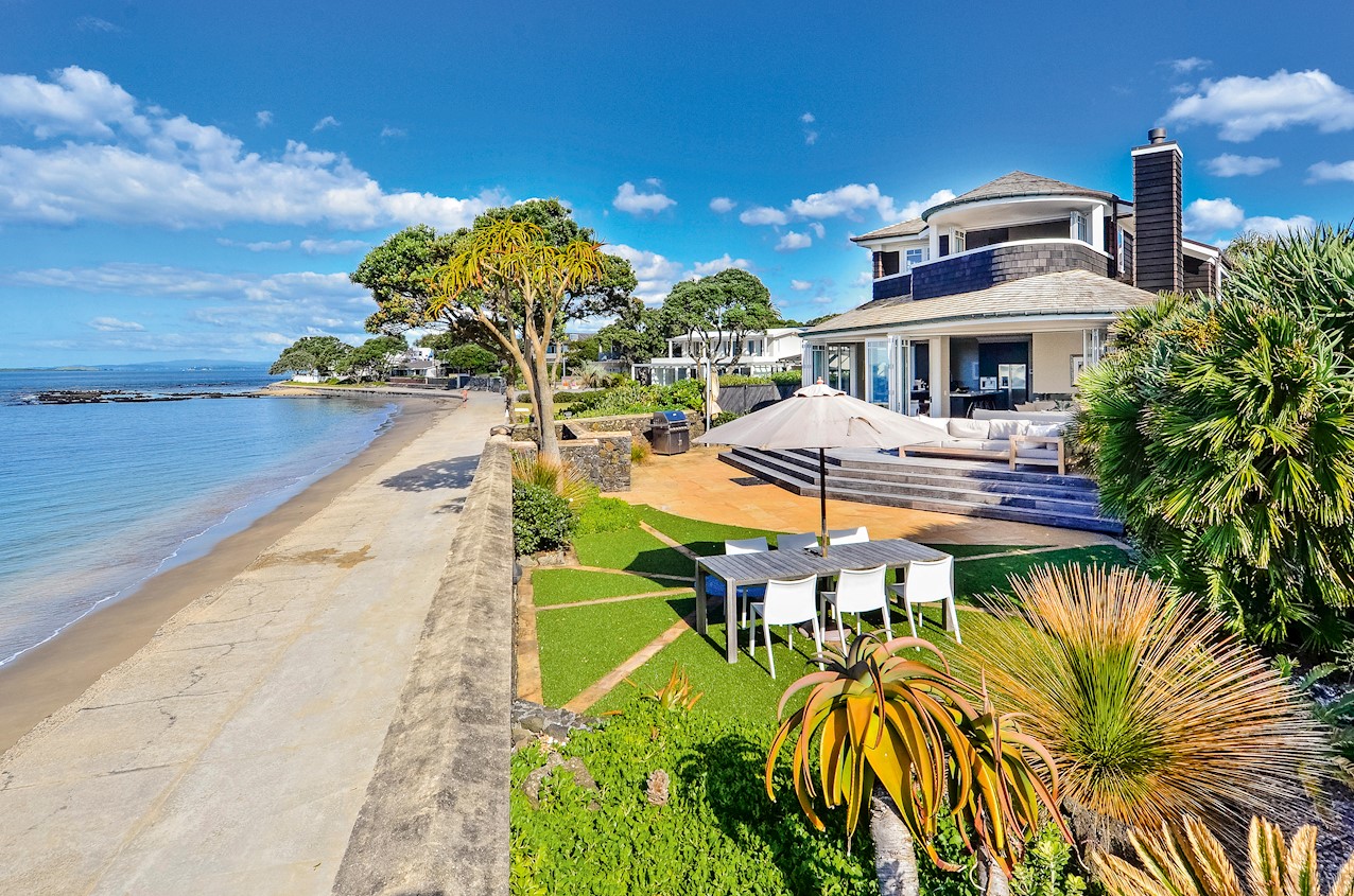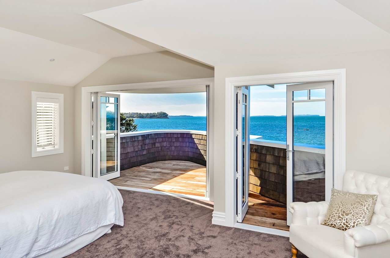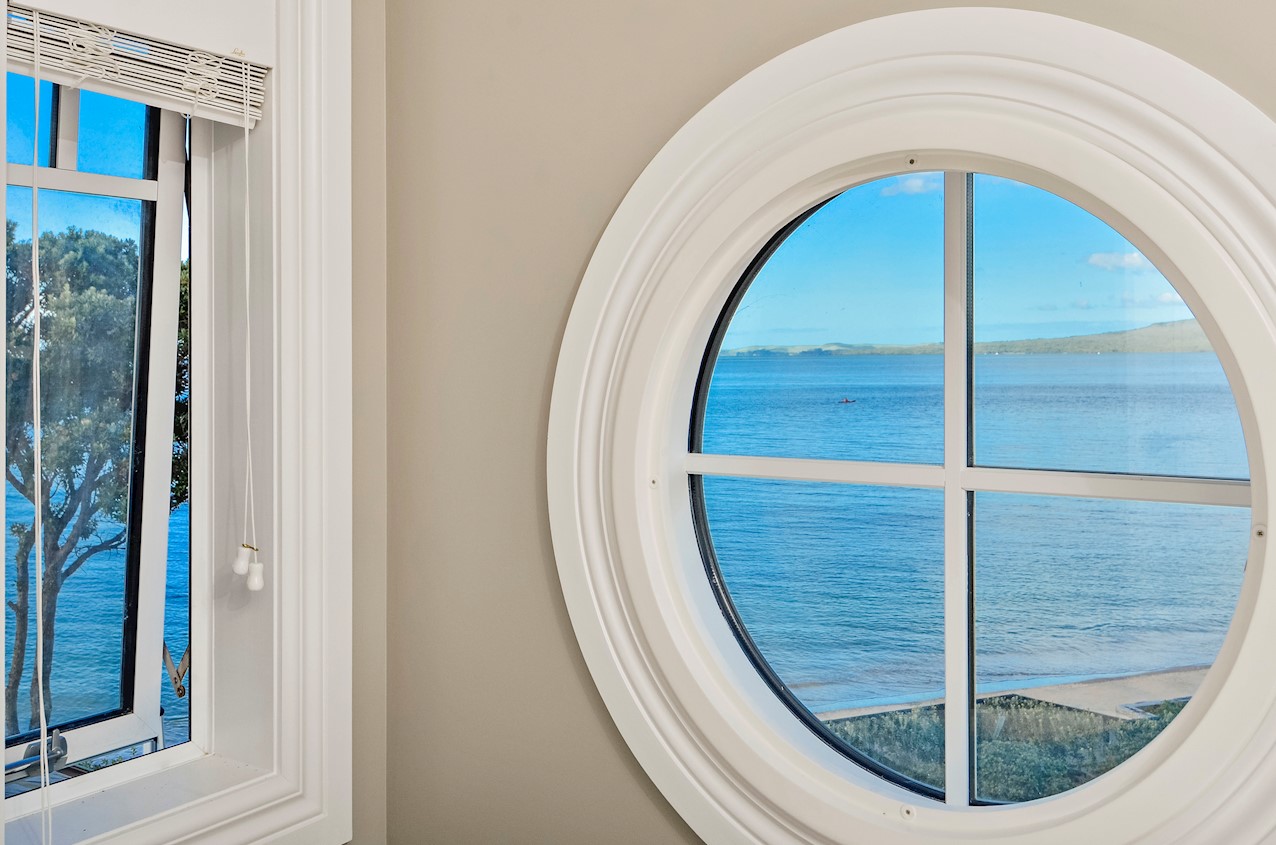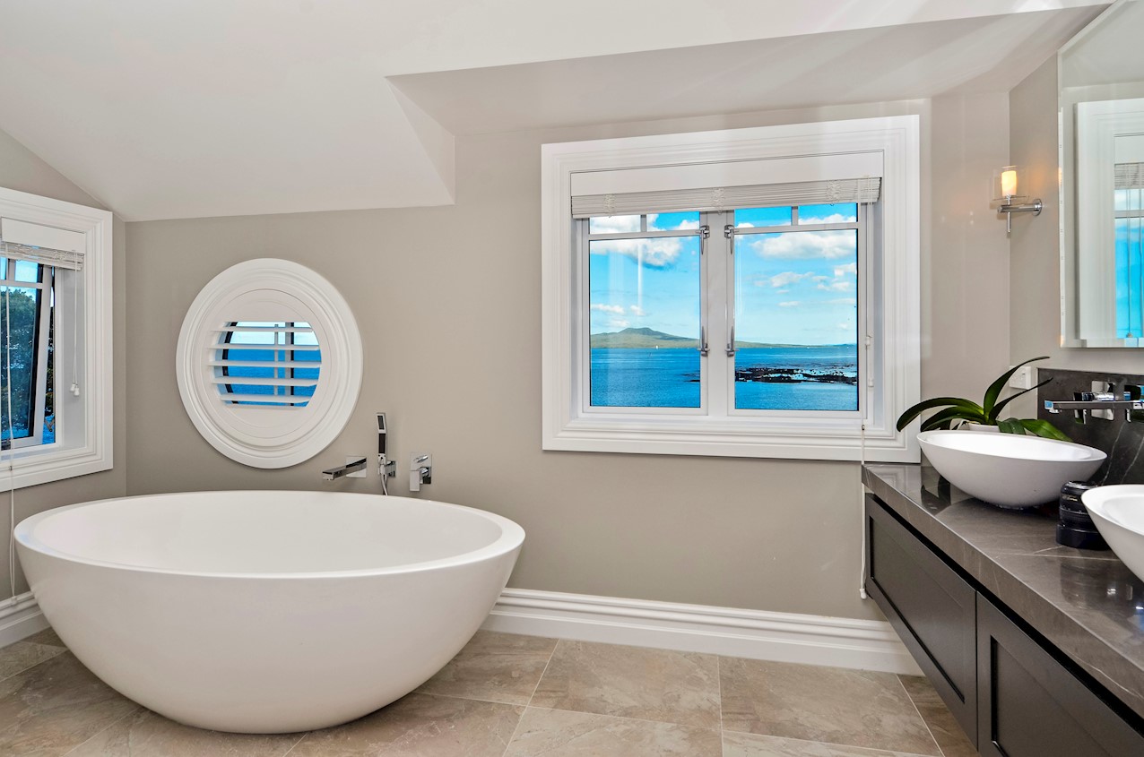 The remarkable renovation of this 454sqm Milford residence could more accurately be described as a reincarnation. No stone has been left unturned in transforming the beach-front home into a contemporary Cape Cod-style escape. Fragments of existing framing are all that remain of the former family home. Plaster cladding was stripped and switched for smart cedar weatherboards. Large decks gaze over the water. The new shingle roof caps things off nicely. The home’s many small rooms were demolished, with new structural beams installed to support a more open, flowing layout. That’s not to say there’s nowhere to retreat for peace and quiet. Five beautifully updated bedrooms easily accommodate residents and guests. Three exquisitely tiled bathrooms with walk-in glazed showers and freestanding bowl-shaped baths provide everyday luxury. A feature spiral staircase, ornate fireplaces and a state-of-the-art kitchen with marble benchtops are just a few more stunning features of this magnificent makeover.