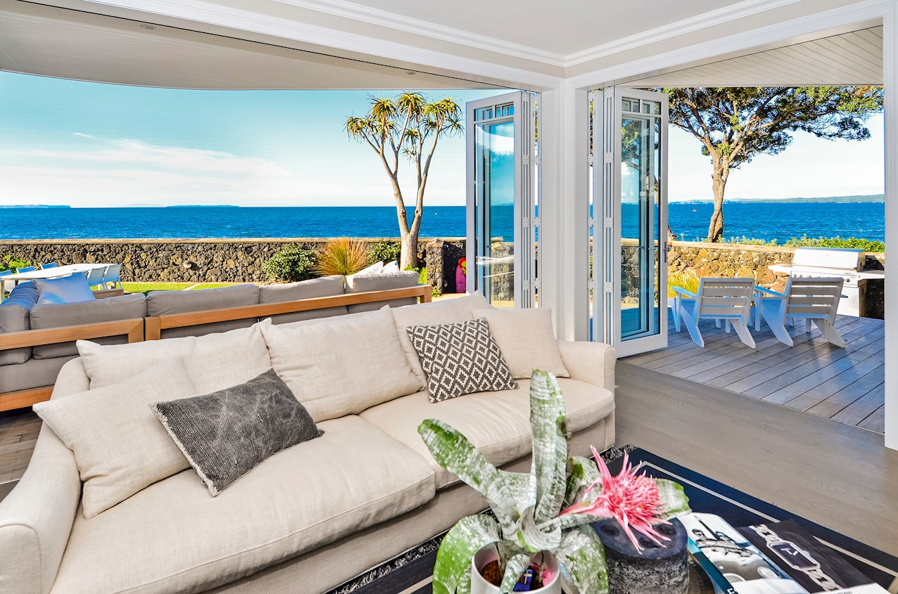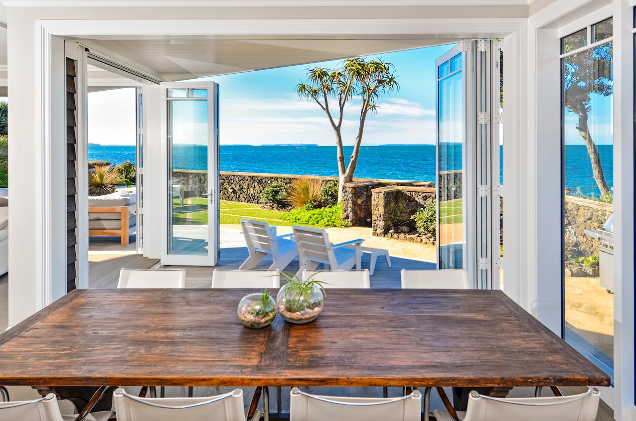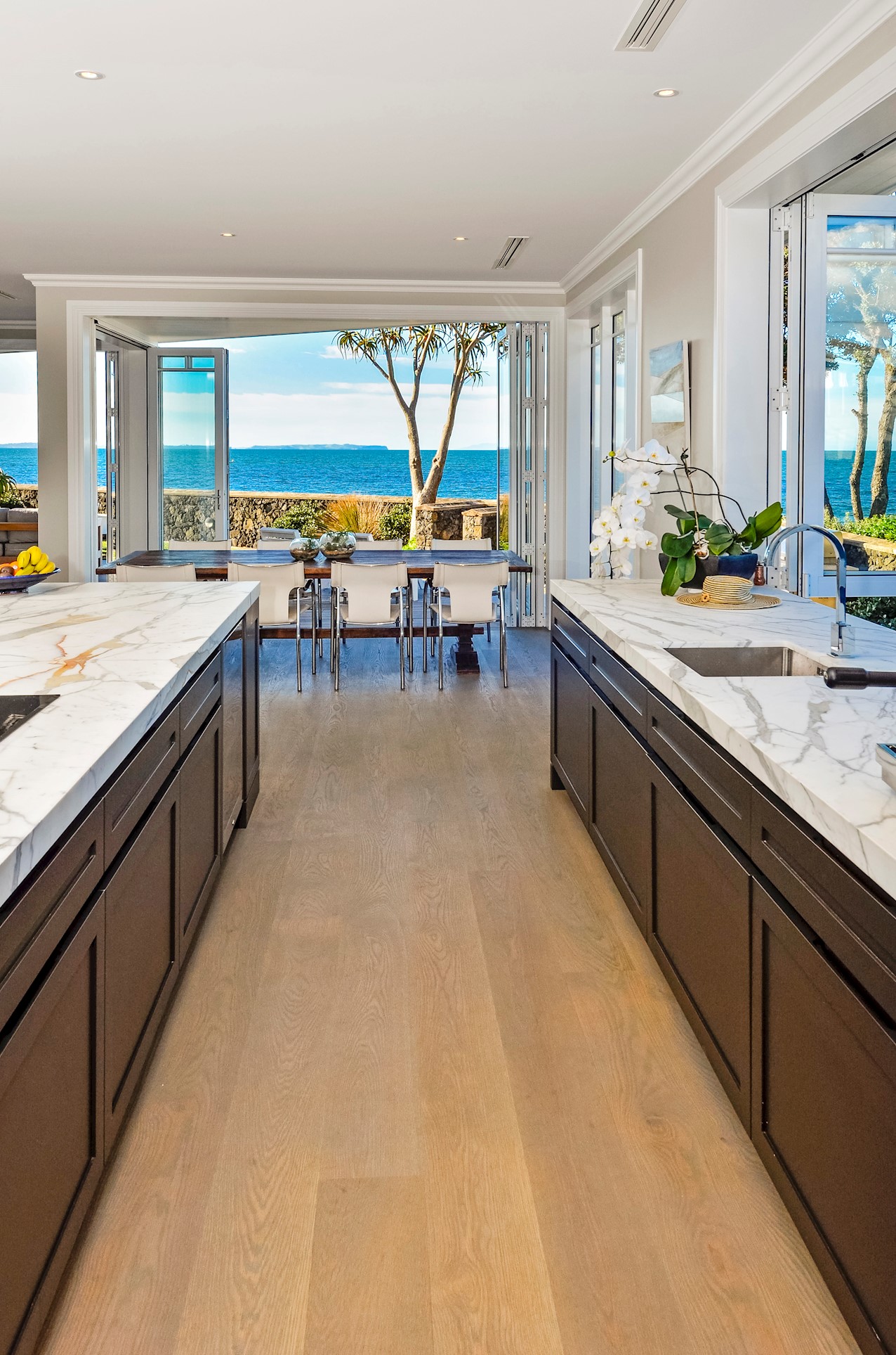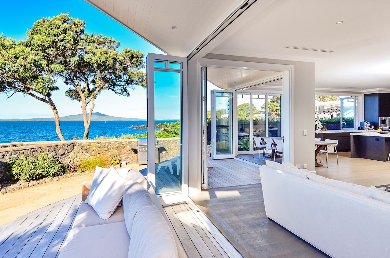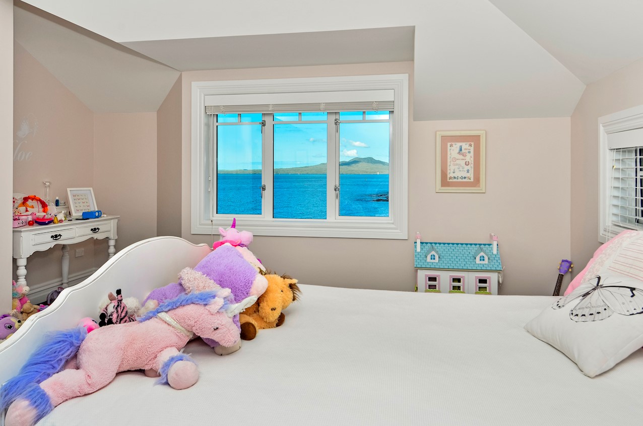 The remarkable renovation of this 454sqm Milford residence could more accurately be described as a reincarnation. No stone has been left unturned in transforming the beach-front home into a contemporary Cape Cod-style escape. Fragments of existing framing are all that remain of the former family home. Plaster cladding was stripped and switched for smart cedar weatherboards. Large decks gaze over the water. The new shingle roof caps things off nicely. The home’s many small rooms were demolished, with new structural beams installed to support a more open, flowing layout. That’s not to say there’s nowhere to retreat for peace and quiet. Five beautifully updated bedrooms easily accommodate residents and guests. Three exquisitely tiled bathrooms with walk-in glazed showers and freestanding bowl-shaped baths provide everyday luxury. A feature spiral staircase, ornate fireplaces and a state-of-the-art kitchen with marble benchtops are just a few more stunning features of this magnificent makeover.