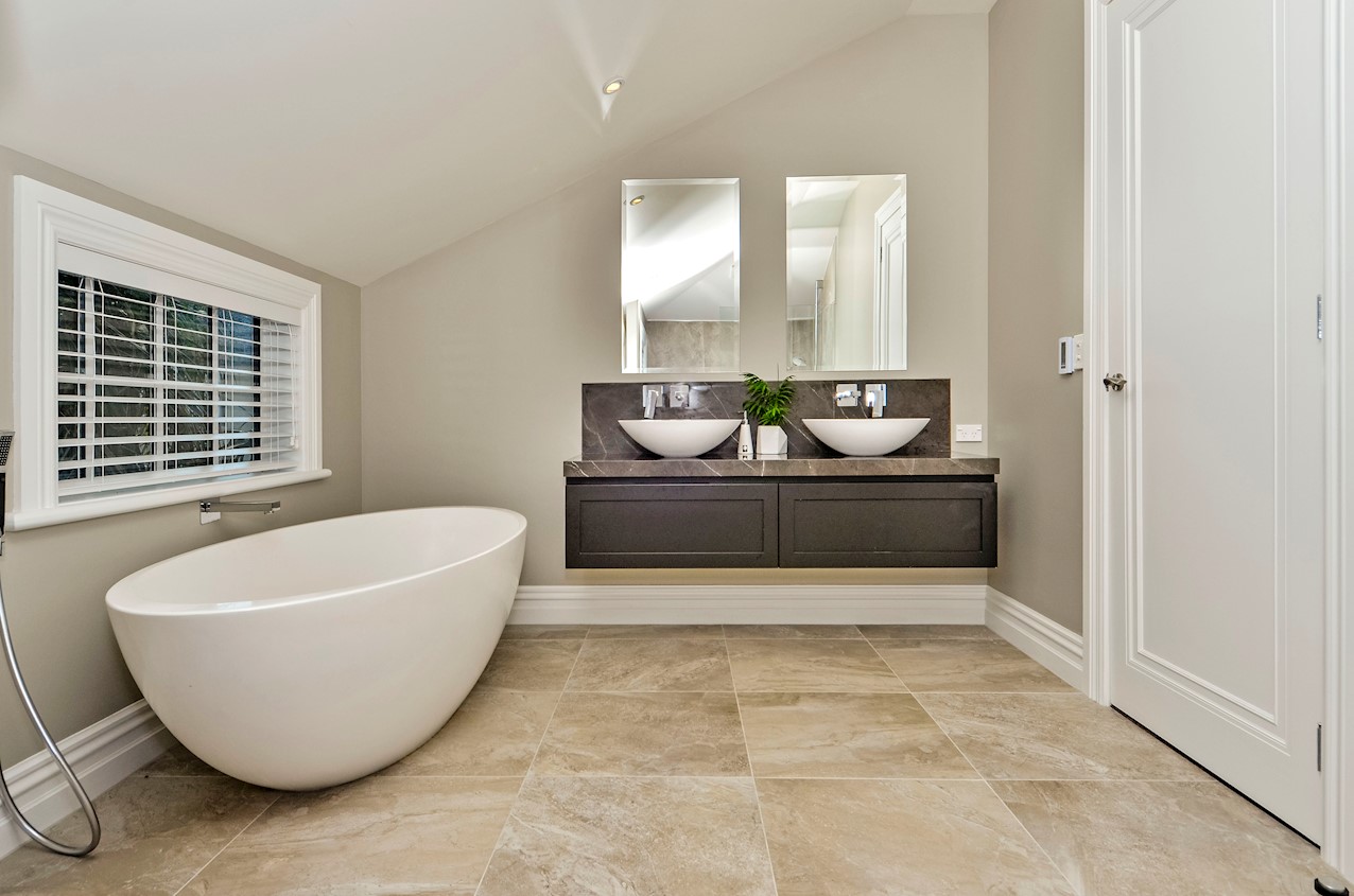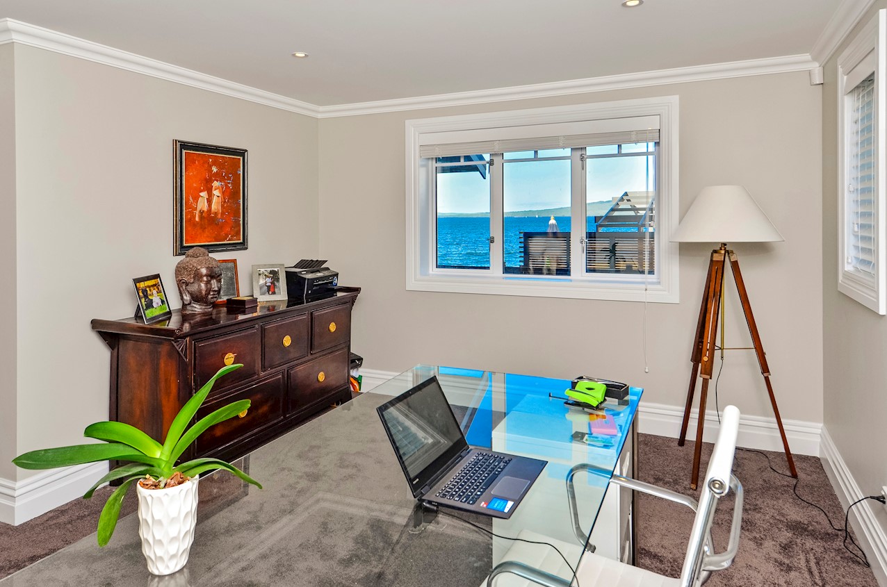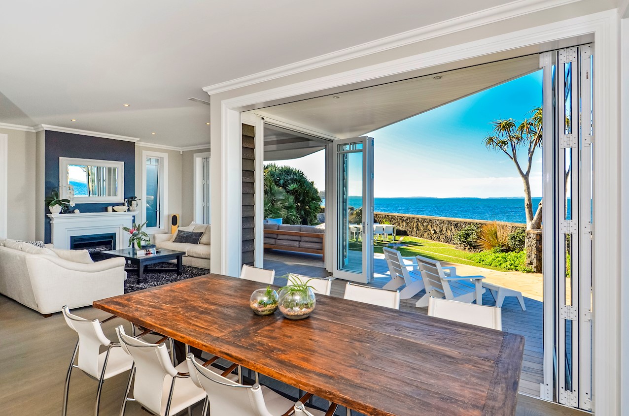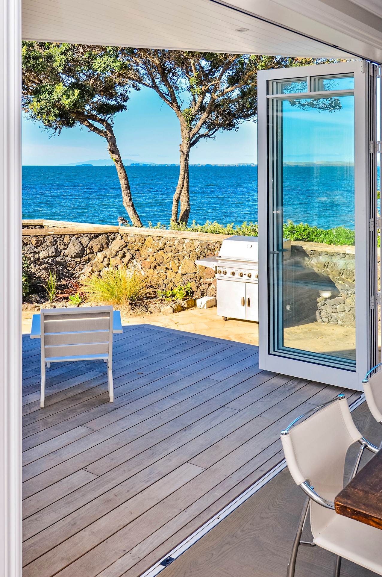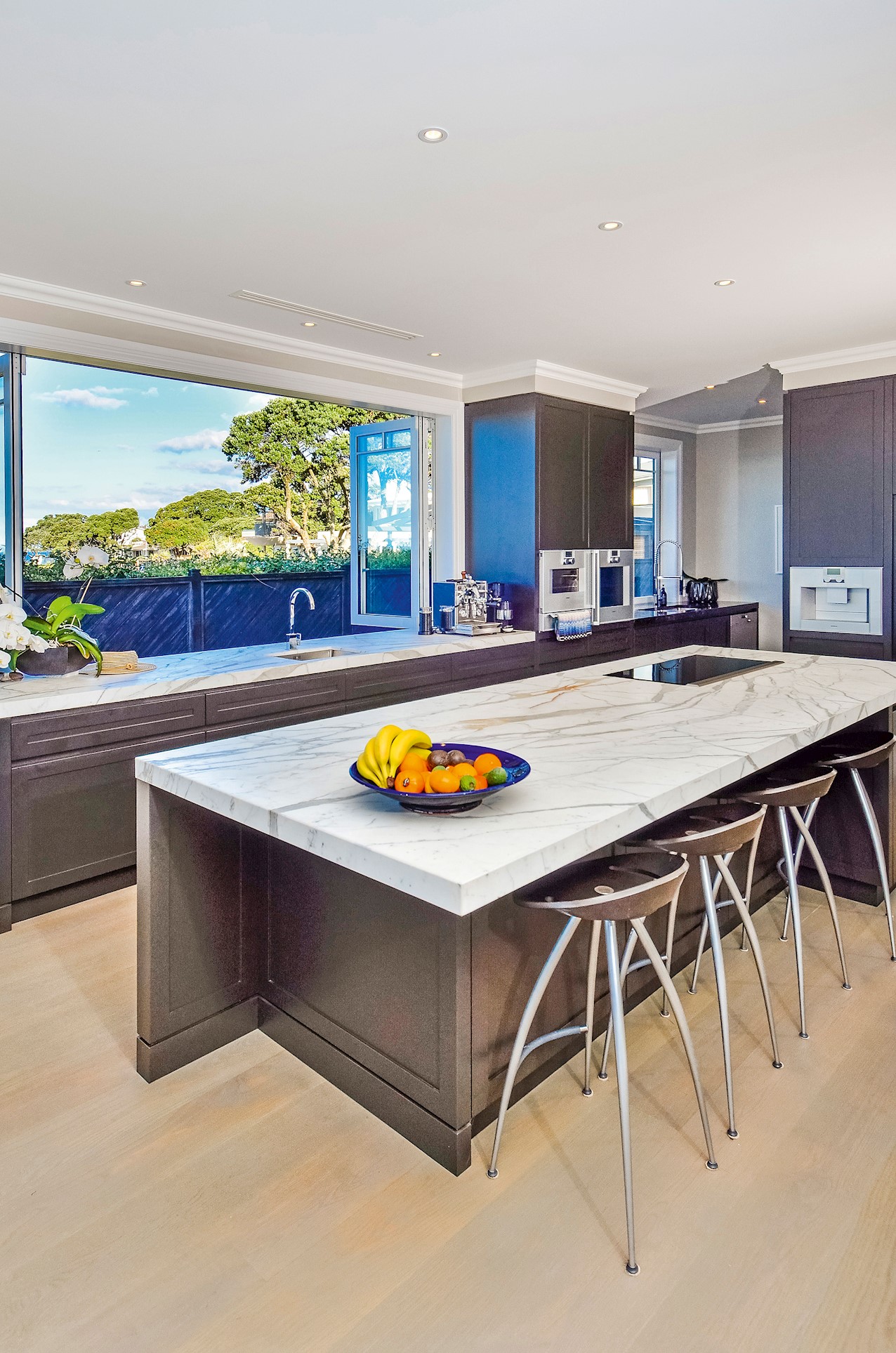 The remarkable renovation of this 454sqm Milford residence could more accurately be described as a reincarnation. No stone has been left unturned in transforming the beach-front home into a contemporary Cape Cod-style escape. Fragments of existing framing are all that remain of the former family home. Plaster cladding was stripped and switched for smart cedar weatherboards. Large decks gaze over the water. The new shingle roof caps things off nicely. The home’s many small rooms were demolished, with new structural beams installed to support a more open, flowing layout. That’s not to say there’s nowhere to retreat for peace and quiet. Five beautifully updated bedrooms easily accommodate residents and guests. Three exquisitely tiled bathrooms with walk-in glazed showers and freestanding bowl-shaped baths provide everyday luxury. A feature spiral staircase, ornate fireplaces and a state-of-the-art kitchen with marble benchtops are just a few more stunning features of this magnificent makeover.