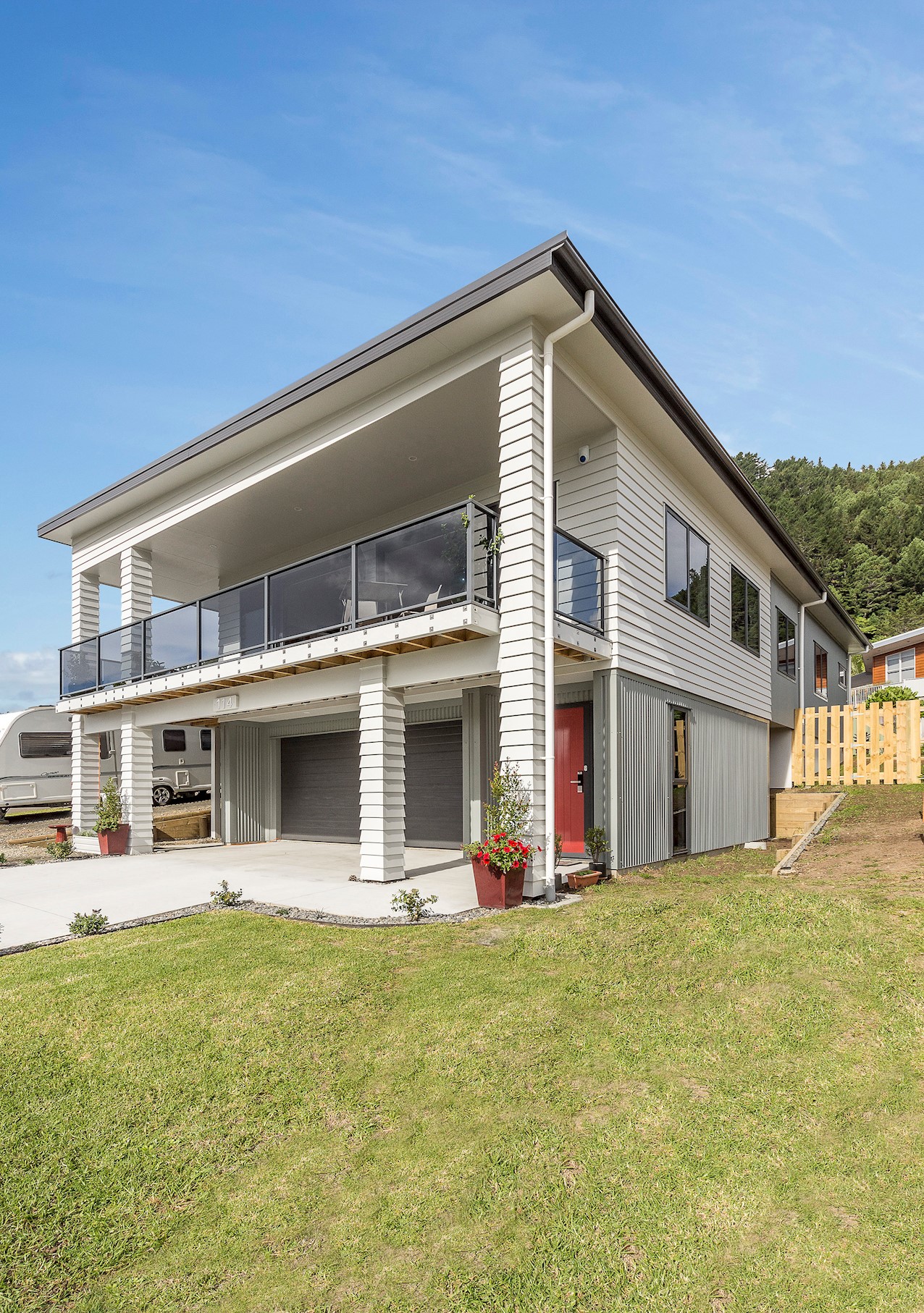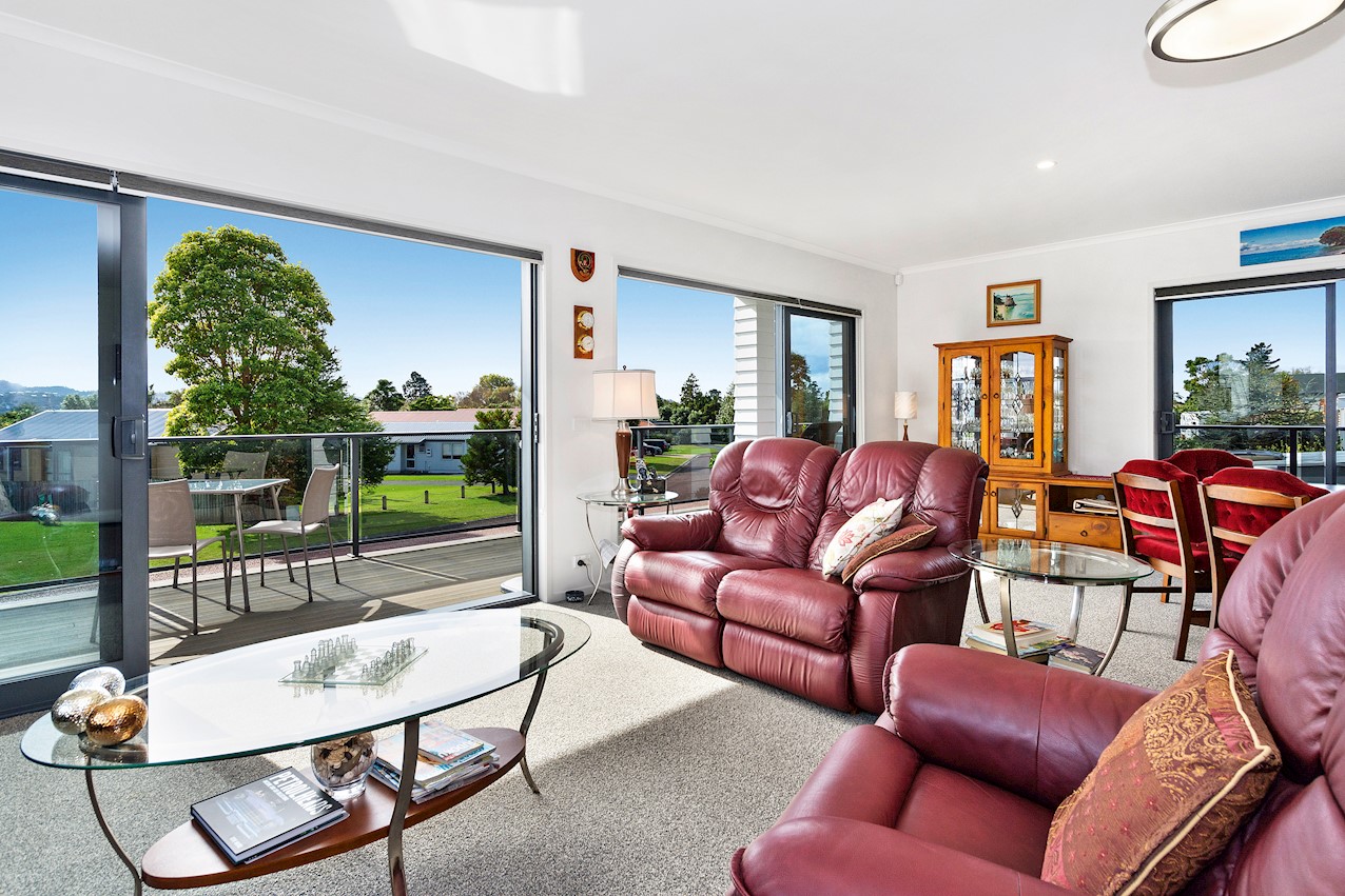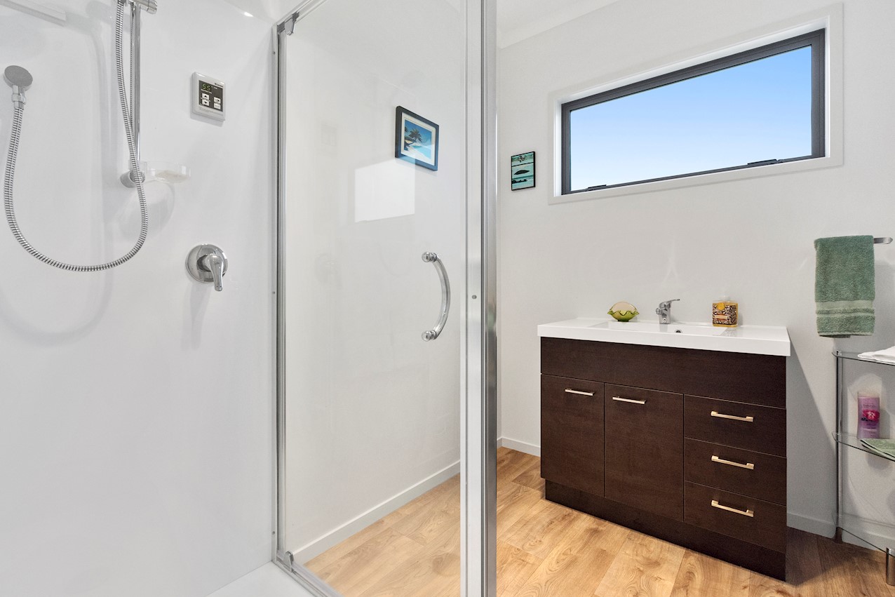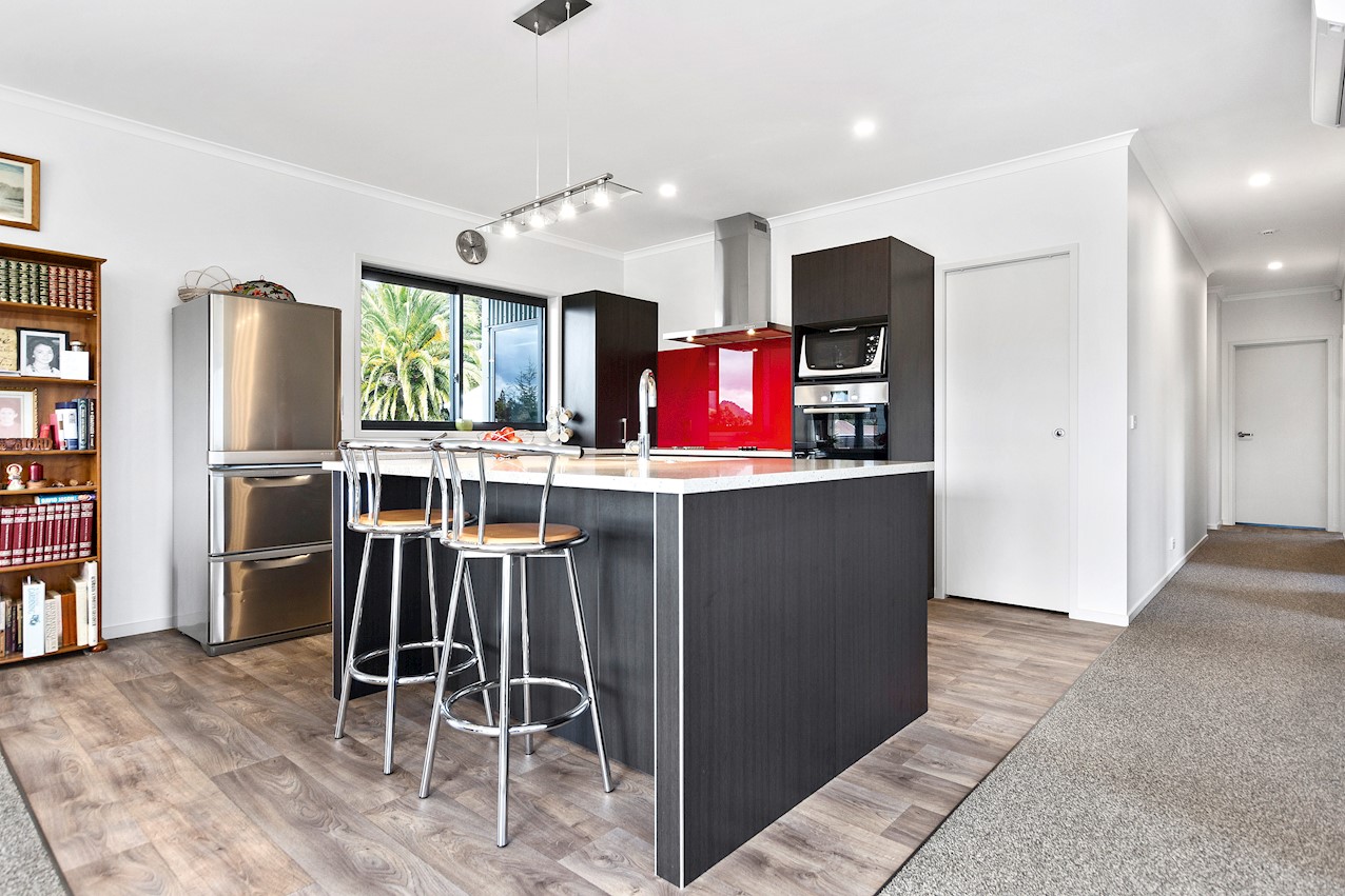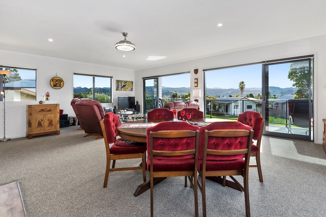 Life’s coasting along beautifully for the owners of this pleasant and super-practical Pauanui retirement pad. Light, bright Linea weatherboard and corrugated iron cladding add plenty of street appeal. The bright red front door provides a welcome introduction. Built over two storeys, the great-value three-bedroom, two-bathroom residence will easily accommodate family and friends. Open-plan living creates a wonderful hub for everyday enjoyment on the top floor. The kitchen boasts a walk-in pantry and a scarlet splashback – the cherry on top. The layout flows easily into other areas of the home. Loads of sunshine floods in through ample glazing. The overall feel is light and open. North-facing glass sliders enable a smooth transition between indoor and outdoor living. The sheltered upstairs alfresco area is a tempting space to put your feet up and enjoy the outlook at any time of the day. Downstairs, the large double garage also functions as a work space. All the boxes are ticked on a tight budget.