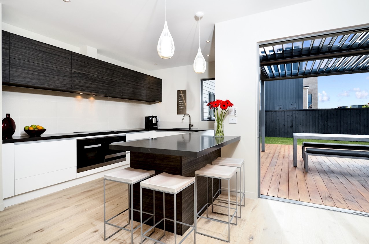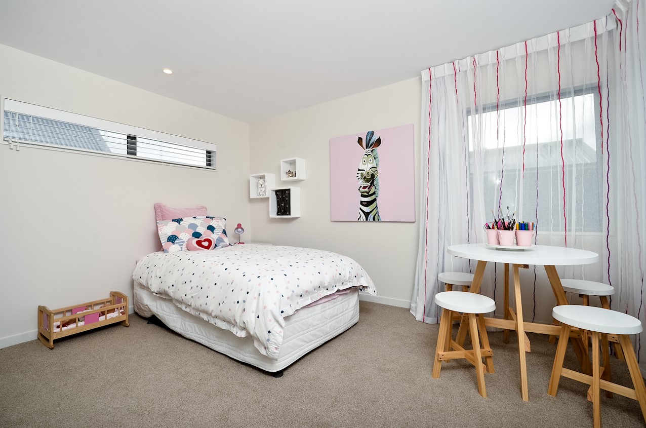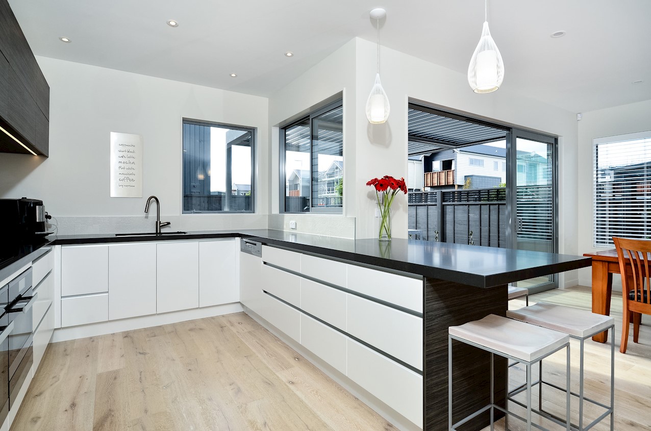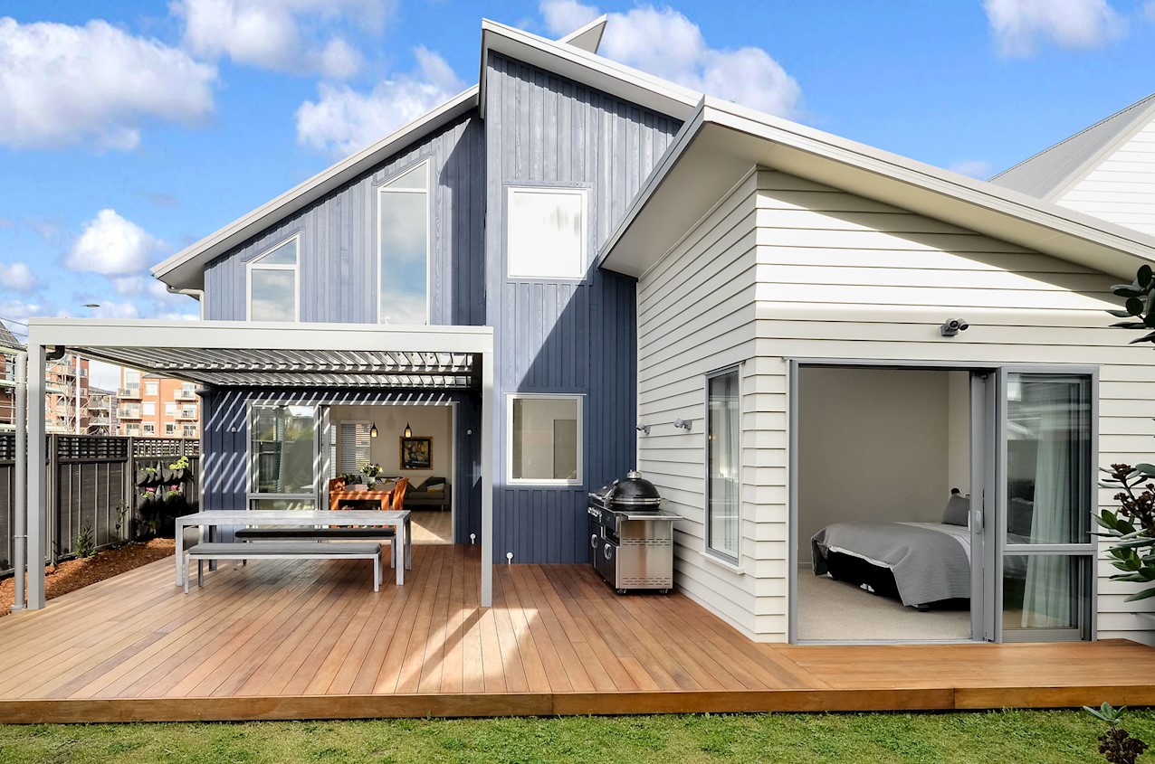 With three bedrooms, three bathrooms and three living spaces, this Hobsonville home is built for comfort and style. The 228sqm family residence boasts an airy and open environment for effortless everyday living. Lofty ceilings and elevated windows enhance the sense of space and light without compromising privacy from nearby neighbours. Perfect for relaxing or entertaining, the stylish open-plan ground floor encompasses dining, kitchen and living spaces. The living domain flows seamlessly to a generous-sized covered deck for alfresco dining and barbecues. The master bedroom is a private retreat for the heads of house and features a well-designed ensuite. It also opens to the outdoors through a glass slider. Mosaic-tile detailing is a striking feature of the three beautifully equipped bathrooms. Low-maintenance landscaping includes a lawn where the kids can play – every aspect of this well-designed abode is in harmony with family life.