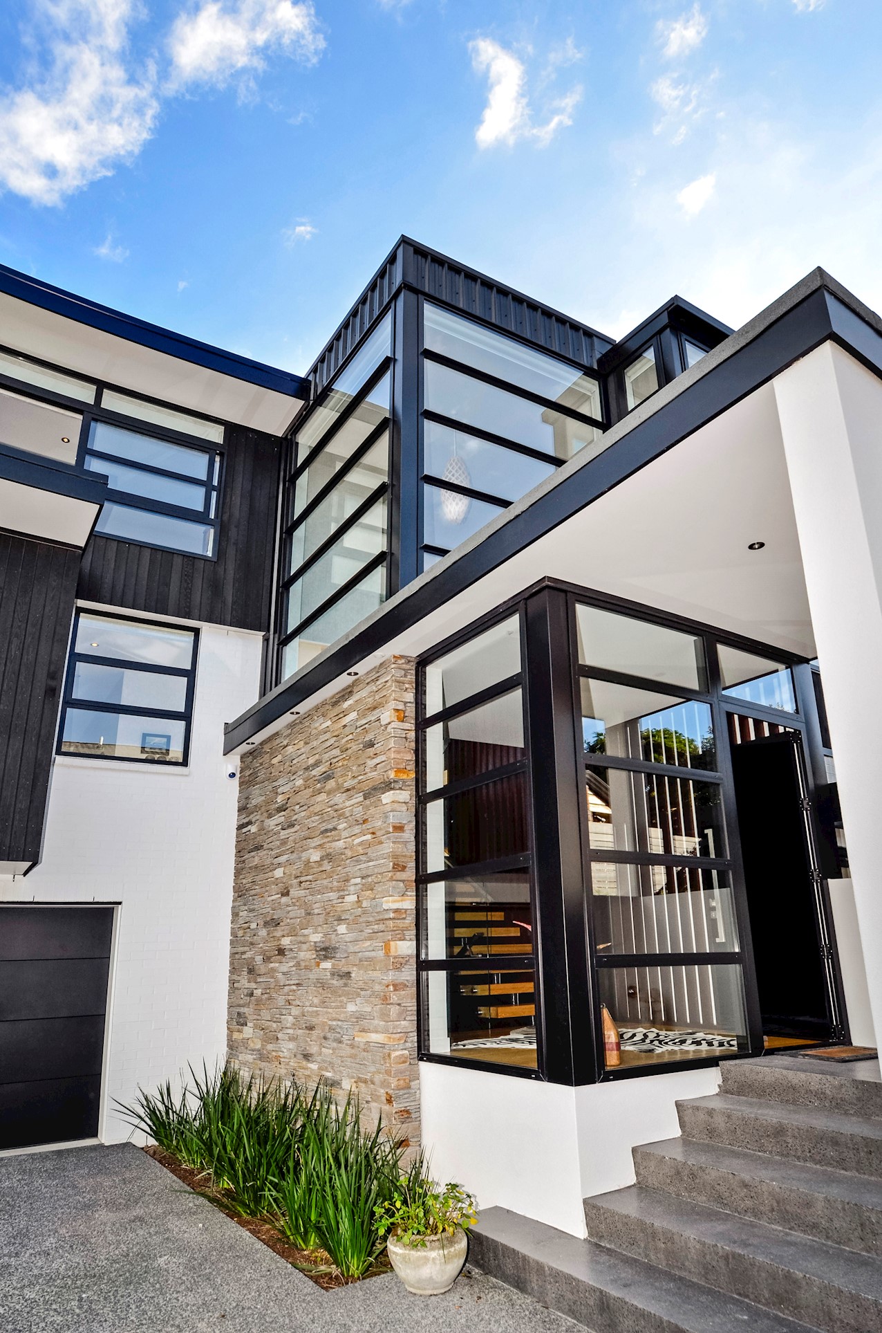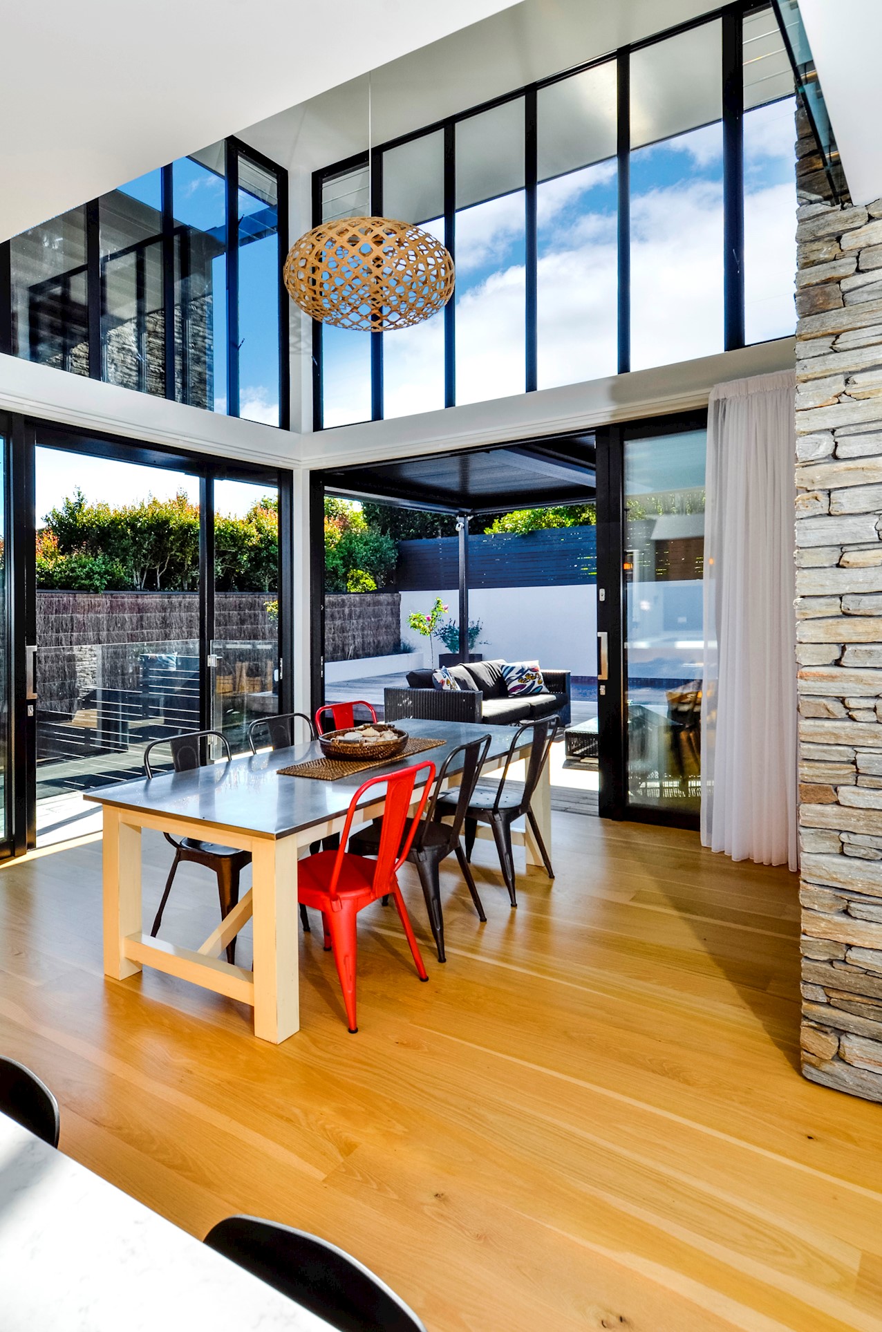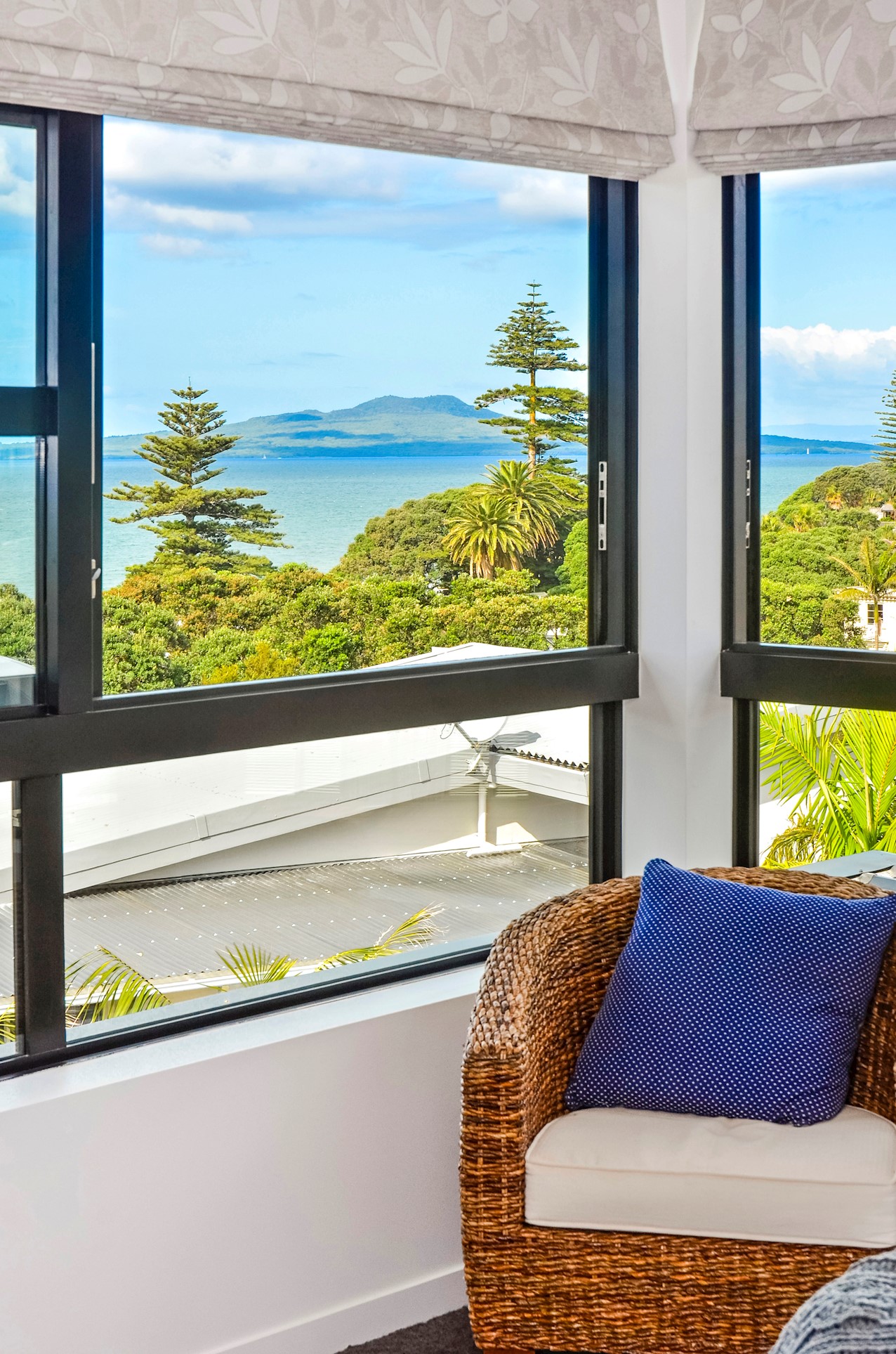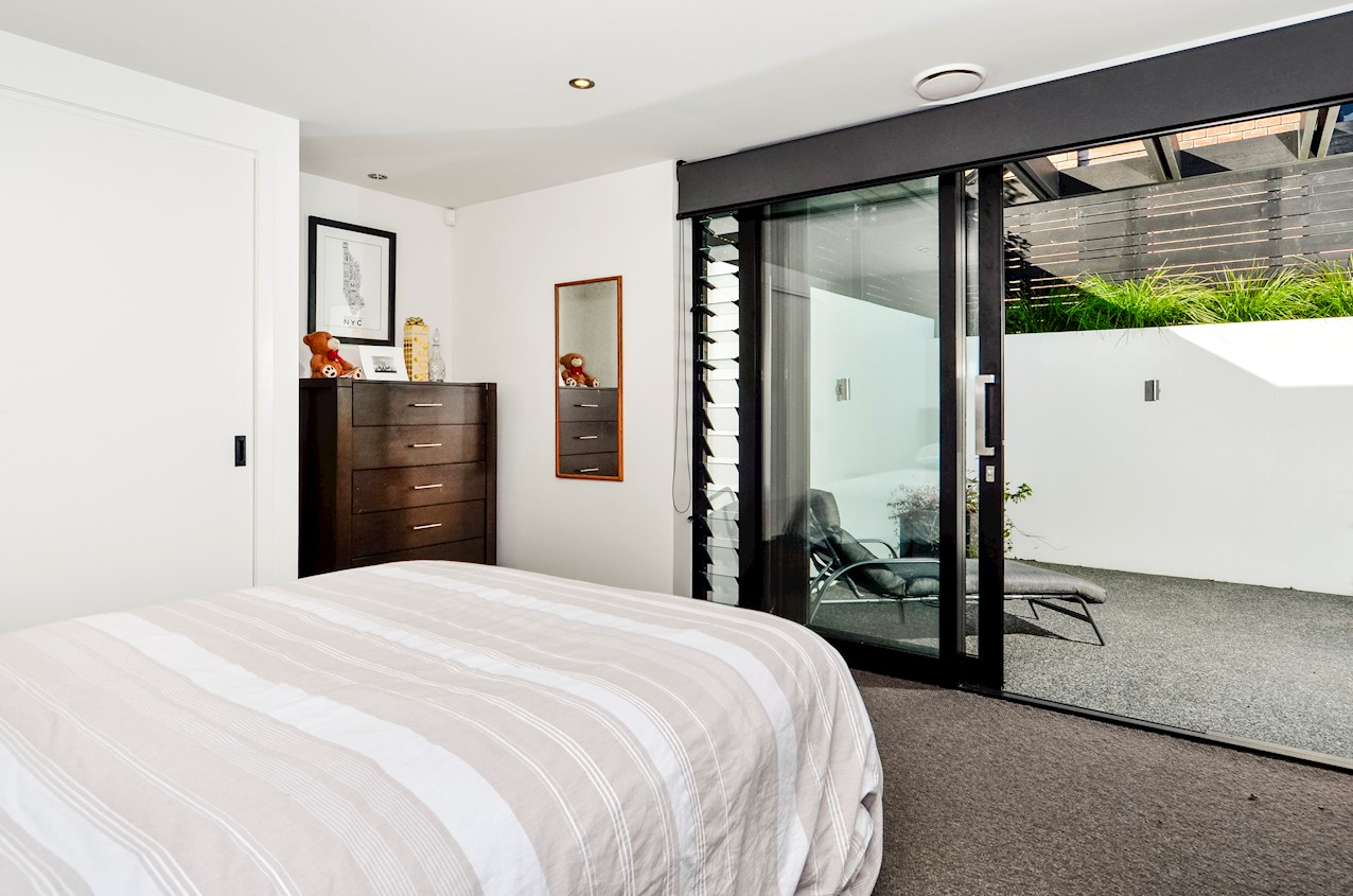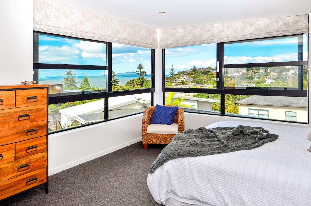 The designers of this North Shore beauty have harnessed the power of four and found the formula for luxury family living. Four bedrooms, four bathrooms and four living areas offer ample space to retreat for relaxation or to spend quality time together. Extensive floor-to-ceiling glazing enhances the home’s modern exterior, all the while soaking up sunshine and capturing sea views. A double-height ceiling sends the sense of space through the roof in the dining area, while louvred screens temper harsh rays. Beautifully designed and refined interior spaces flow effortlessly to outdoor living upstairs and down. The luxurious swimming pool offers resort-style cool and endless enjoyment on summer days. A large wall partially bisects the home, linking inside and out, upstairs and down. Set in this stone feature, you’ll find a double-sided fireplace which warms living and dining, plus an alfresco fire – great for outdoor entertaining on colder nights. This stellar home provides every modern comfort and convenience a family could dream of.