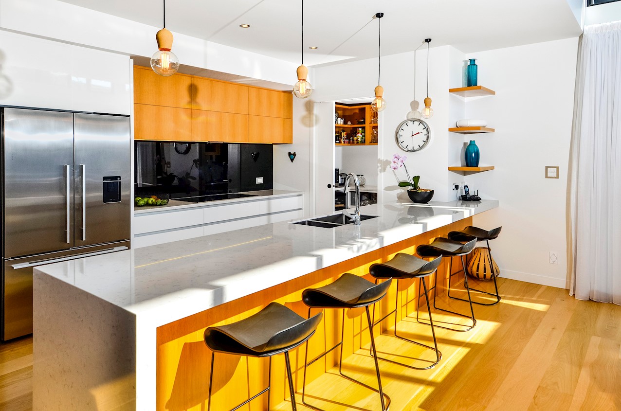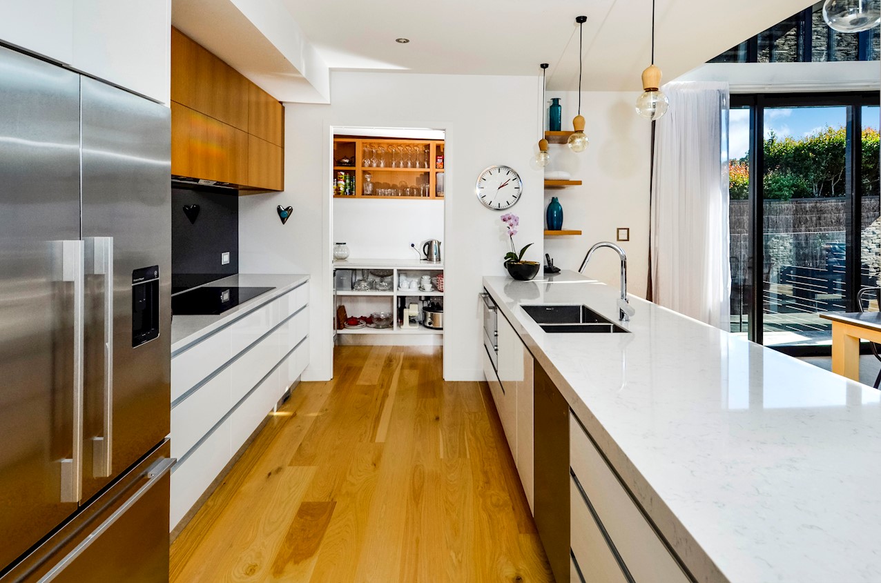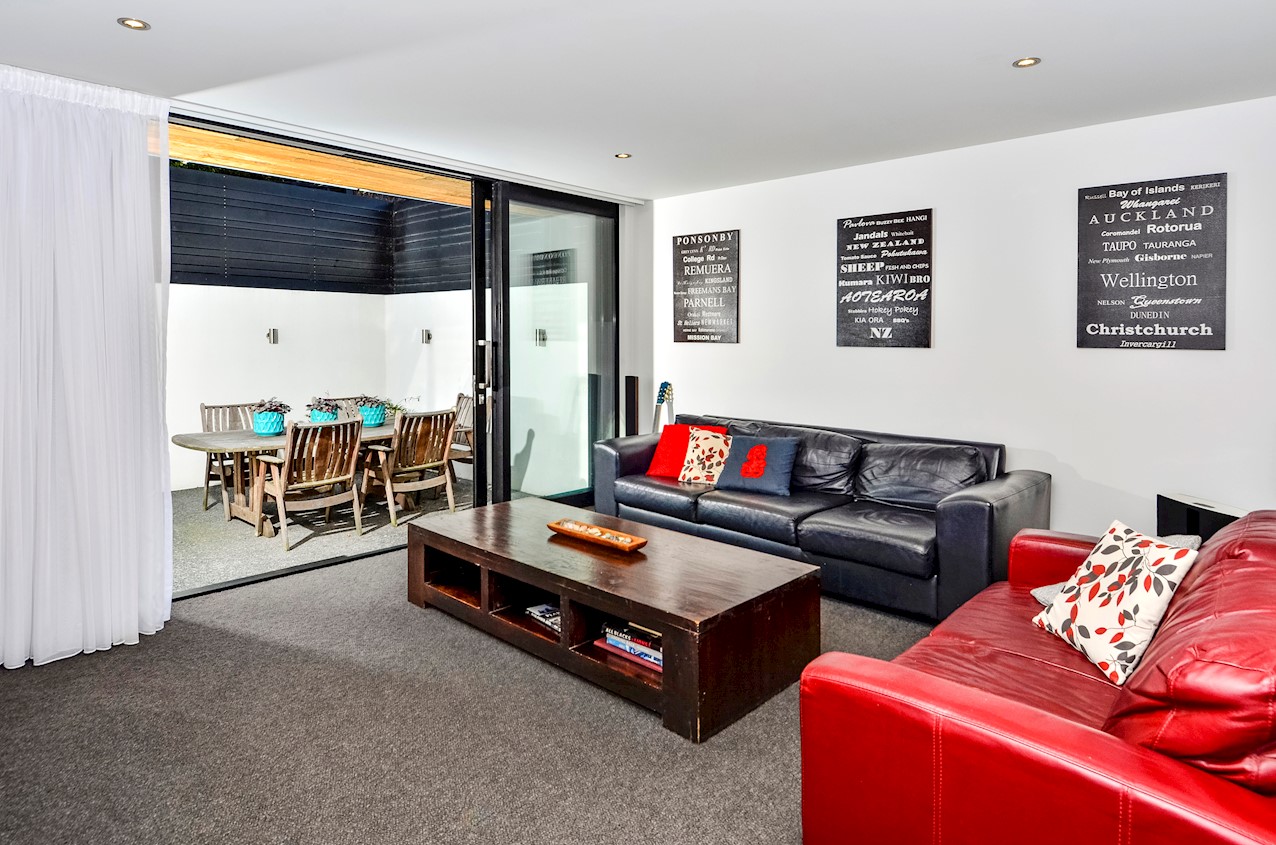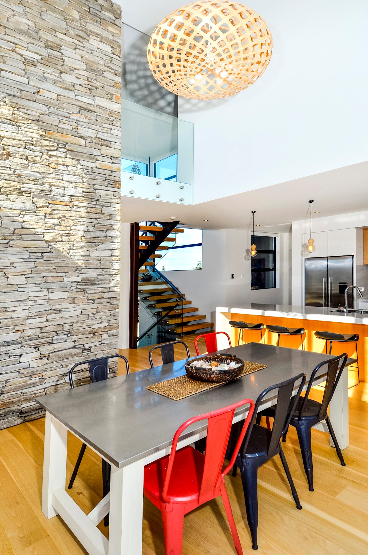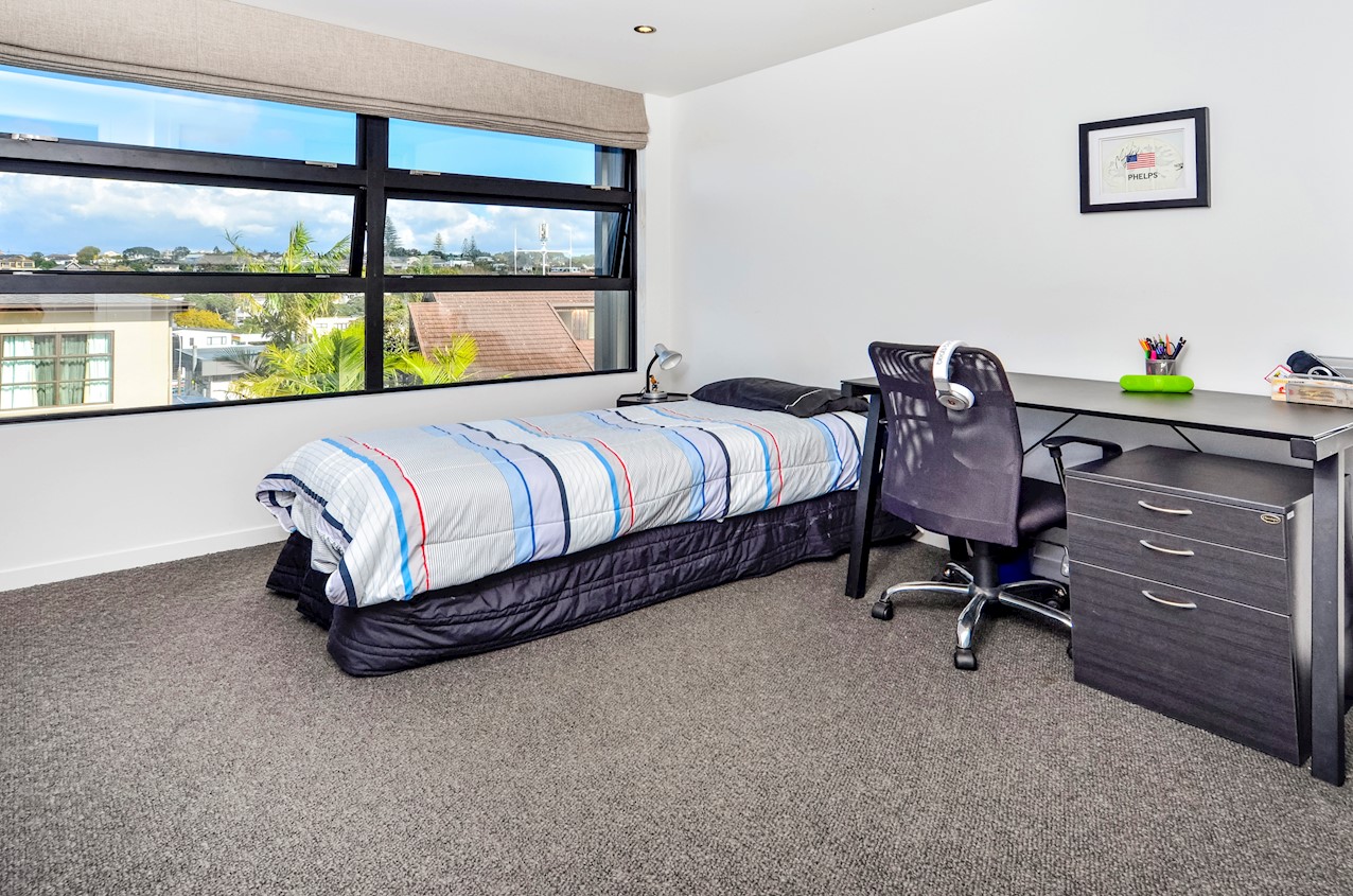 The designers of this North Shore beauty have harnessed the power of four and found the formula for luxury family living. Four bedrooms, four bathrooms and four living areas offer ample space to retreat for relaxation or to spend quality time together. Extensive floor-to-ceiling glazing enhances the home’s modern exterior, all the while soaking up sunshine and capturing sea views. A double-height ceiling sends the sense of space through the roof in the dining area, while louvred screens temper harsh rays. Beautifully designed and refined interior spaces flow effortlessly to outdoor living upstairs and down. The luxurious swimming pool offers resort-style cool and endless enjoyment on summer days. A large wall partially bisects the home, linking inside and out, upstairs and down. Set in this stone feature, you’ll find a double-sided fireplace which warms living and dining, plus an alfresco fire – great for outdoor entertaining on colder nights. This stellar home provides every modern comfort and convenience a family could dream of.