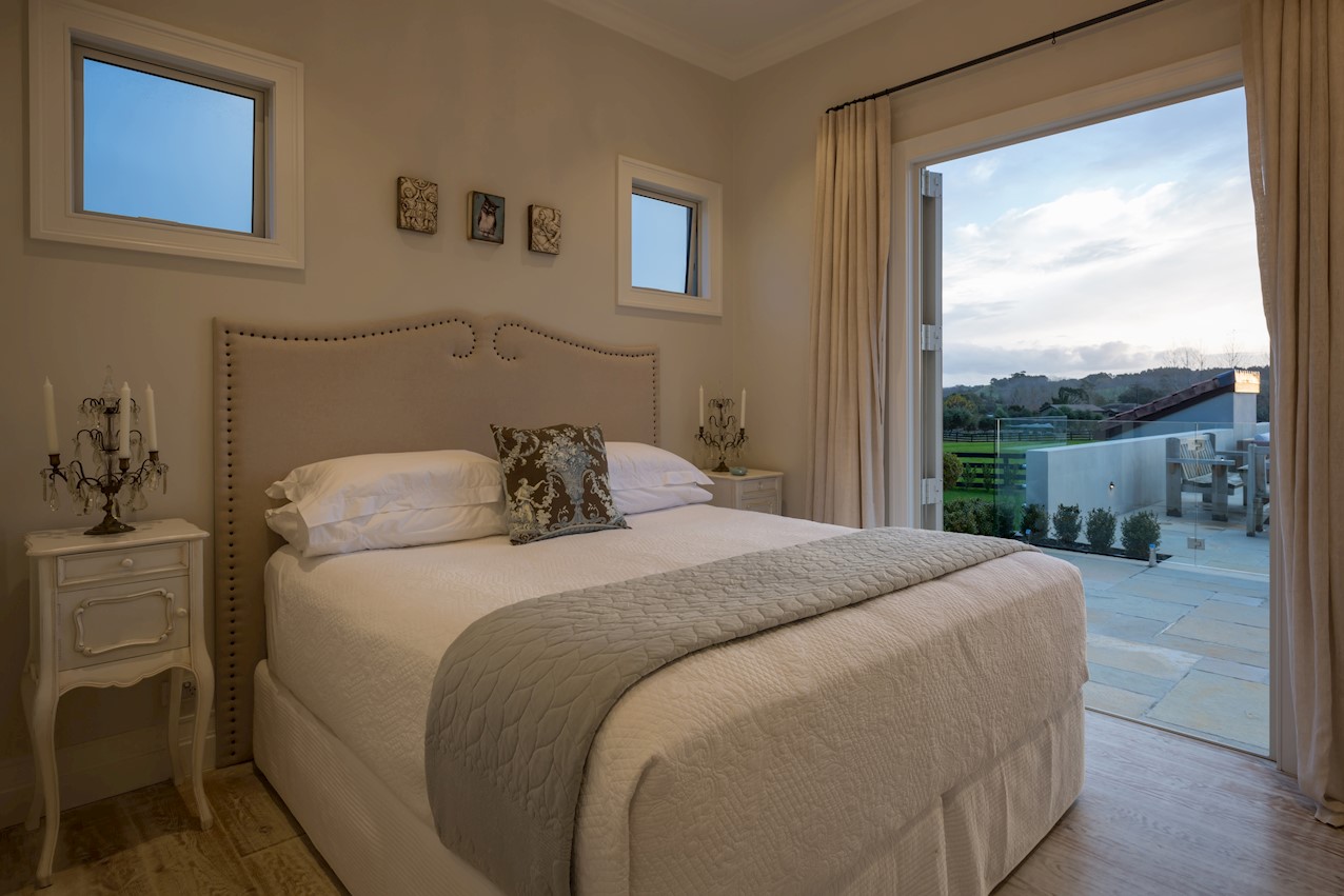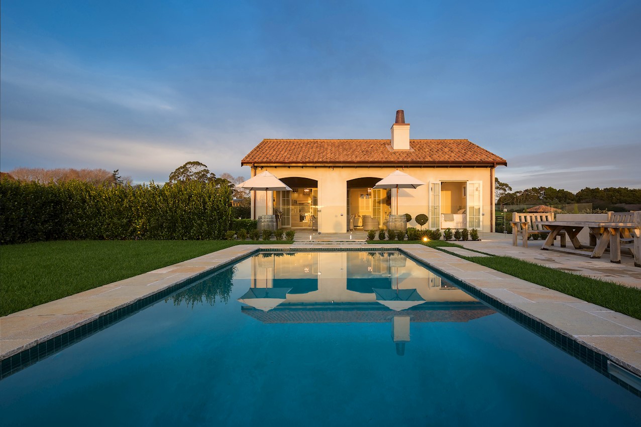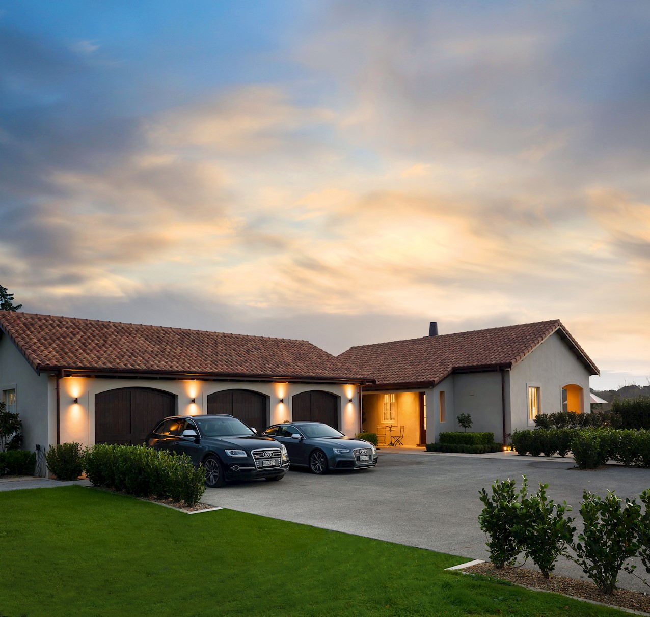 This charming three-bedroom 150sqm home is the epitome of Mediterranean-style in Dairy Flat. A creamy palette sits well under tiled rooftops. Three-car garaging appeals to the modern motorist. Inside, the open-plan kitchen-dining-living space welcomes with open arms and traditional elegance. Classic moulded cabinetry conceals stacks of storage in the cooking area. State-of-the-art appliances are seamlessly integrated. The European oak floors have been painted white, sanded and waxed for effect. Positioned off the open plan, the loggia is ideal for entertaining in any weather. A fireplace and wine fridge ensure warmth and top-ups are close at hand. The space offers a lovely transition between interior and exterior living. Soak in the swimming pool, relax on the poolside patio or sit and sip coffee in the separate landscaped courtyard – so many options. The master bedroom is well connected to the outdoors. Its fully tiled ensuite features double basins and perfectly complements the second bathroom.