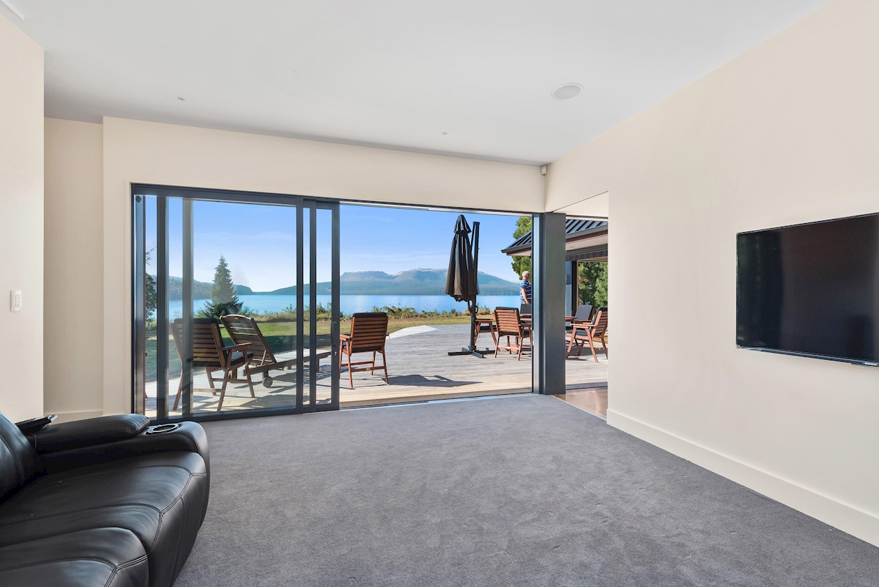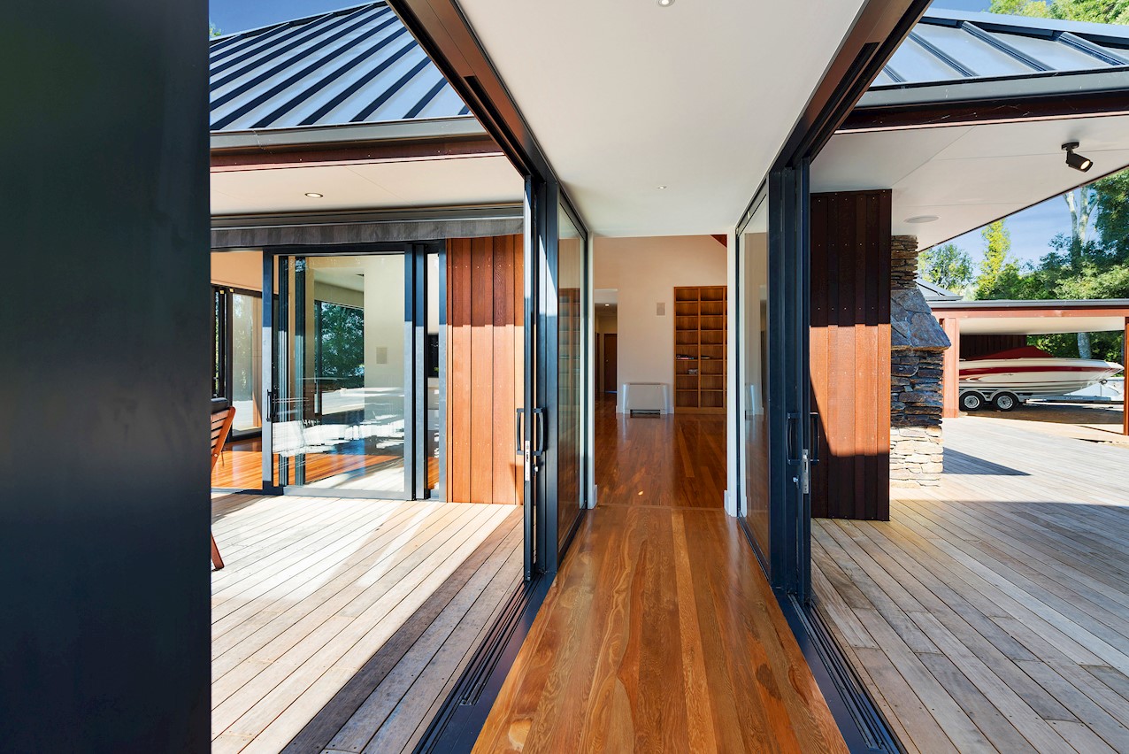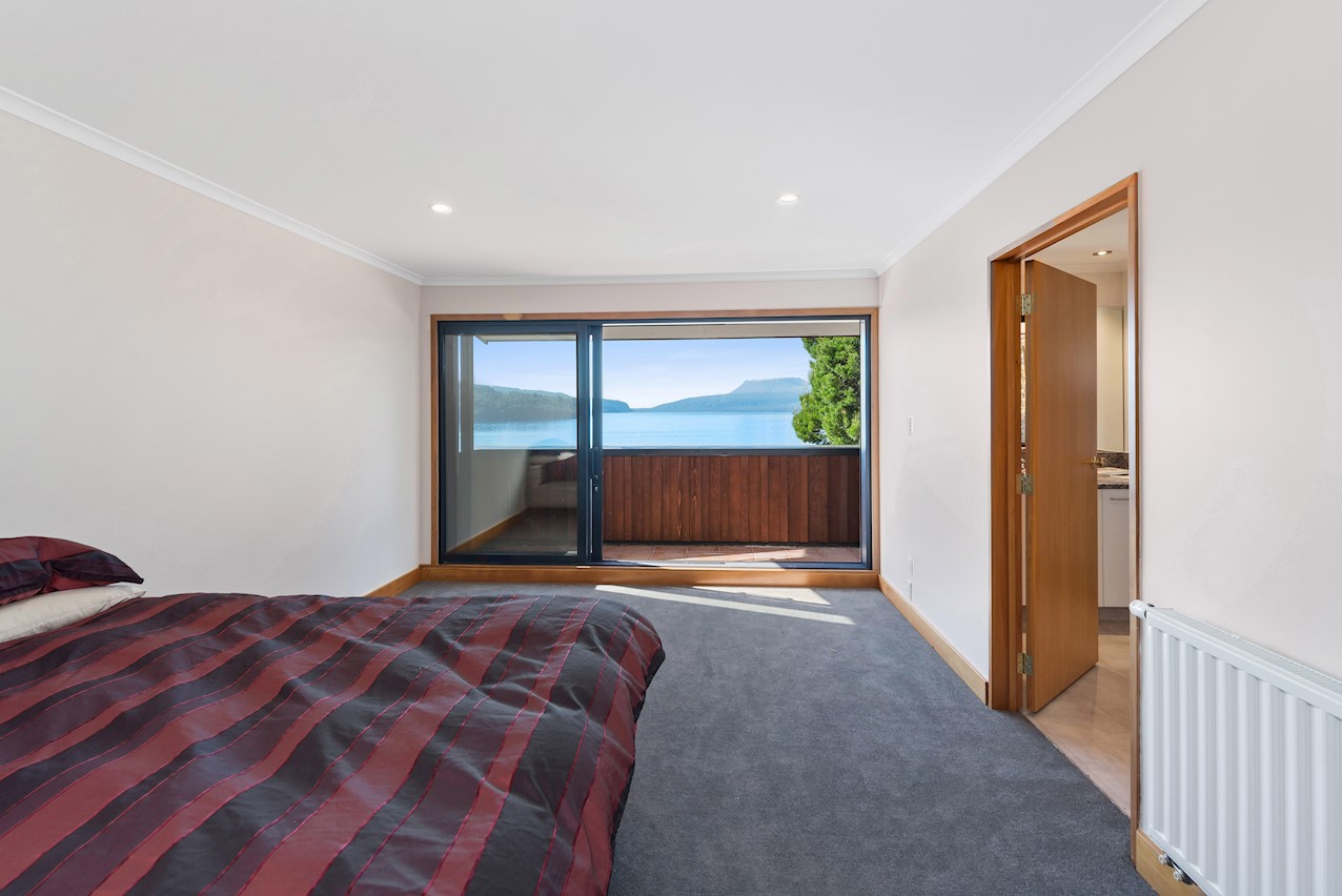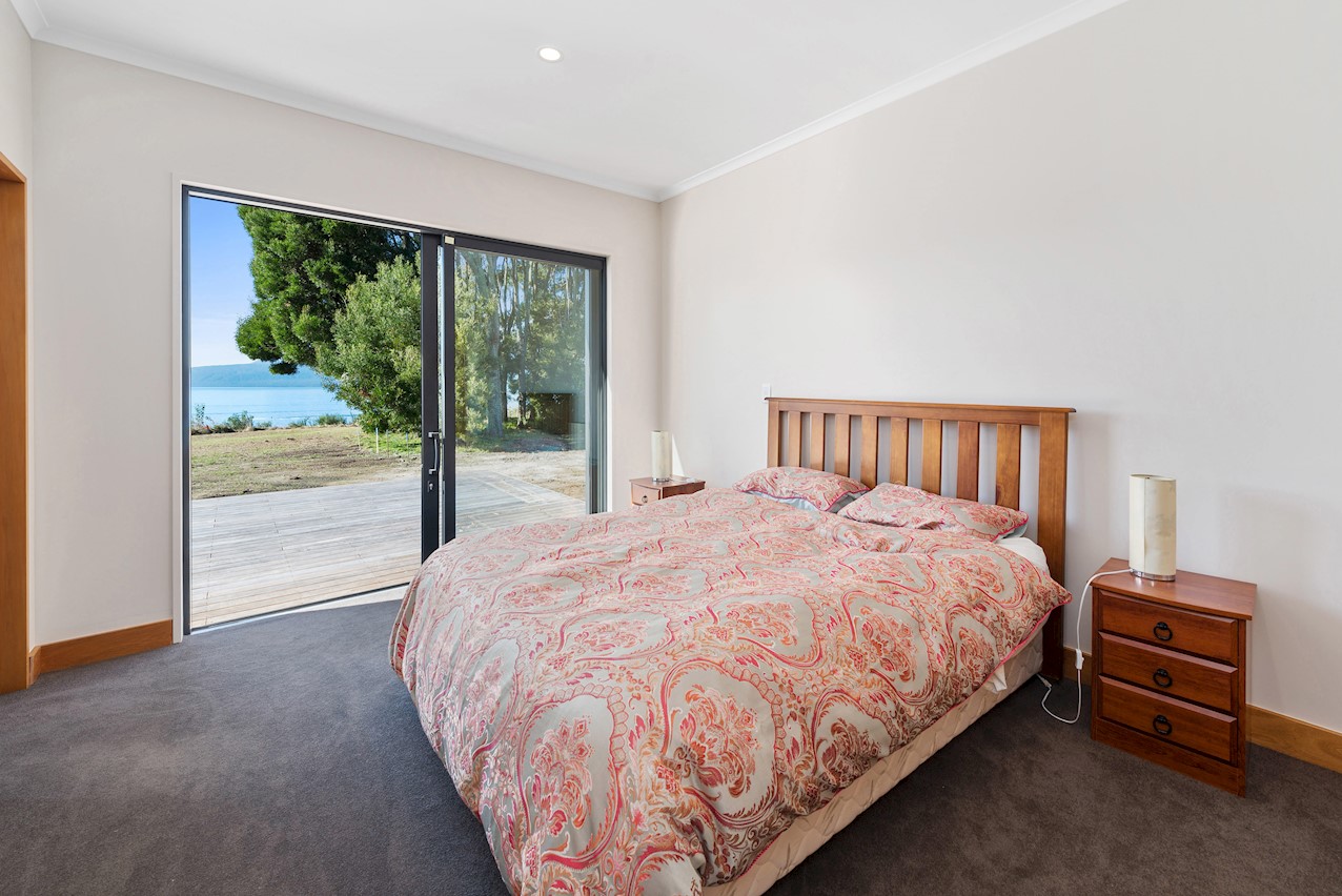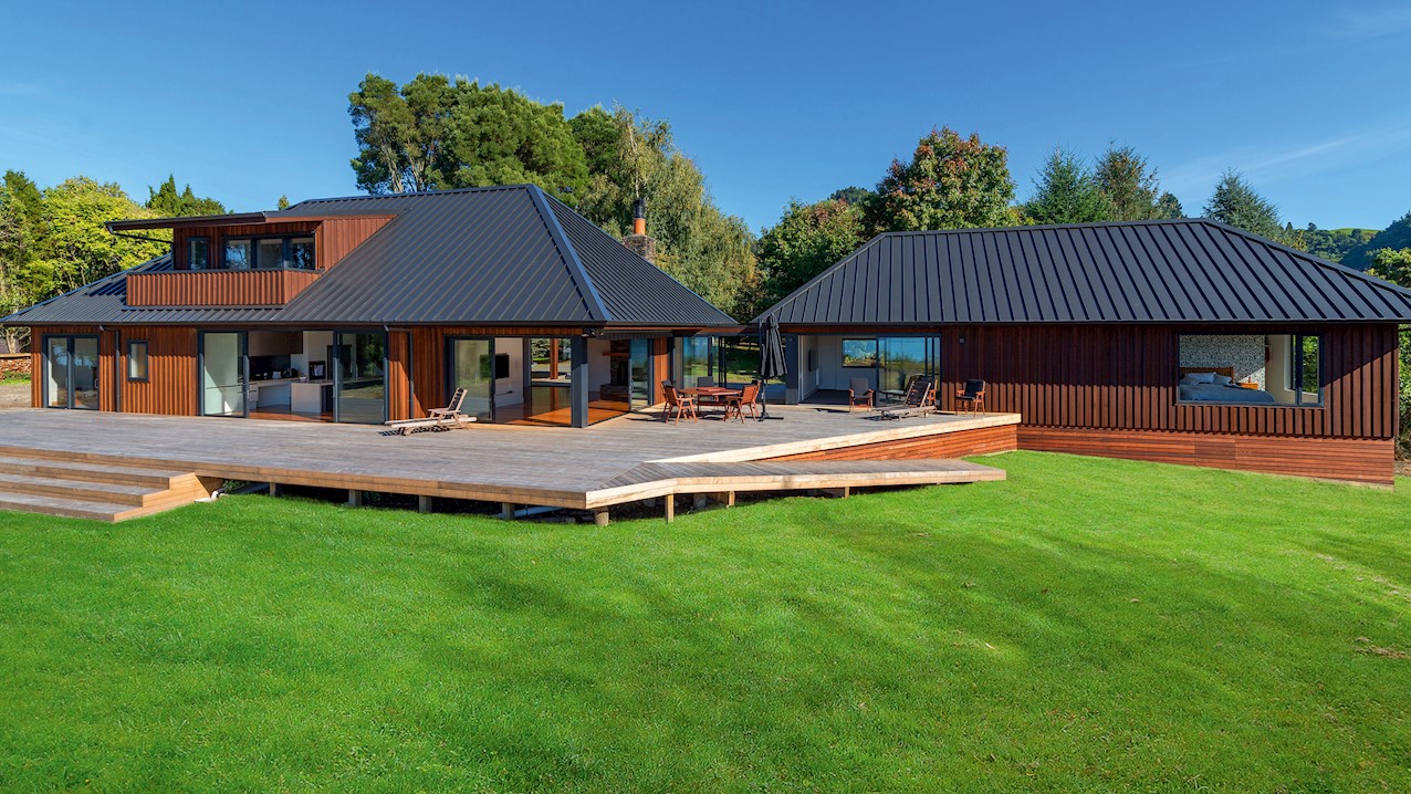 Like many of us, this recently reinvigorated Rotorua retreat would rather forget the 90s. And by the looks of it, it has. No expense has been spared in this makeover, which has transformed the Tarawera residence into the ultimate lake house – or should we say houses? Two spacious structures are delicately linked by the addition of a glass ‘bridge’, which frames lake and mountain views. It also allows a look-through view from the sheltered west deck. The wide-open interior exudes timeless style while being superbly functional for wheelchair users. The timber feature ceiling, floating high above warming wood floors in the open-plan area, is simply breathtaking. If you can tear your eyes off it long enough, you’ll notice the enviable lake views through large swathes of glass. It’s such a relaxing sight from the entertainer’s kitchen. With four bedrooms, four bathrooms and two living areas, there’s lots of space for guests. Huge decks set the scene for alfresco affairs night and day. The upstairs bedroom enjoys it own private balcony.