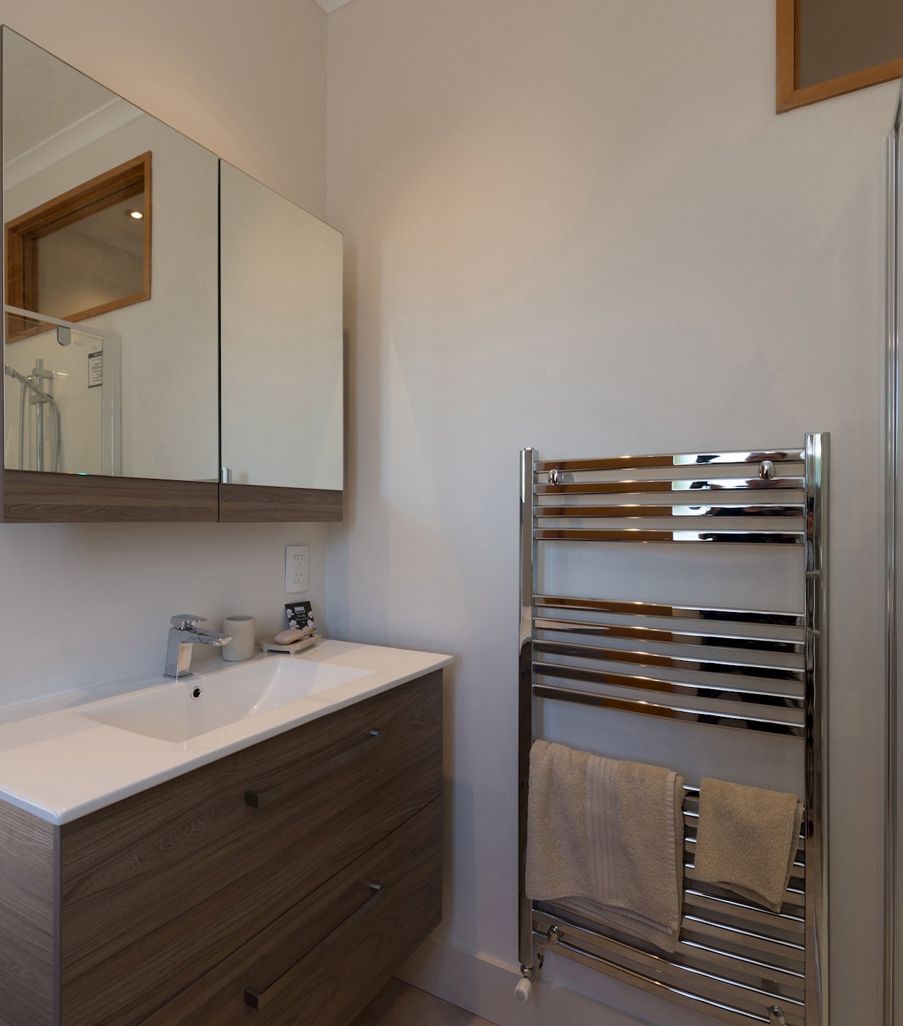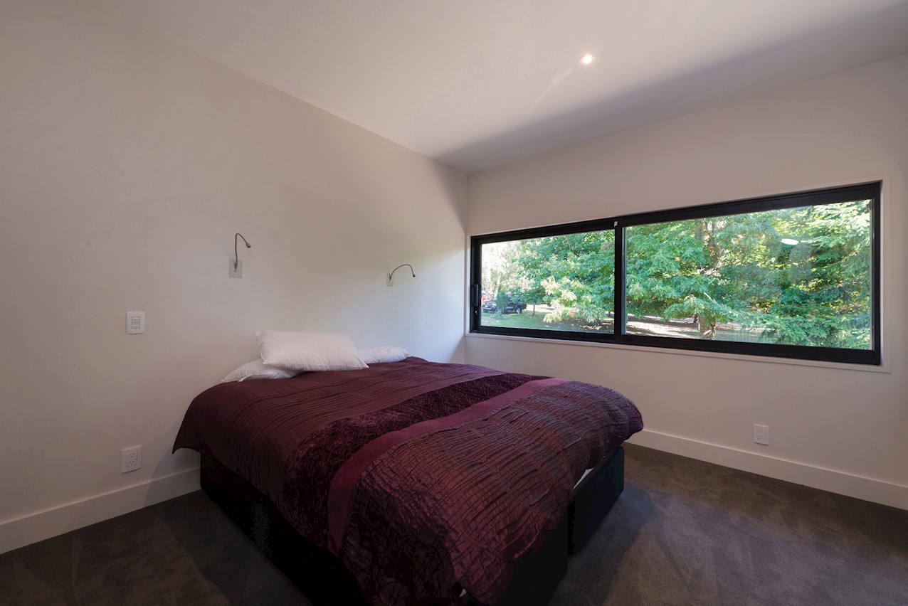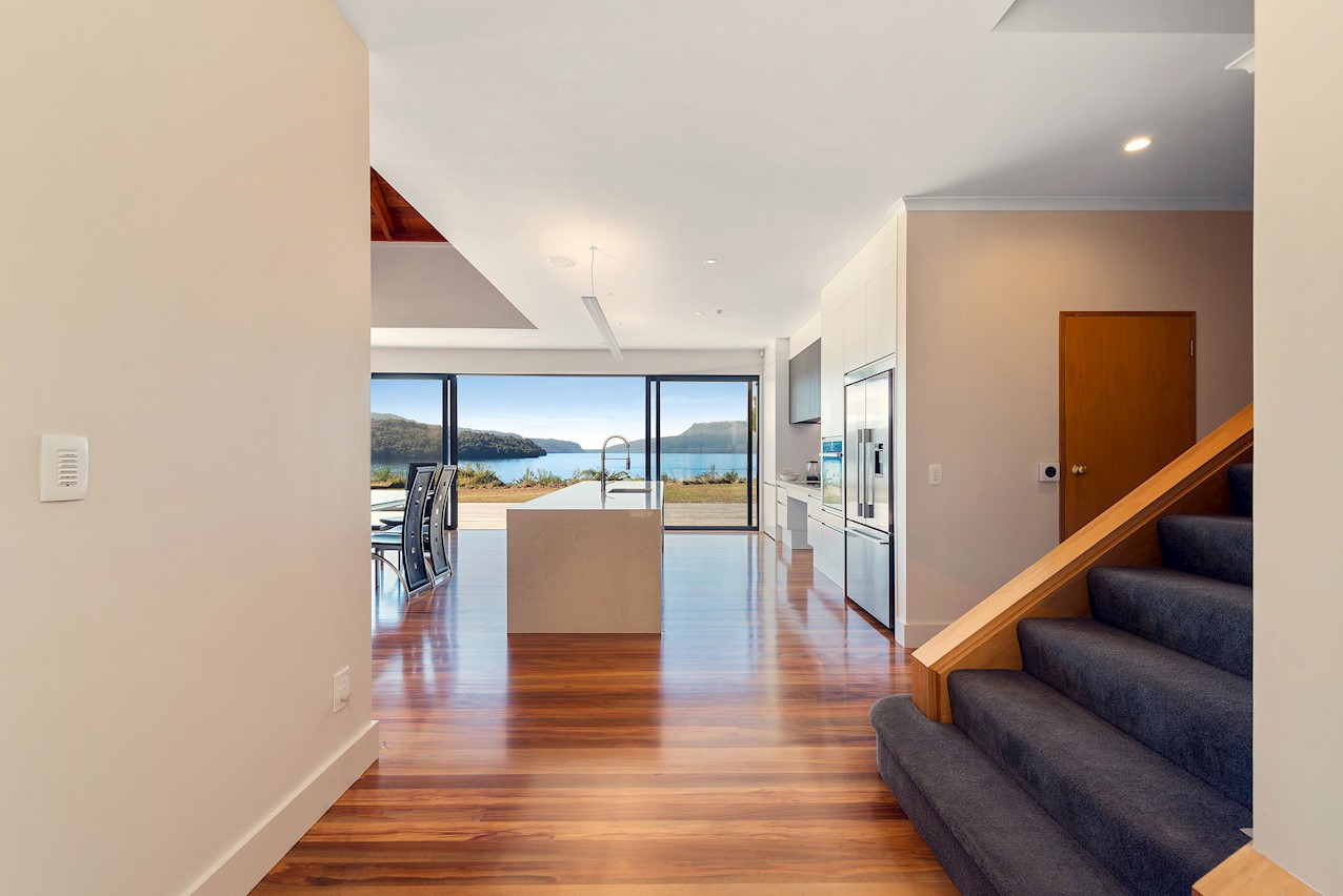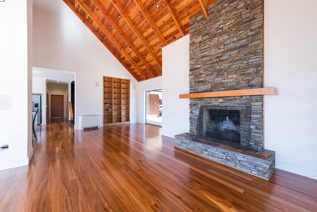 Like many of us, this recently reinvigorated Rotorua retreat would rather forget the 90s. And by the looks of it, it has. No expense has been spared in this makeover, which has transformed the Tarawera residence into the ultimate lake house – or should we say houses? Two spacious structures are delicately linked by the addition of a glass ‘bridge’, which frames lake and mountain views. It also allows a look-through view from the sheltered west deck. The wide-open interior exudes timeless style while being superbly functional for wheelchair users. The timber feature ceiling, floating high above warming wood floors in the open-plan area, is simply breathtaking. If you can tear your eyes off it long enough, you’ll notice the enviable lake views through large swathes of glass. It’s such a relaxing sight from the entertainer’s kitchen. With four bedrooms, four bathrooms and two living areas, there’s lots of space for guests. Huge decks set the scene for alfresco affairs night and day. The upstairs bedroom enjoys it own private balcony.