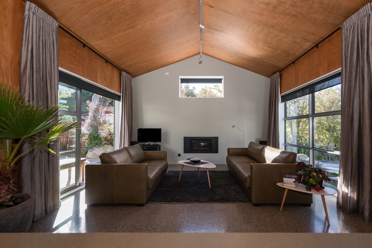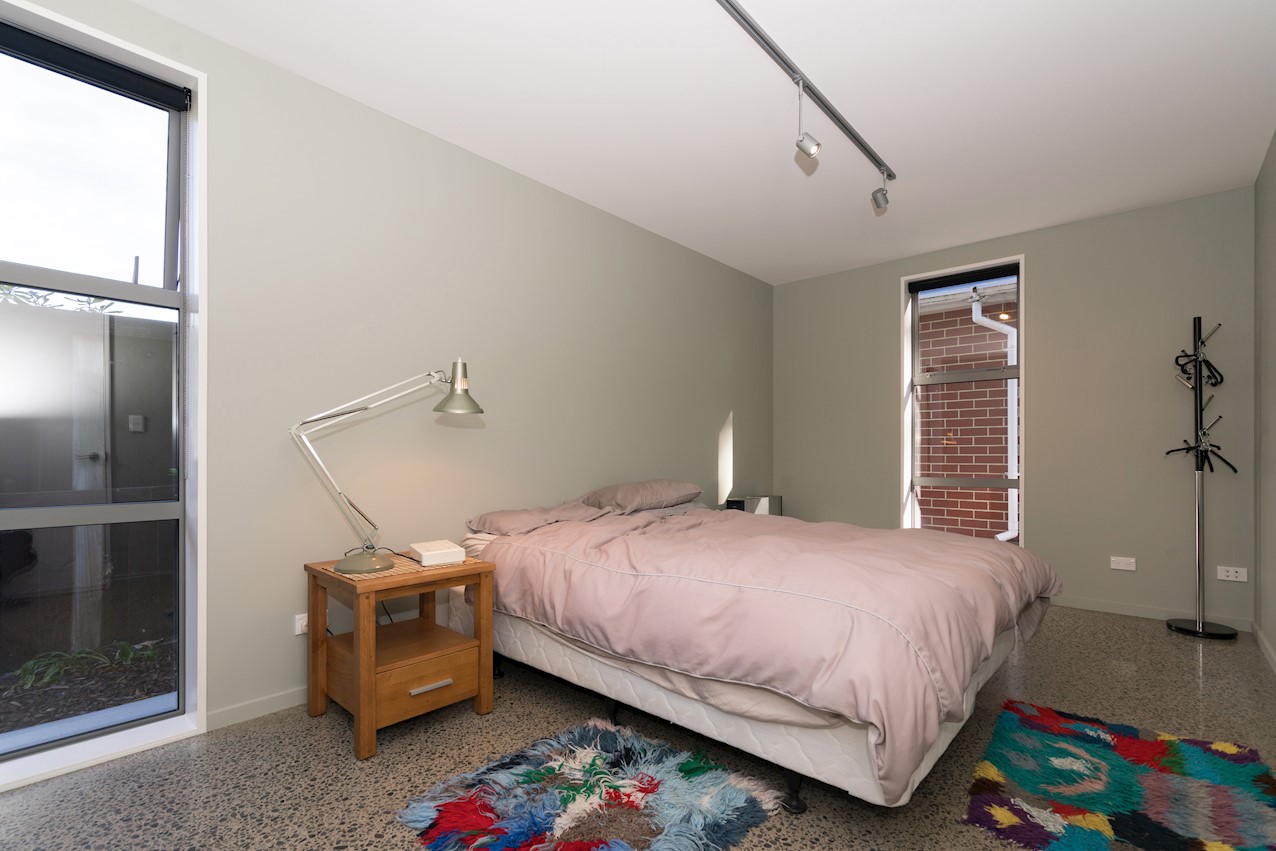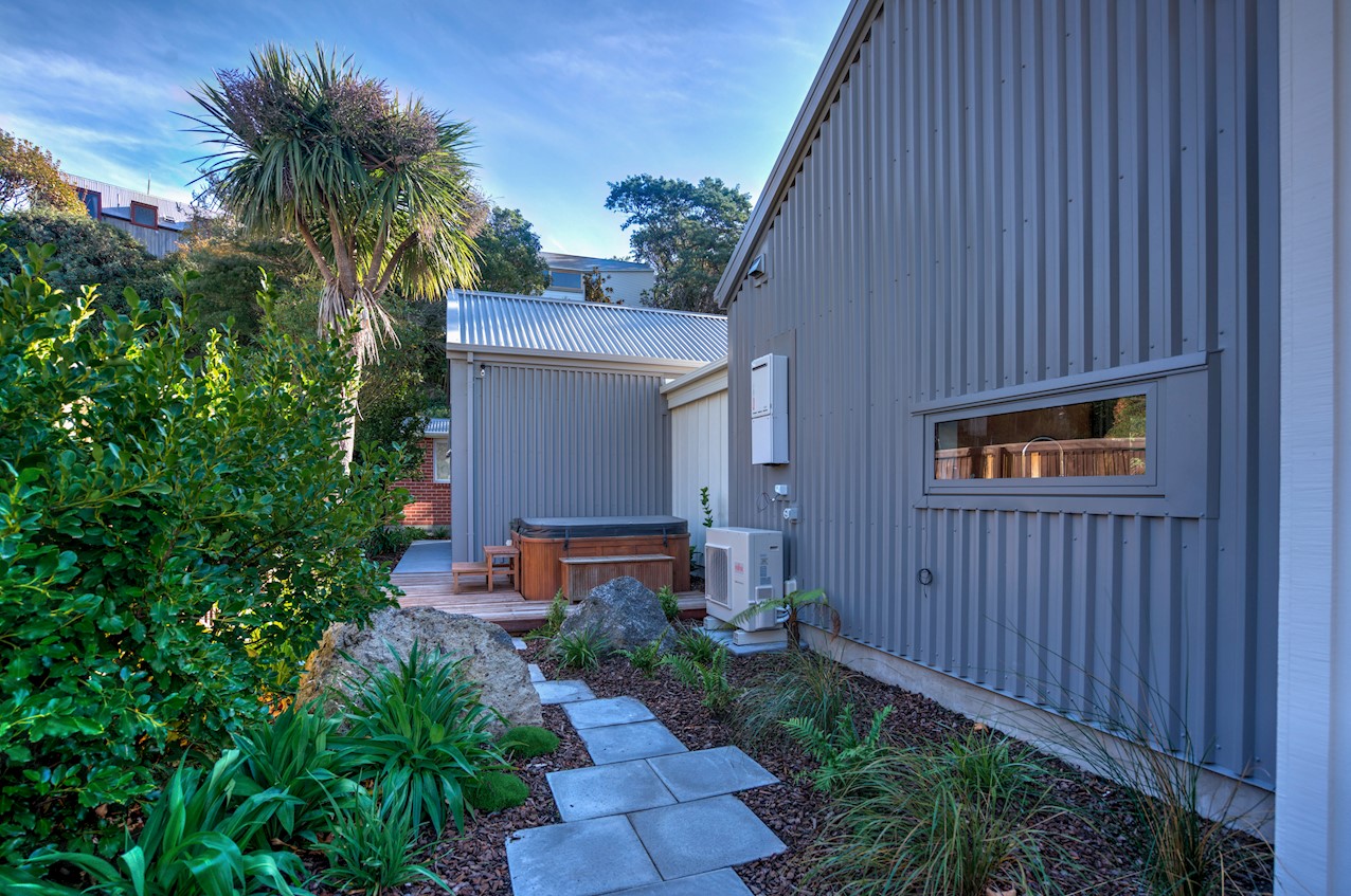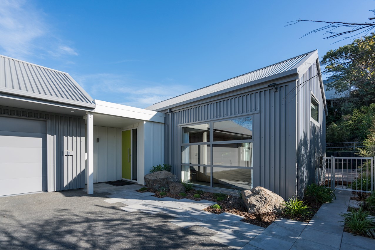 The eye-catching cladding of this Hillsborough home is reminiscent of industrial shipping containers, but the form suggests a classic farm building. Inside, it’s contemporary domestic bliss with a large living space under vaulted ceilings. A bulkhead creates an intimate cooking experience in the entertainer’s kitchen. Large swathes of timber enhance the cocoon feel of the open plan. Floor-to-ceiling drapes up the comfort factor. Polished concrete floors are practical and pleasing to the senses. They also offer thermal mass for solar gain. The home centres around a large alfresco living space. This is a fantastic spot to soak up the sunshine while enjoying time with friends. Decking sweeps around to offer indoor-outdoor flow off the master bedroom. This room features a walk-through wardrobe which connects to a private ensuite. A further bedroom and a main bathroom offer plenty of great options on 165sqm. An office, laundry, double garage and spa pool take care of business and leisure.