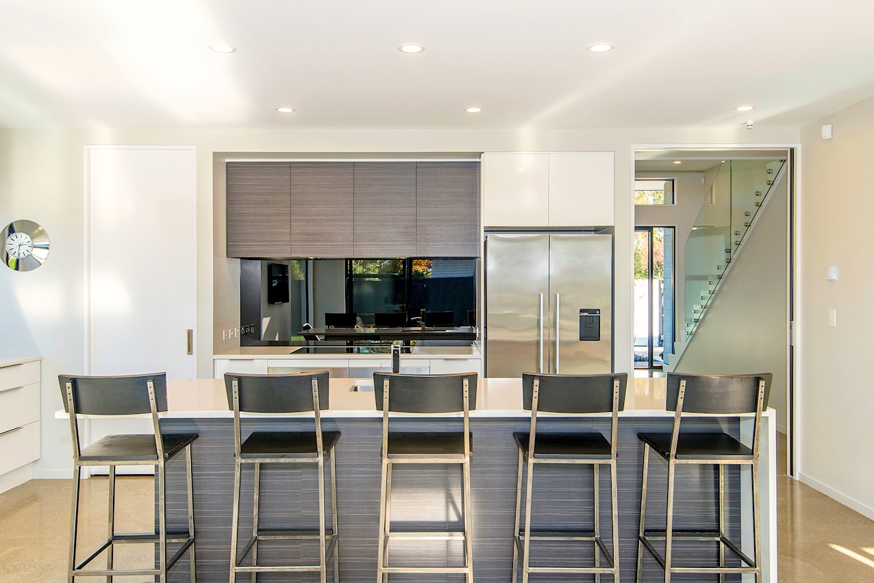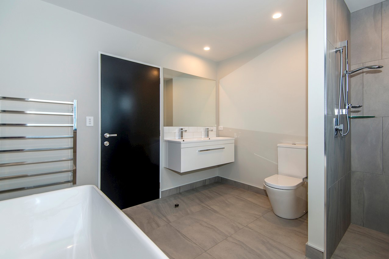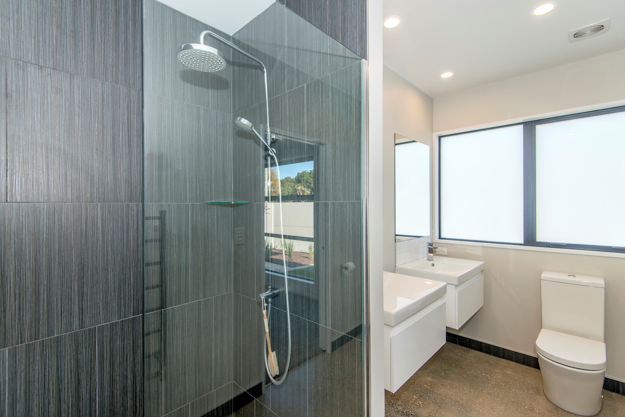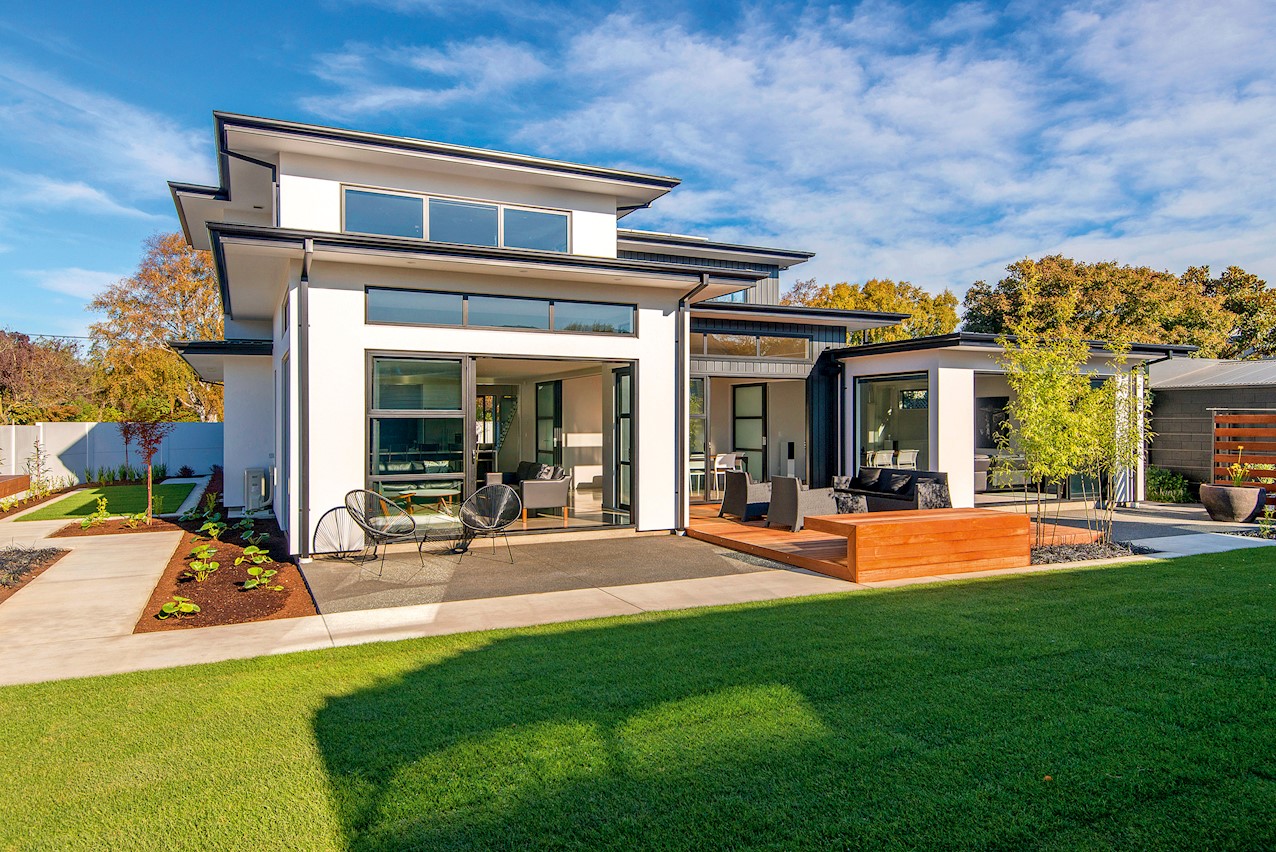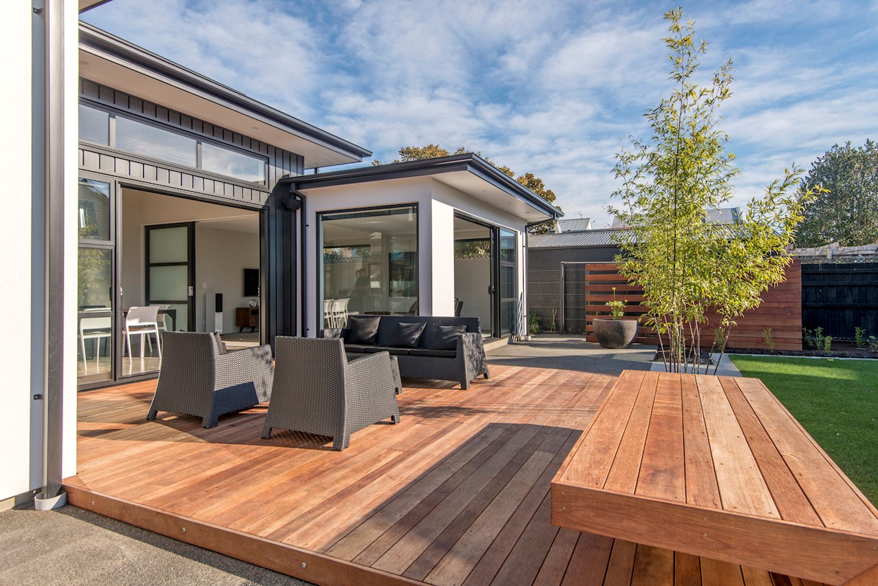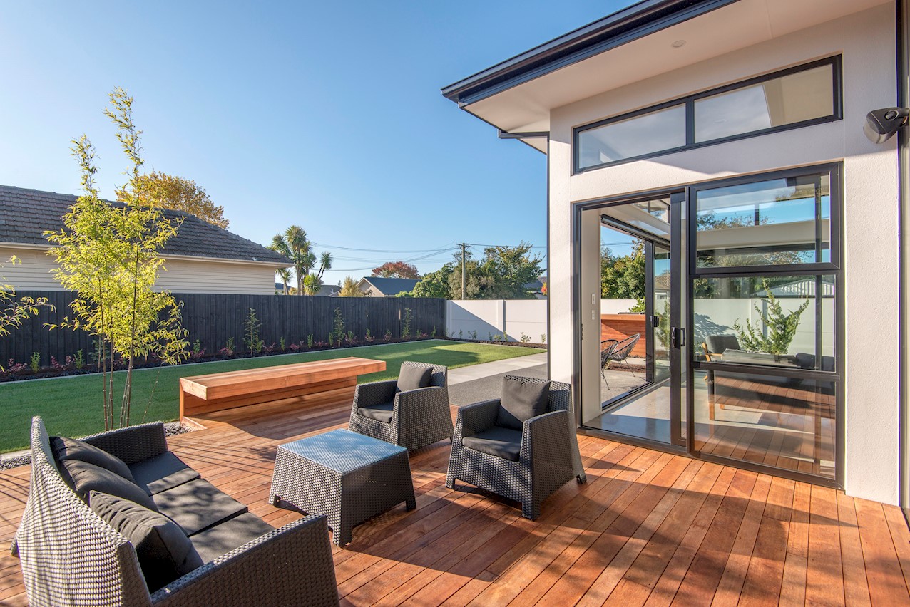 This modern four-bedroom family home is an entertainer’s dream in Strowan. The living room and lounge are connected via the dining room. Tall windows and clerestories draw in natural light throughout all four seasons. Sleek polished concrete floors bask in all-day rays. The heat is radiated back into the home late into the evening. In summer, open the doors to create an amazing area for barbecues and entertainment. Alternatively, stay in and close the New Yorker stackers to create separate family friendly spaces. Kids can entertain themselves on one side, while parents enjoy some well-deserved peace and quiet or time with friends. The home’s entrance welcomes with style and open arms. A modern light shade illuminates the area which leads to the second storey. The large landing functions as a third lounge to accommodate growing children and their friends. Two bathrooms are finished in style with classic fittings and lines. In-slab heating and solar hot water are great features of this fantastic 326sqm home.