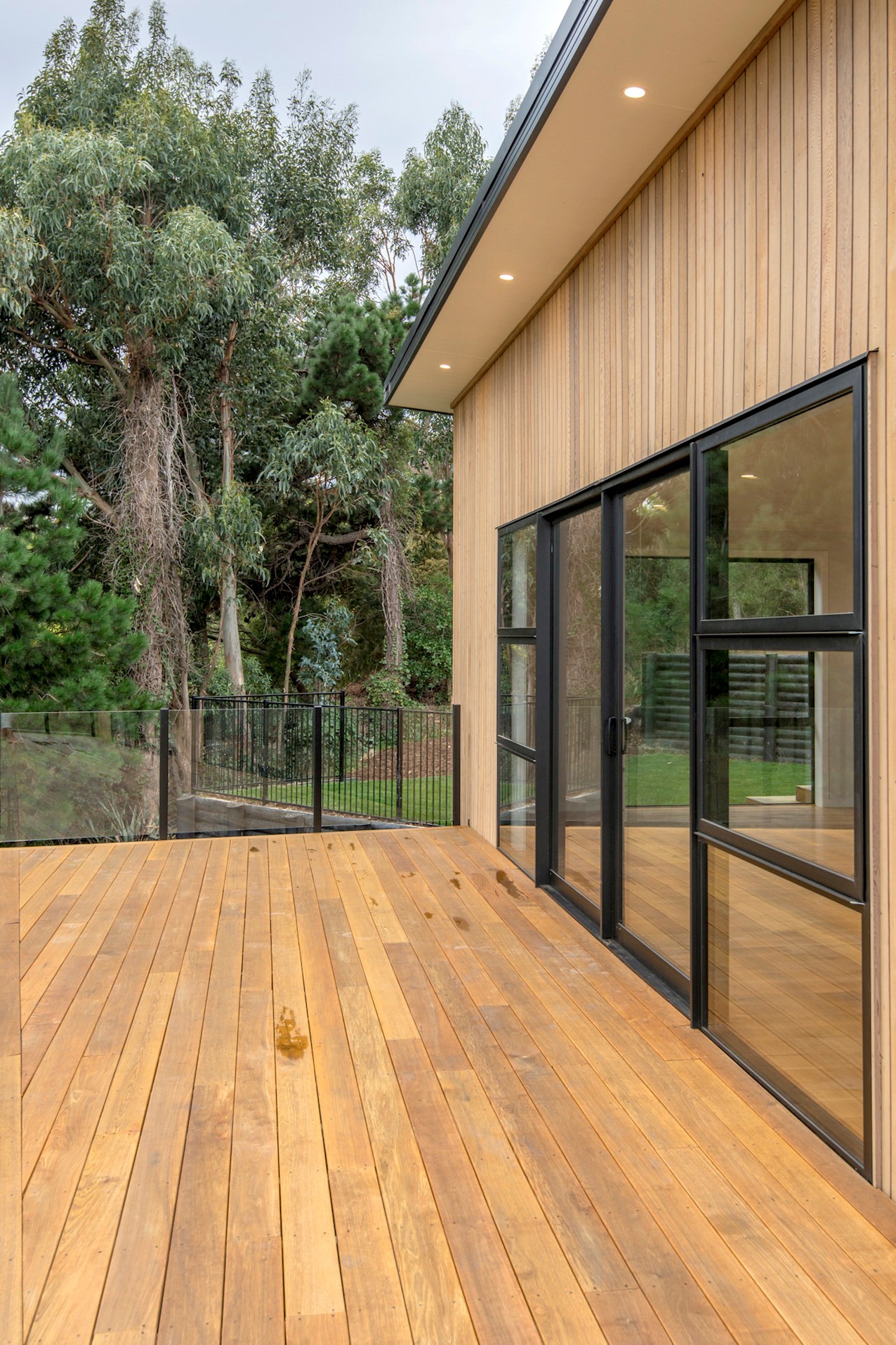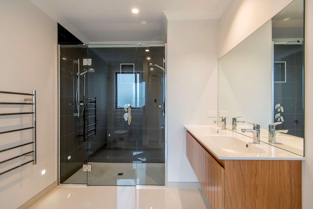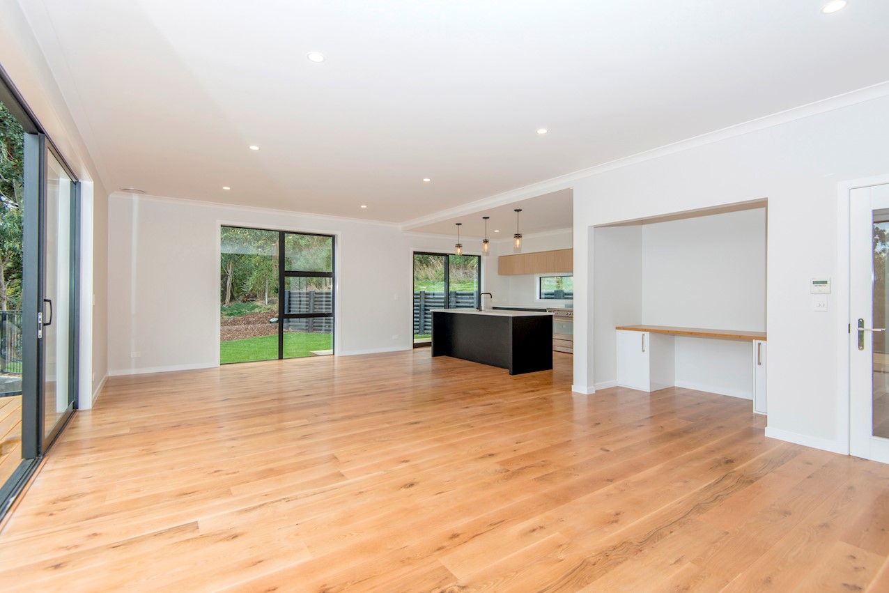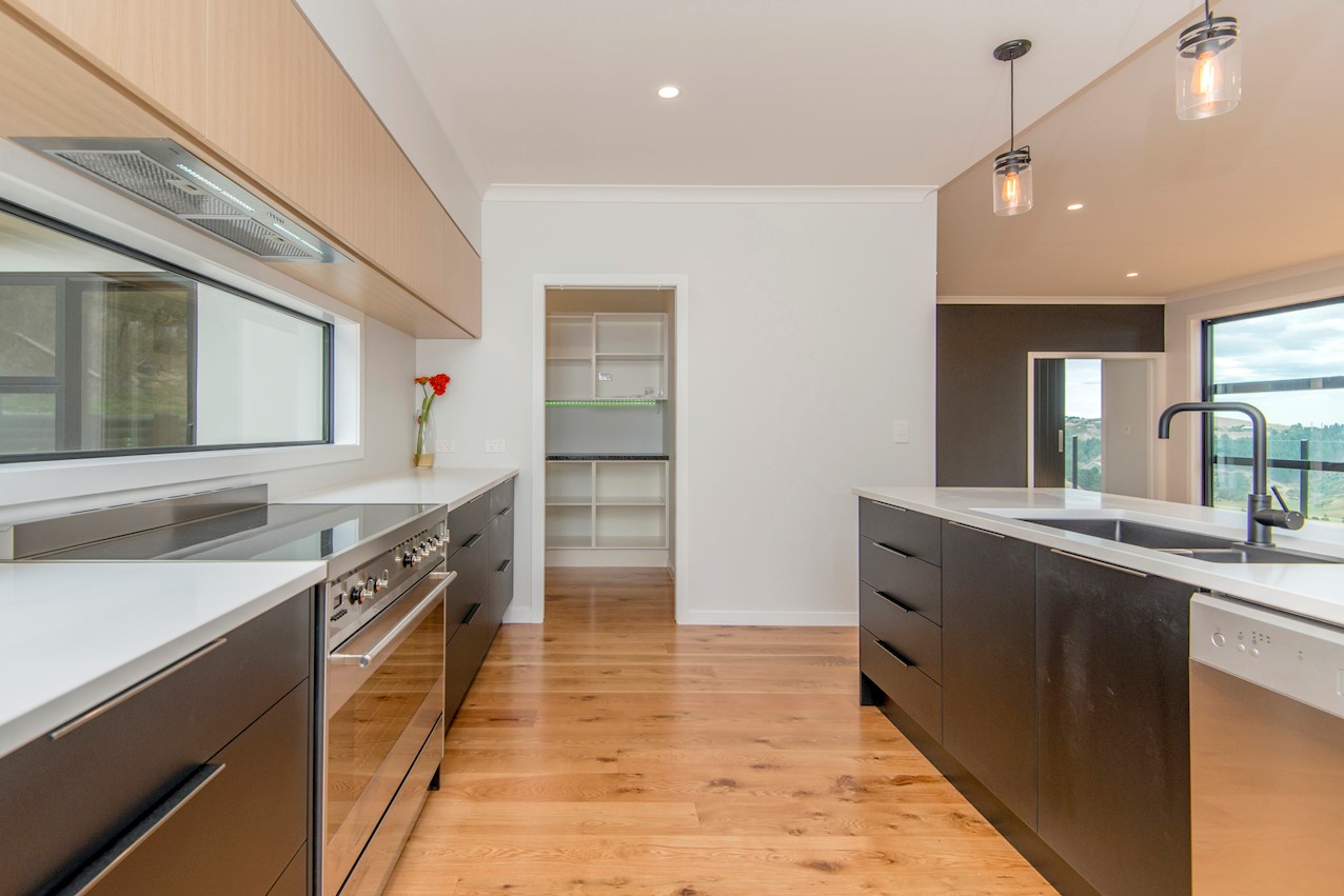 Set high in the Cashmere Hills above Christchurch, this five-bedroom, two-storey home is a stunner. Mature trees and views to the Southern Alps create a wonderful backdrop for modern living. Stepped into the hillside and with split-level garden terracing, the steep section lives up to its potential. Cedar and stone cladding create striking appeal, enhanced with black and white accents. Internal materials echo the exterior, with light oak timber floors, white walls, stone benchtops and a sleek black kitchen with black tapware and sink. High ceilings lend the living spaces an airy feel and large glass sliders and a balcony maximise the view. The kitchen flows out to a large sun-soaked deck for alfresco dining and entertaining. Two bedrooms open onto the rear deck, while the master enjoys views to the Alps. The ensuite features a double sink and shower with sleek black tiling. On the ground floor, a secluded guest suite overlooks the lower garden terrace to the outdoors. There’s no shortage of views to please the eye.