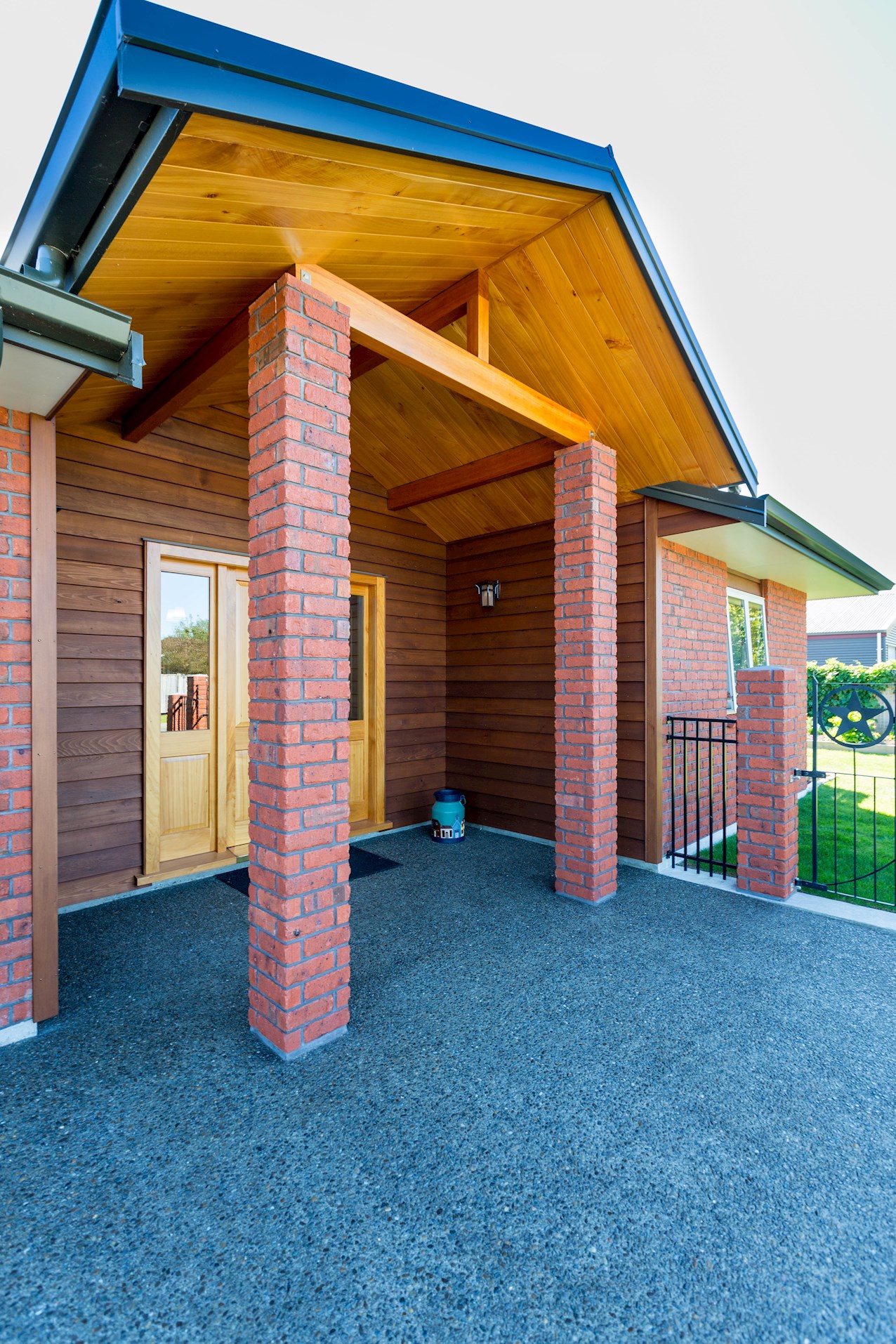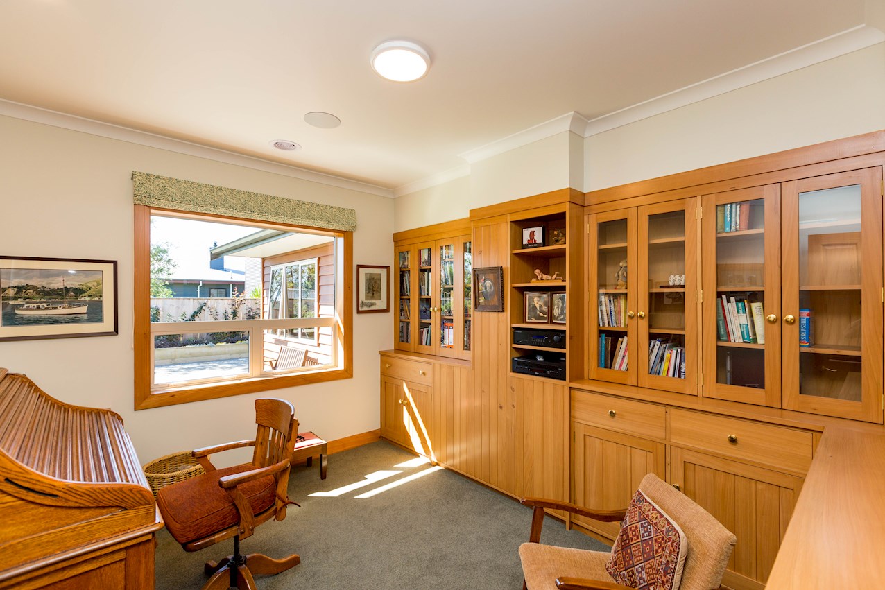 Clad in classic red brick, this farmhouse-style home looks smart in Marton. Located in a quiet cul-de-sac, the new residence is just what the retired occupants ordered. From the moment you step through the entrance (made with timber milled from the owners’ previous home) it’s obvious this place is special. Timber architraves and skirtings are a prominent detail, in keeping with the furniture on display. Wood also frames the windows and draws the eye as you journey through this beautifully constructed home. Three north-facing living areas soak up natural light and warmth. Gas central heating and a fireplace keep things toasty after the sun goes down. Outdoors, built-in gardens create lush and low-maintenance living spaces and mean there’s more time for relaxing. The large kitchen of the owners’ last home has been recreated here with a modern twist. Ample bench spaces and easy-access appliances promise everyday enjoyment. Three bedrooms and a large office allow room for live-in help should it be needed in future.