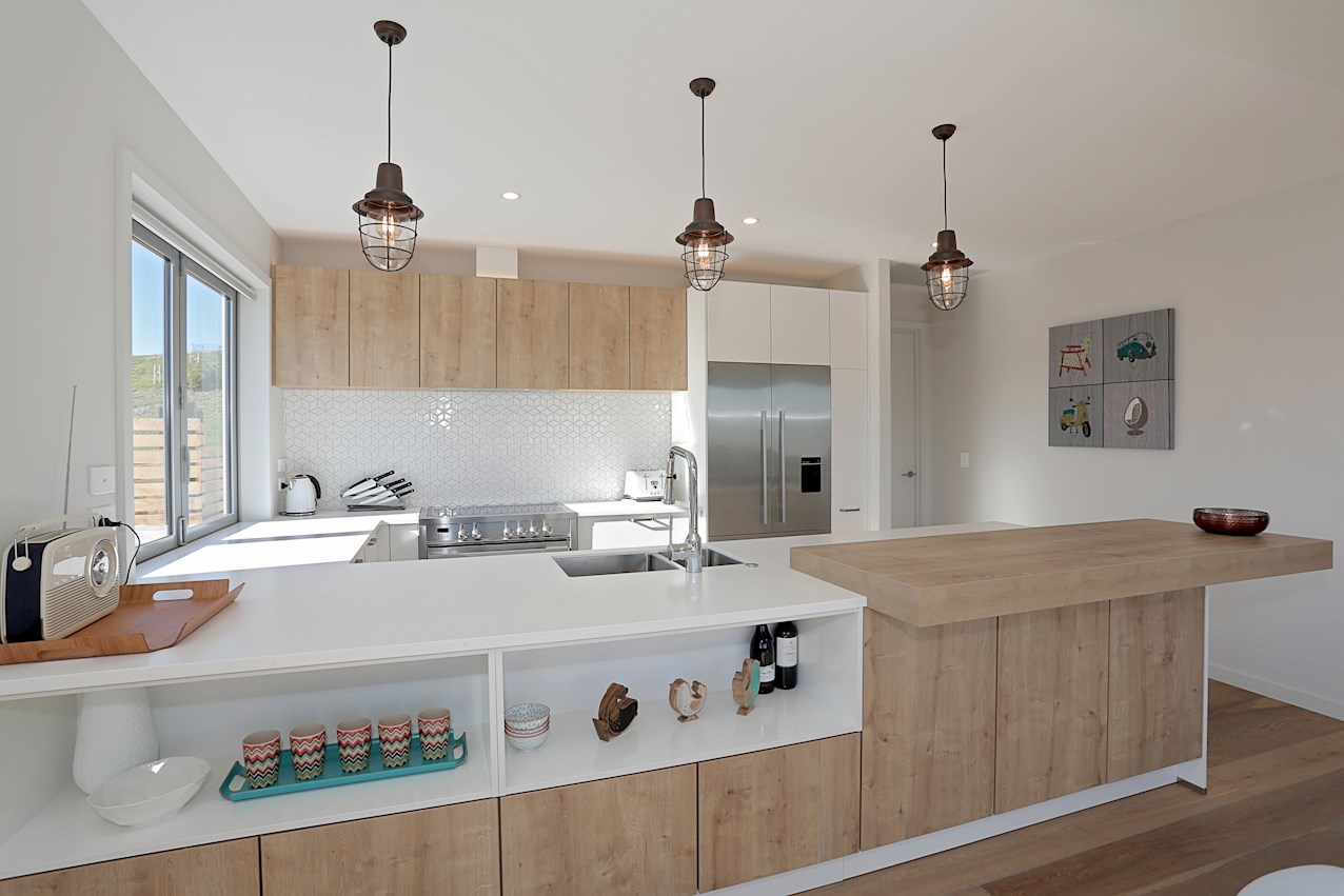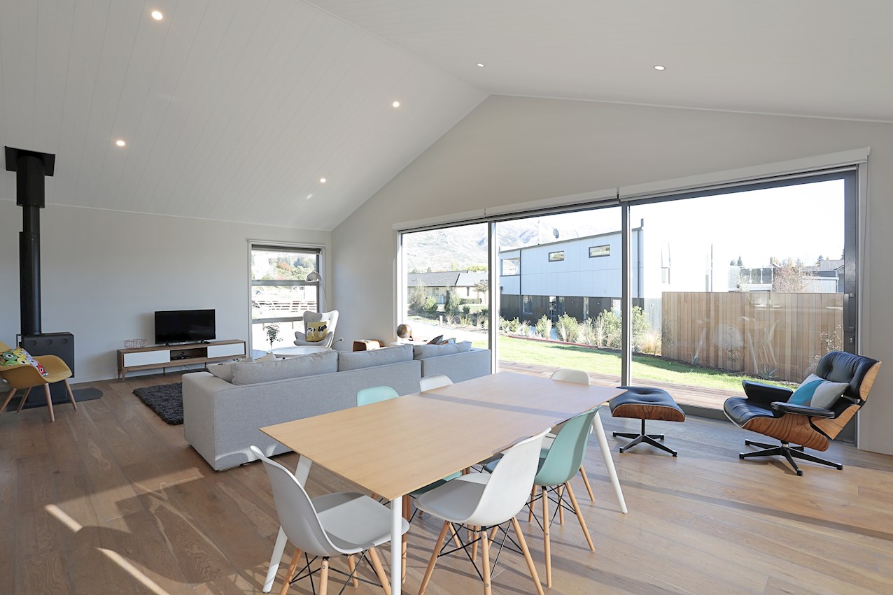 Vacations just got even more enticing for the lucky owners of this holiday home. Its position in a prime subdivision puts it close to town without spoiling the feeling of “getting away from it all”. The design is light, bright and contemporary, perfect for a modern family that wants to unwind in style over summer or a long weekend. Open-plan living and four bedrooms offer generous opti ons on 219sqm. Two bathrooms include an ensuite off the master bedroom. The kitchen, with its top-quality appliances and wraparound benchtop is an entertainer’s dream. The timber breakfast bar floats beautifully at one end and ties in with the overlay flooring. The blonded cabinetry makes this more than a humble holiday home,while pendant lights add a hint of rustic charm. Extensive insulation holds onto heat from the wood fire and ducted heat-pump system, which can also cool the home if needed. Inside flows to a sheltered patio and courtyard with schist fire, and to a street-facing deck and lawn. A large garage beautifully balances the home.