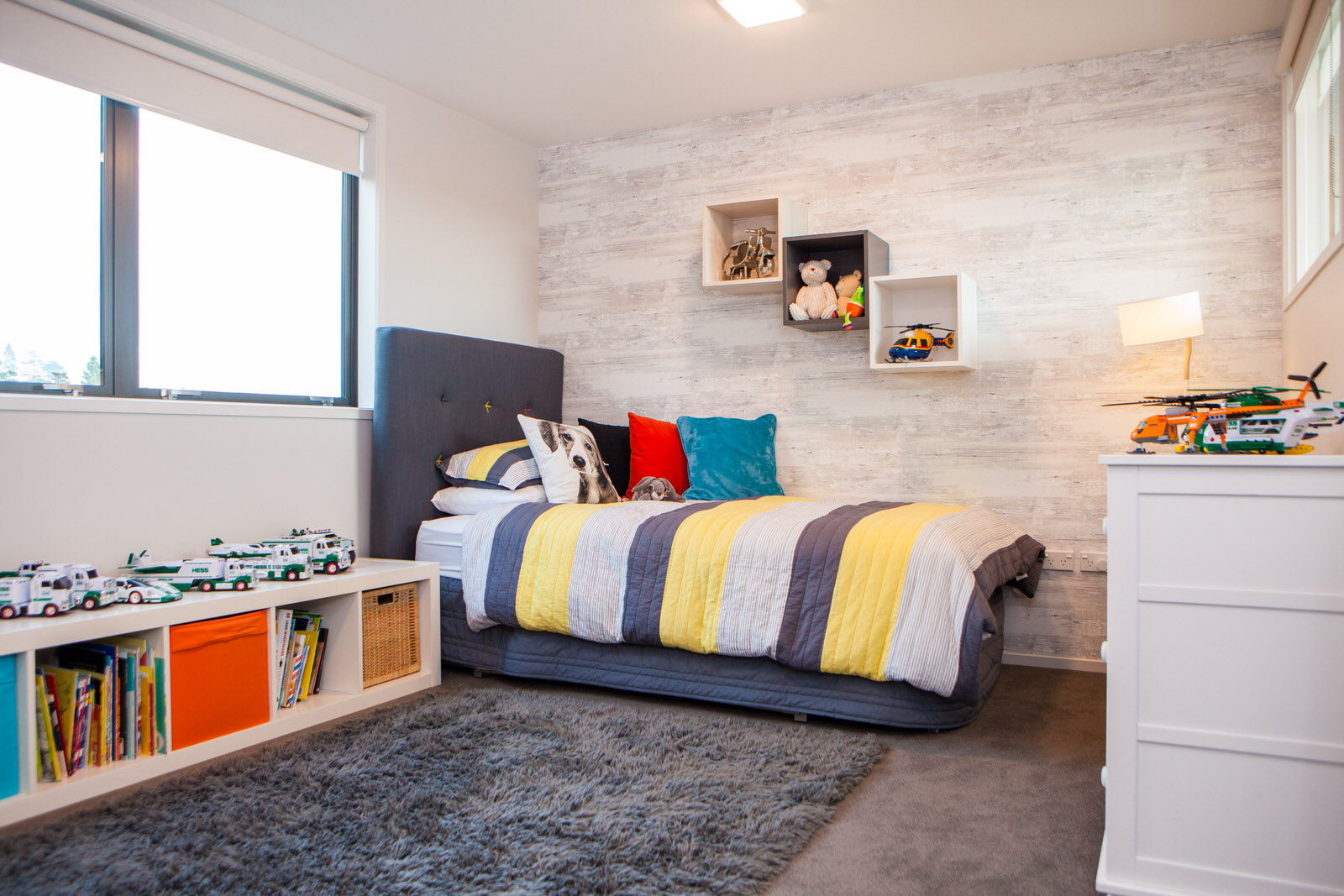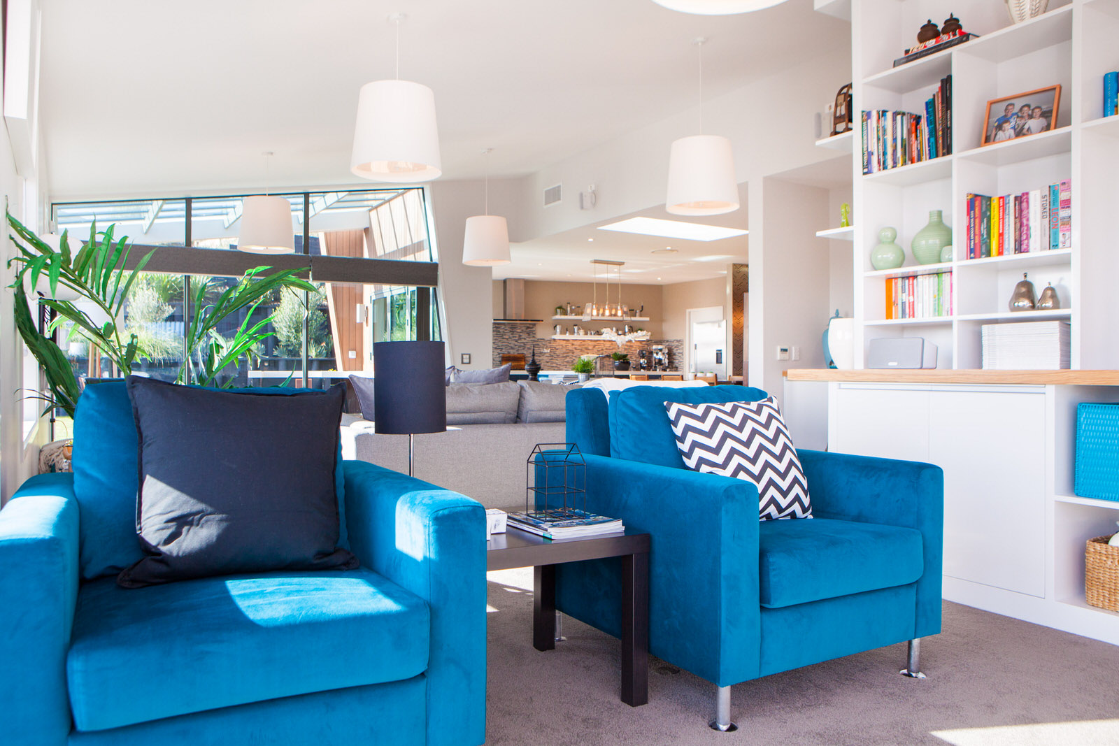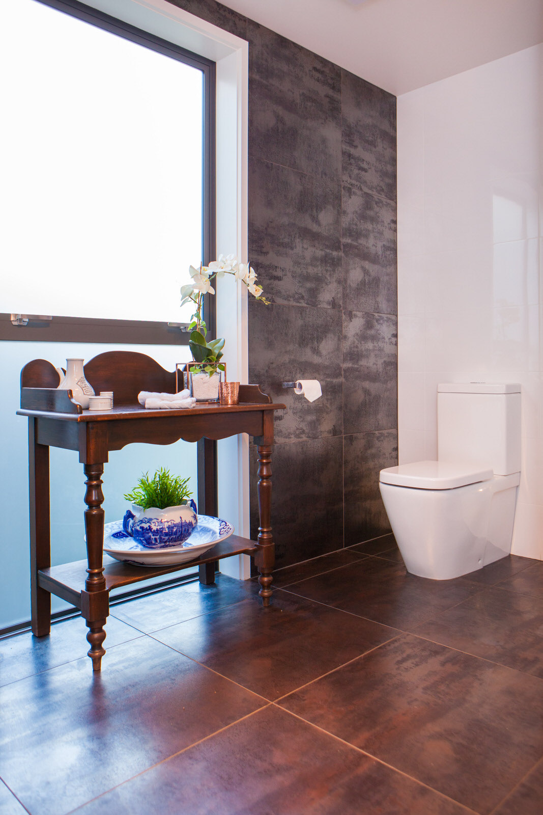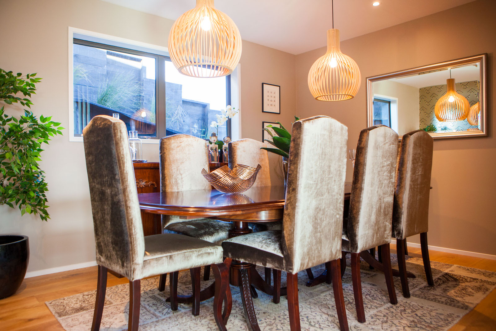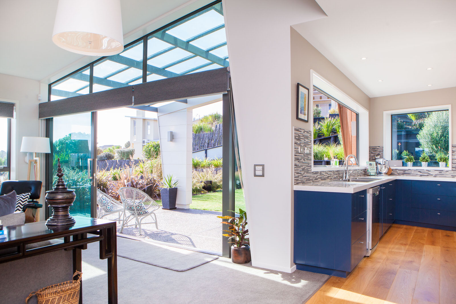 There’s no denying this modern Merrilands abode has wow factor. Its multiple volumes, stacked one in front of the other, and each progressively smaller, call to mind an unconventional Russian doll. It’s impossible not to take a closer look. But it’s not all form over function. Sidled up to its southern boundary, the 373sqm, four-bedroom home faces due north, enhancing solar gain in the spacious living areas and maximising space for outdoor entertaining. The lower level houses a large concrete block double garage, separate laundry, entry and games/media room. Next level up is the main open-plan living area, office, kitchen with scullery, dining and outdoor living. Overnight visitors will feel right at home thanks to the stylish guest bedroom and bathroom. Heading upstairs to the third and final floor, you’ll find three bedrooms, including the well-appointed master bedroom with its beautifully designed ensuite and walk-in wardrobe. A generous family bathroom on this level completes the exceptional example of modern living. Photo Credit: Rodger Richardson