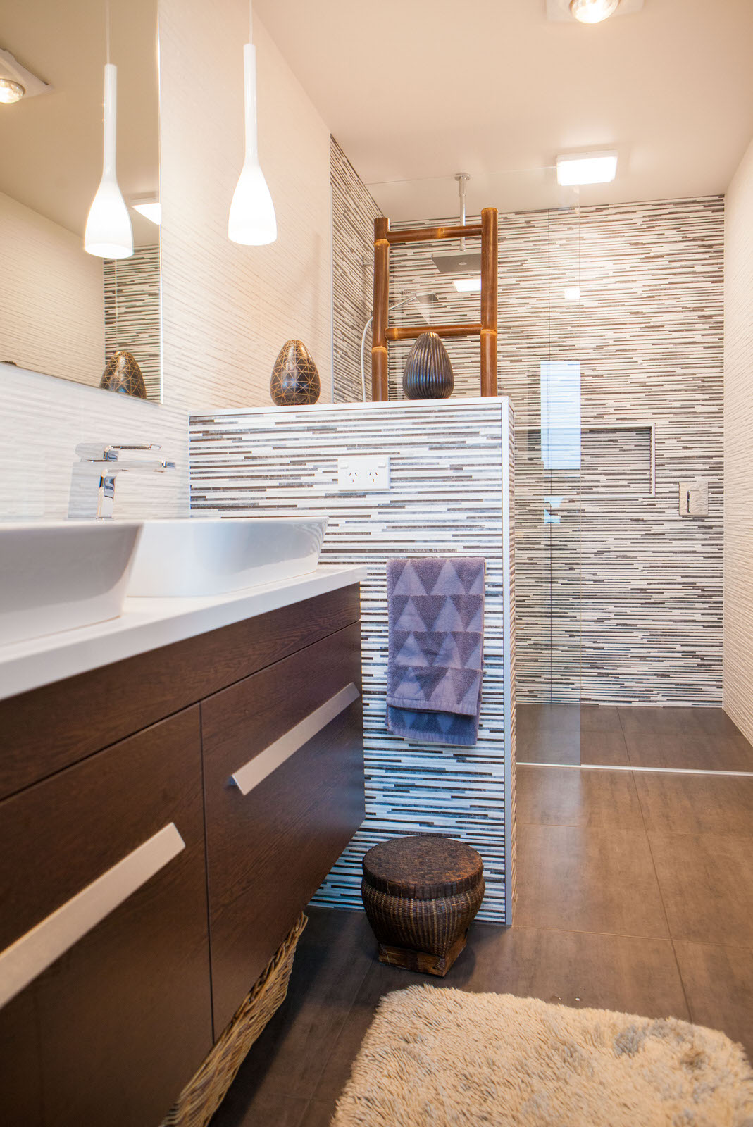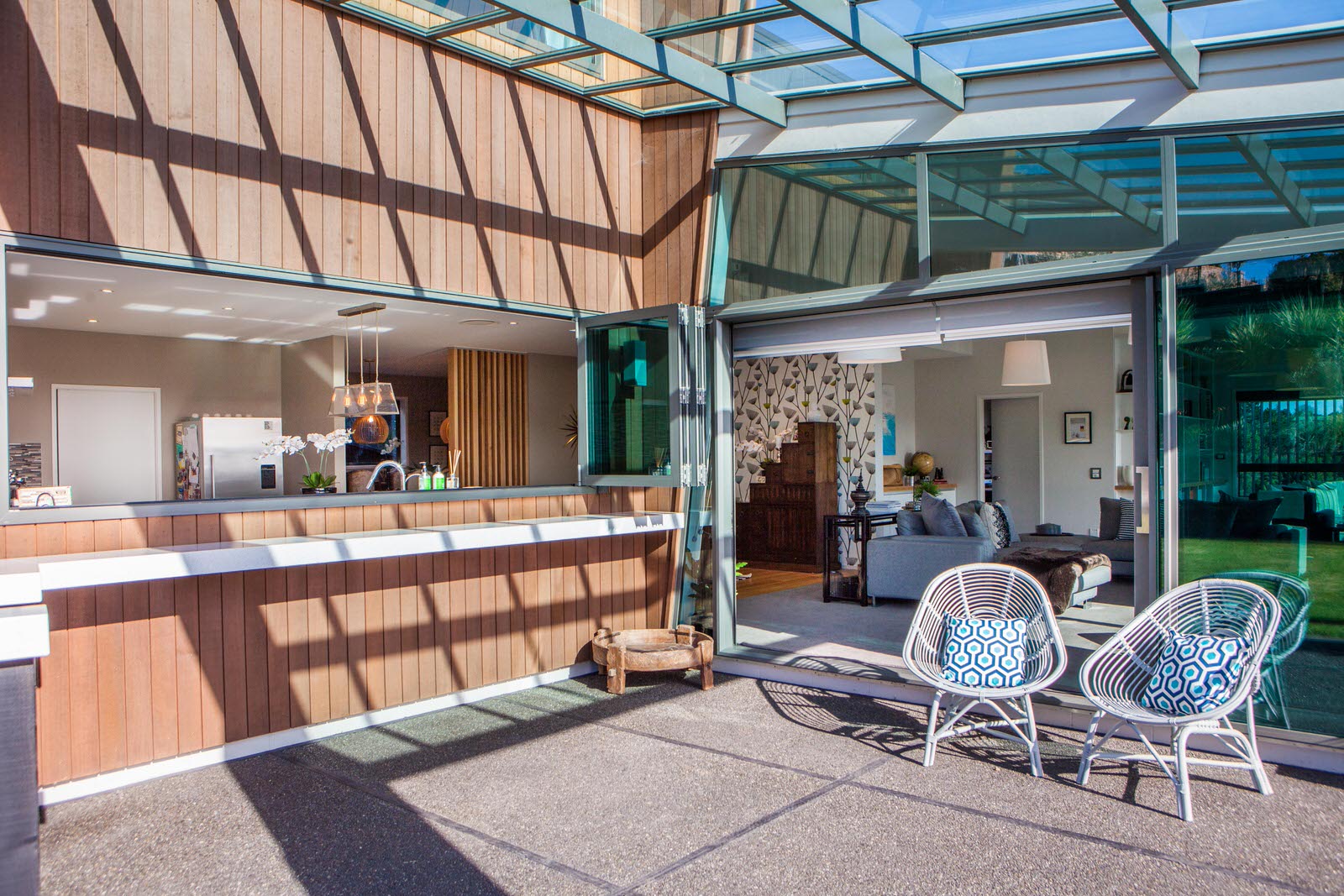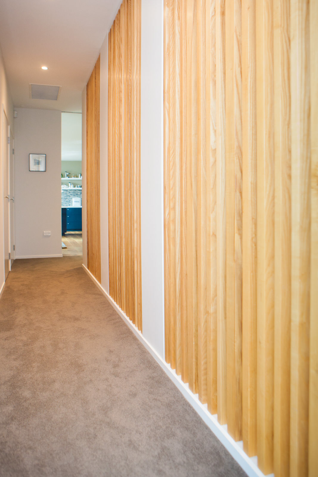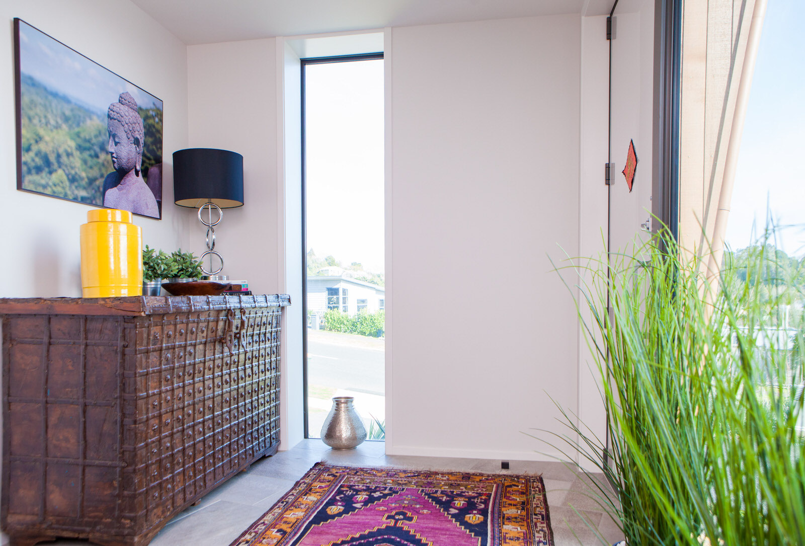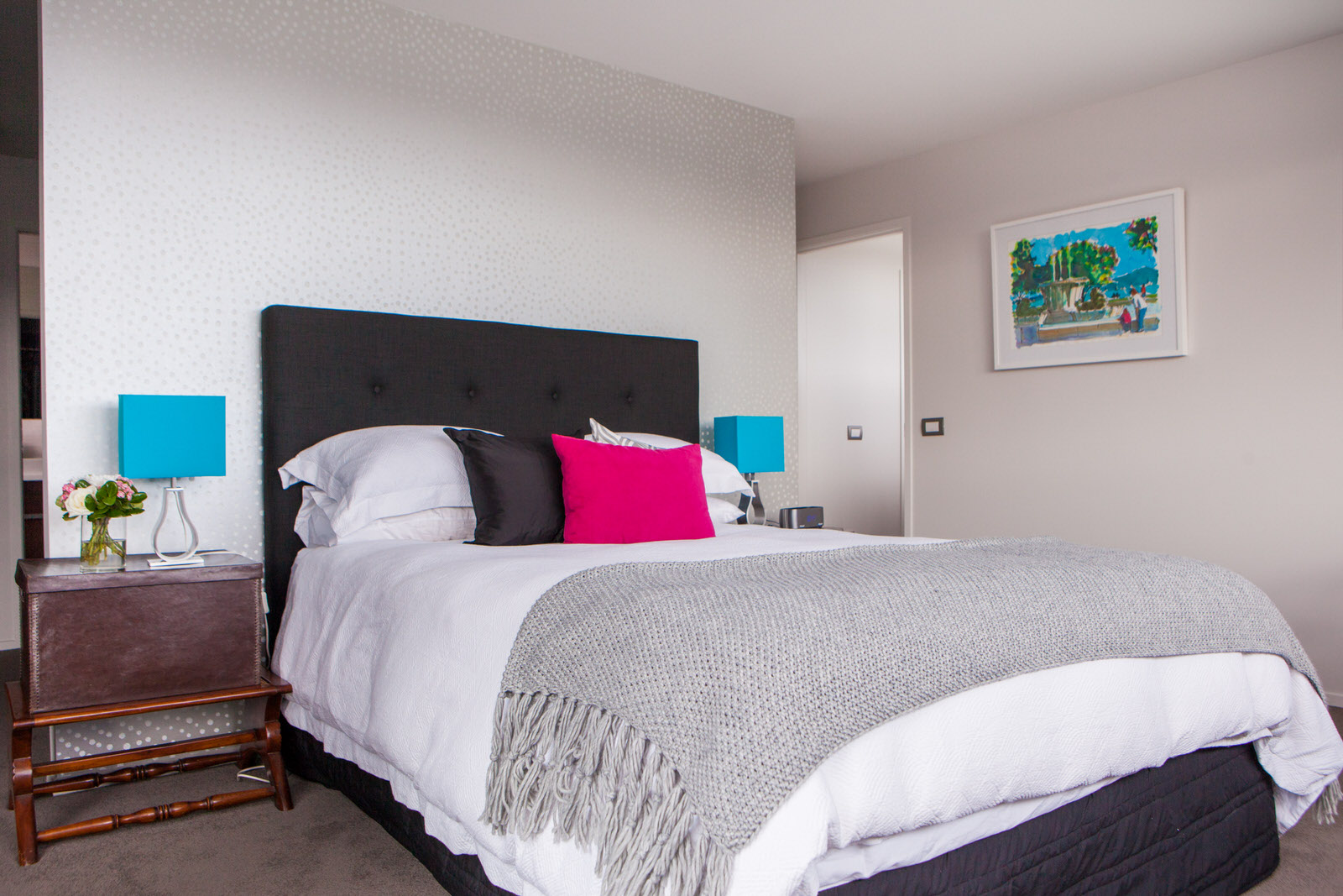 There’s no denying this modern Merrilands abode has wow factor. Its multiple volumes, stacked one in front of the other, and each progressively smaller, call to mind an unconventional Russian doll. It’s impossible not to take a closer look. But it’s not all form over function. Sidled up to its southern boundary, the 373sqm, four-bedroom home faces due north, enhancing solar gain in the spacious living areas and maximising space for outdoor entertaining. The lower level houses a large concrete block double garage, separate laundry, entry and games/media room. Next level up is the main open-plan living area, office, kitchen with scullery, dining and outdoor living. Overnight visitors will feel right at home thanks to the stylish guest bedroom and bathroom. Heading upstairs to the third and final floor, you’ll find three bedrooms, including the well-appointed master bedroom with its beautifully designed ensuite and walk-in wardrobe. A generous family bathroom on this level completes the exceptional example of modern living. Photo Credit: Rodger Richardson