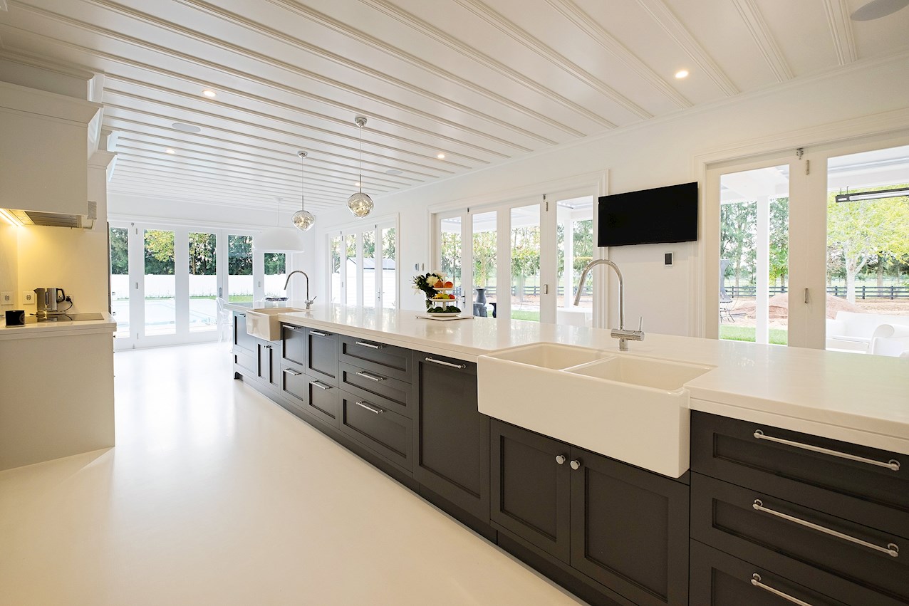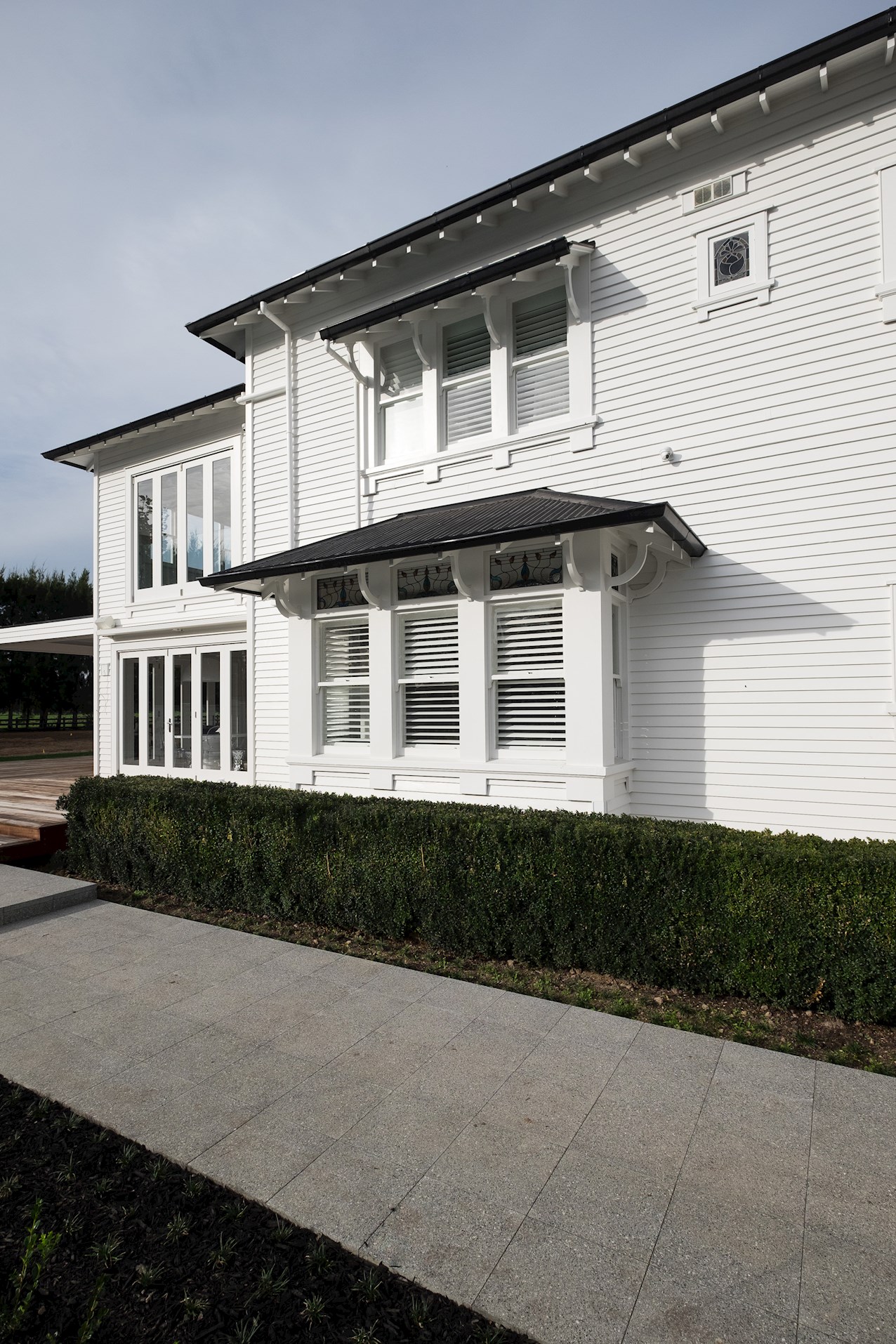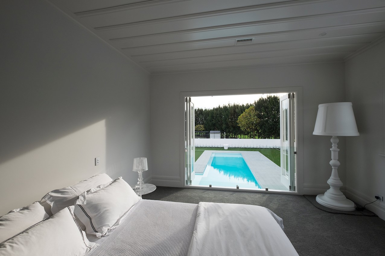 No expense has been spared in the superb renovation of this terrific two-storey home in Tamahere. Updated with incredible attention to detail, the six-bedroom, five-bathroom residence strikes the perfect balance between contemporary luxury and traditional charm. The kitchen is a dream come true, ticking all the boxes for family friendly functionality and fine dining with friends. The bathrooms have enjoyed a revamp too, not least the ensuite off the spacious master. A new layout has improved the sense of flow throughout. Light floods in through ample glazing. In the open-plan area, extensive glass doors peel back to a wonderful wraparound deck. It’s a stellar spot to soak up the sun and serenity and Louvretec ceilings are a nice touch. Back inside, air conditioning keeps things cool in summer and warm in winter. Original details have been lovingly retained and restored, from the floors to the feature ceilings. Chandeliers and stained glass add opulence. The classic weatherboard exterior has been refurbished and kitted out in a fresh coat of colour.