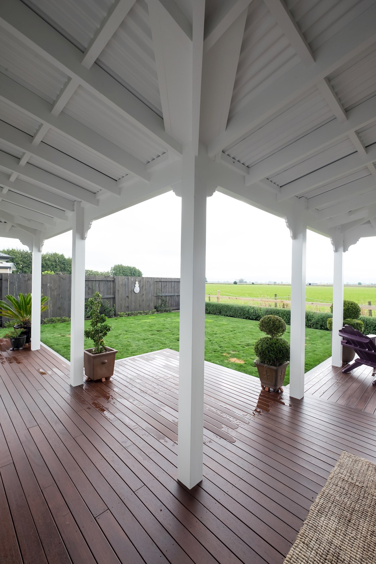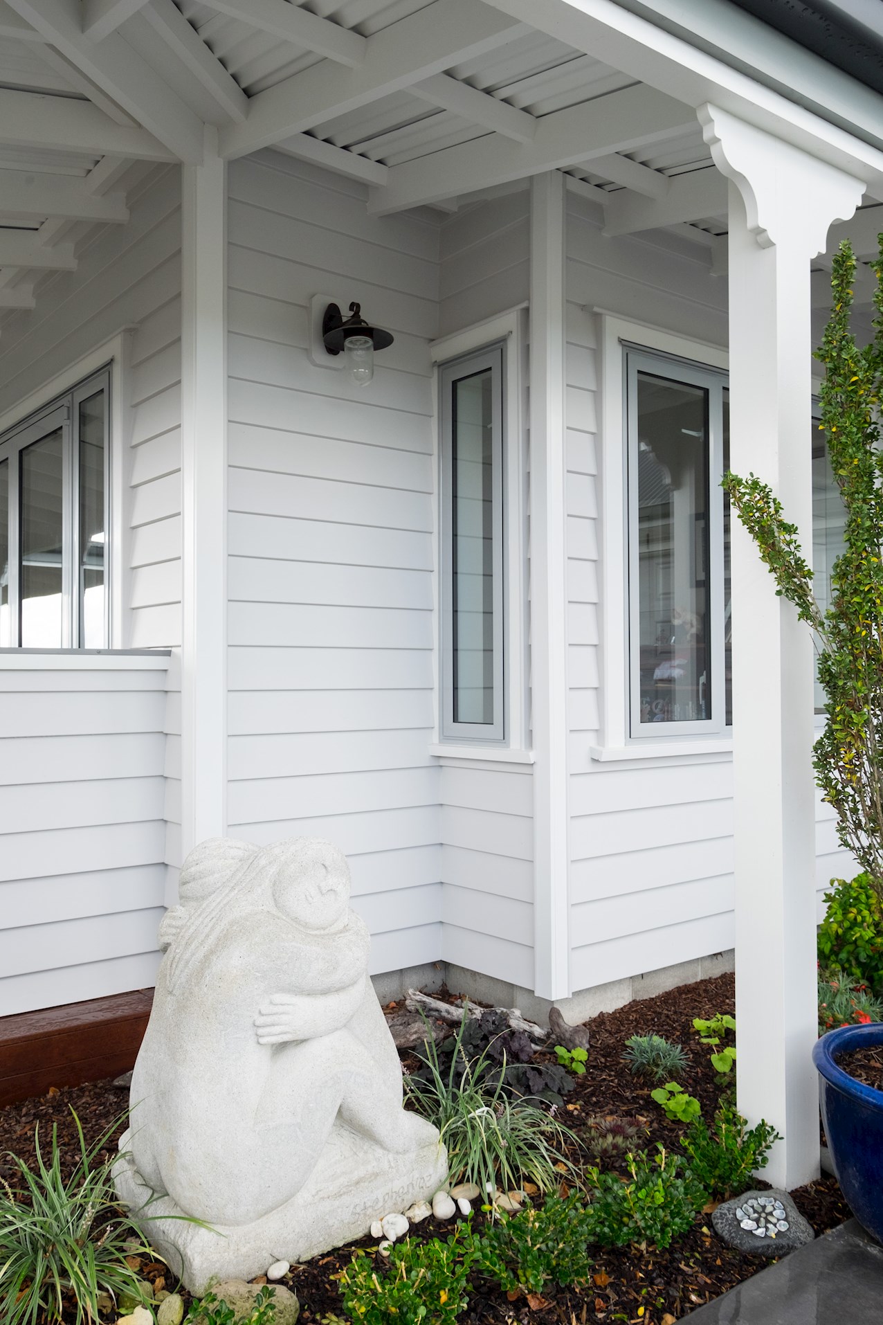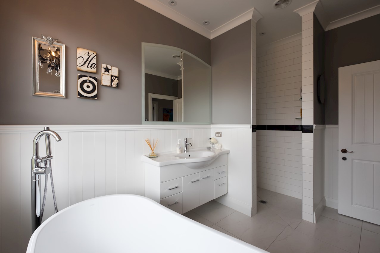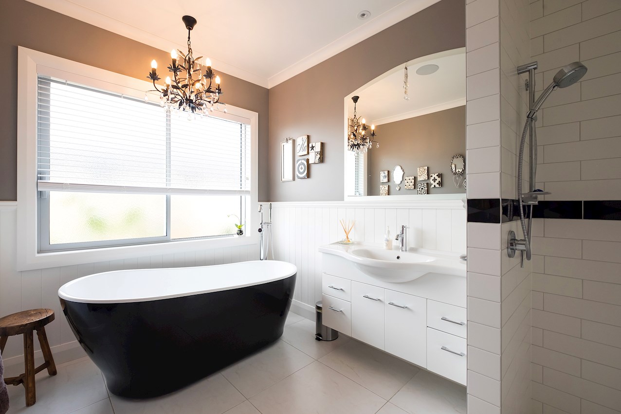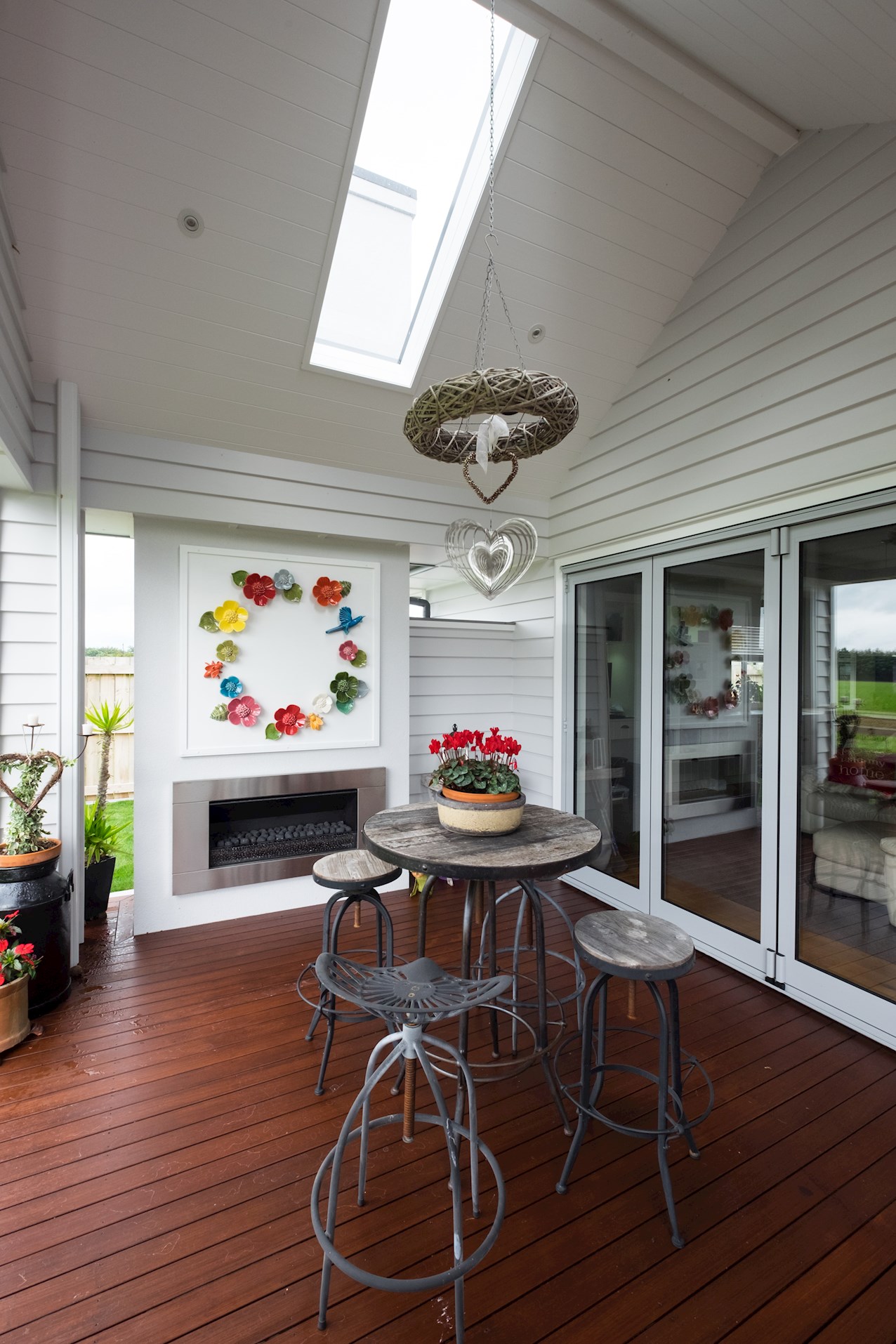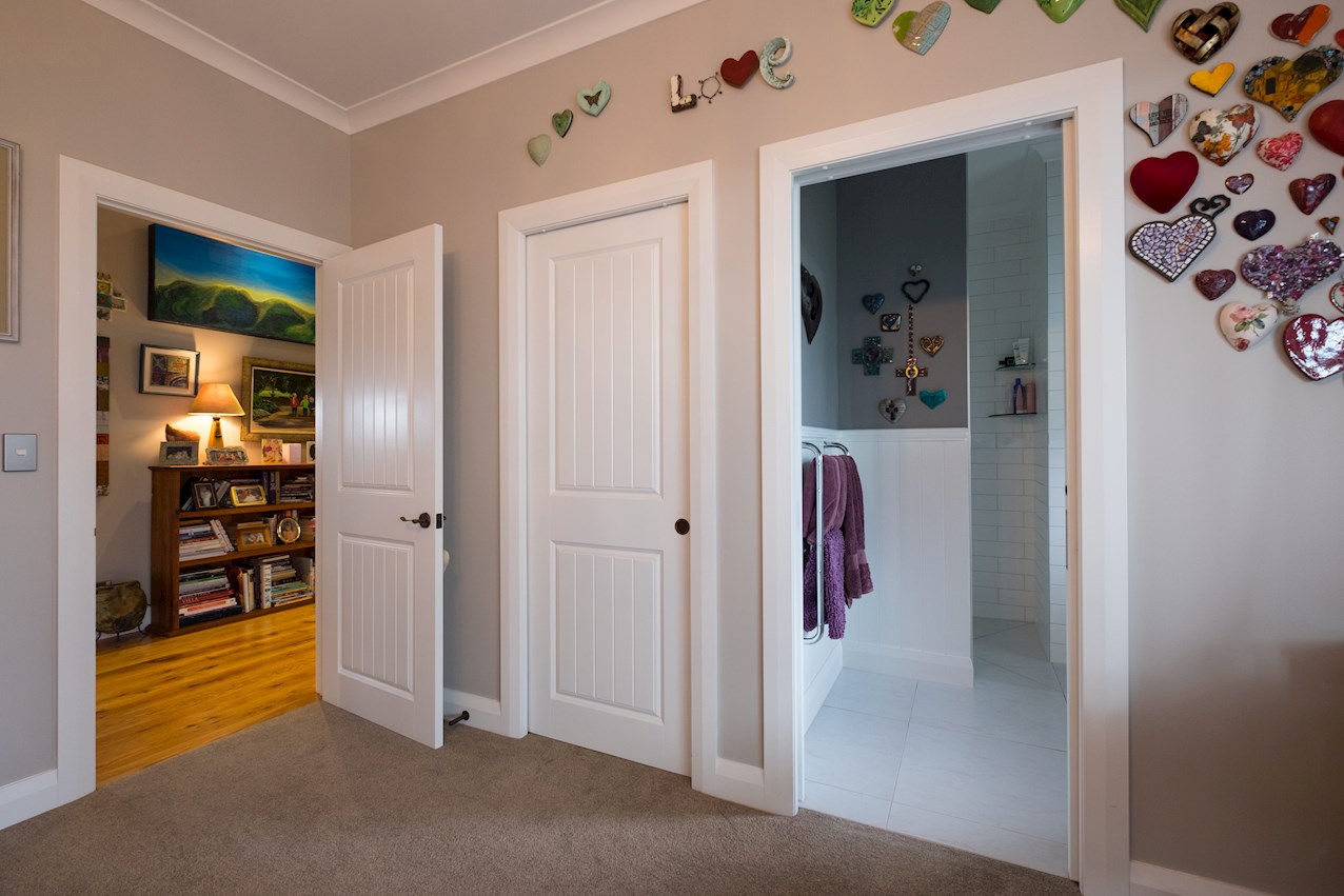 This modern take on a traditional villa hits the mark in Matamata. The fresh and light exterior is elegant and understated. A huge, wraparound deck conjures visions of summer soirees. The portico with gas fire warms late into the evening, so there’s no need to rush inside when the temperature drops. The classic yet contemporary interior boasts four bedrooms, two bathrooms and dual living spaces, including an open-plan layout. A black central island, purple splashback and stainless steel appliances give the entertainer’s haven a dramatic edge. Meanwhile, stepped ceilings, wide architraves and skirtings, and panelled doors foster a traditional feel. The antique bronze hardware on the doors deserves a medal. Window seats with bookshelves in the bedrooms are another fine feature. Plenty of storage, a laundry and a garage with attic are pleasingly practical additions. In the bathroom, the bold, beautiful freestanding tub is a light and lovely place to soak at the end of a long day.
