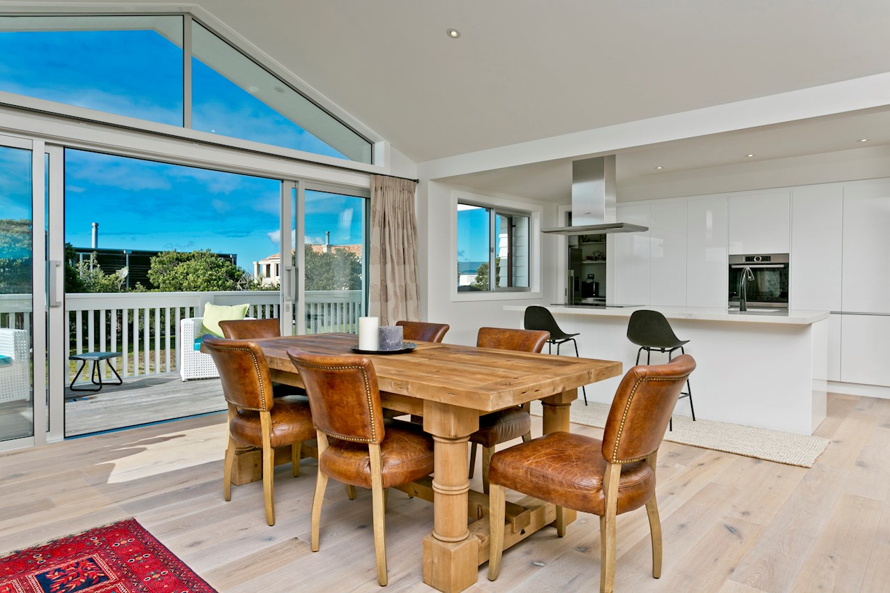 Living close to Omaha’s beachfront is a dream come true. But the challenging marine conditions also mean this house had to have durable cladding to withstand sea spray, strong sunlight and torrential rain. Good indoor-outdoor flow was also wanted on both sides of the home, due to wind exposure. So, its concrete block spine wall, bagged and painted, with pine weatherboard really comes into its own.