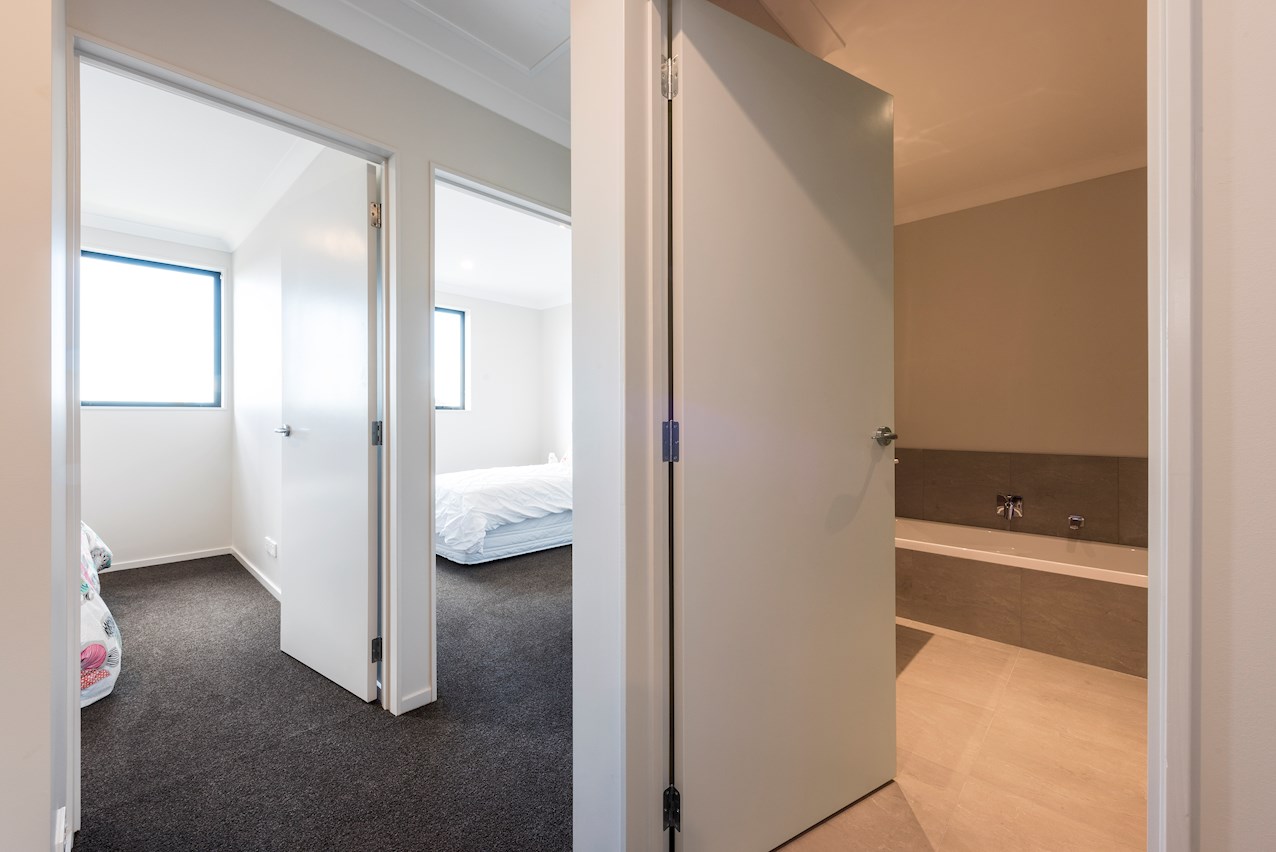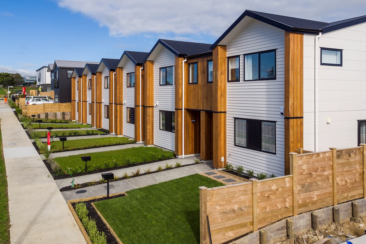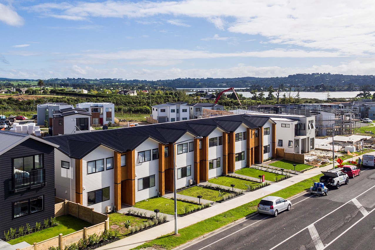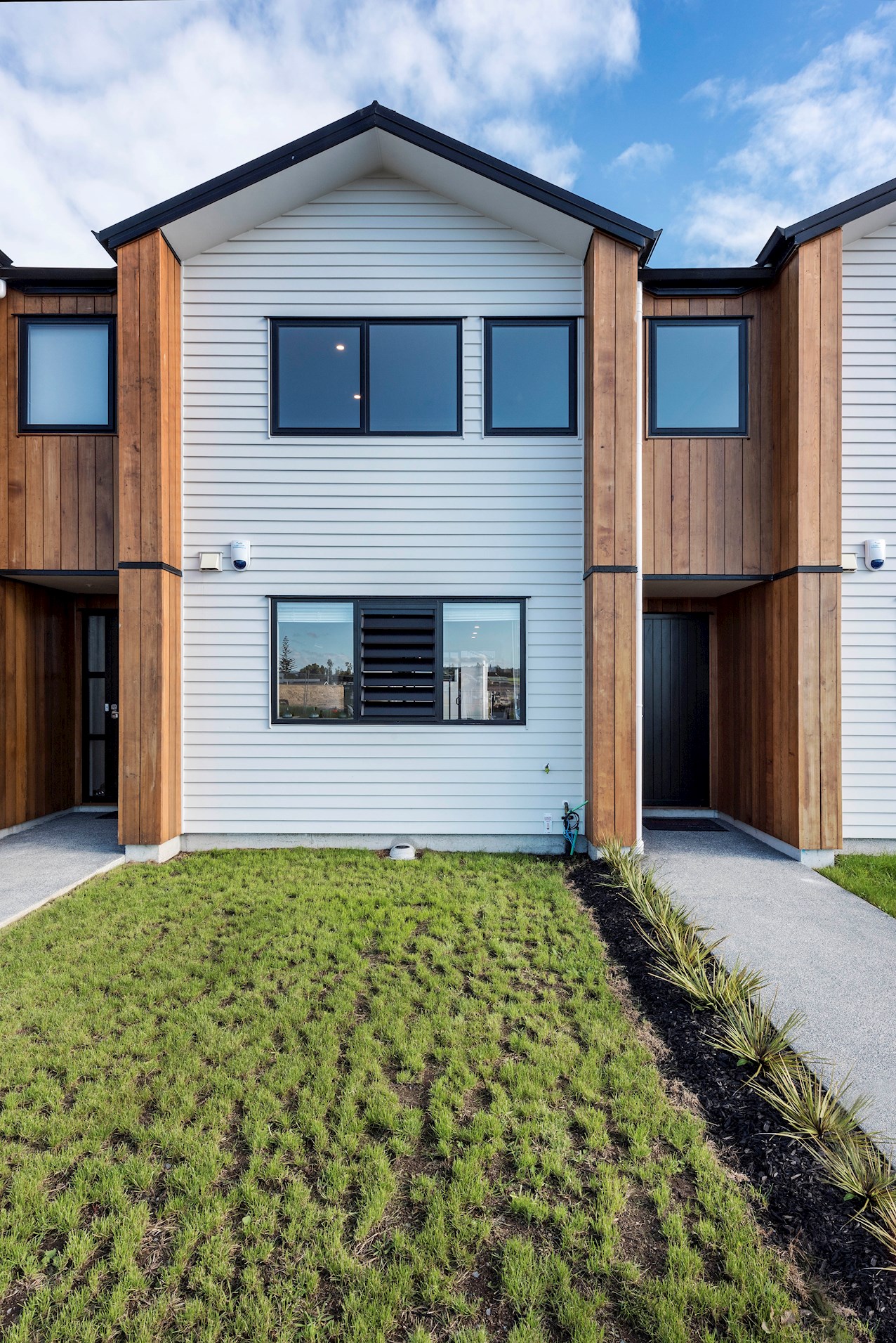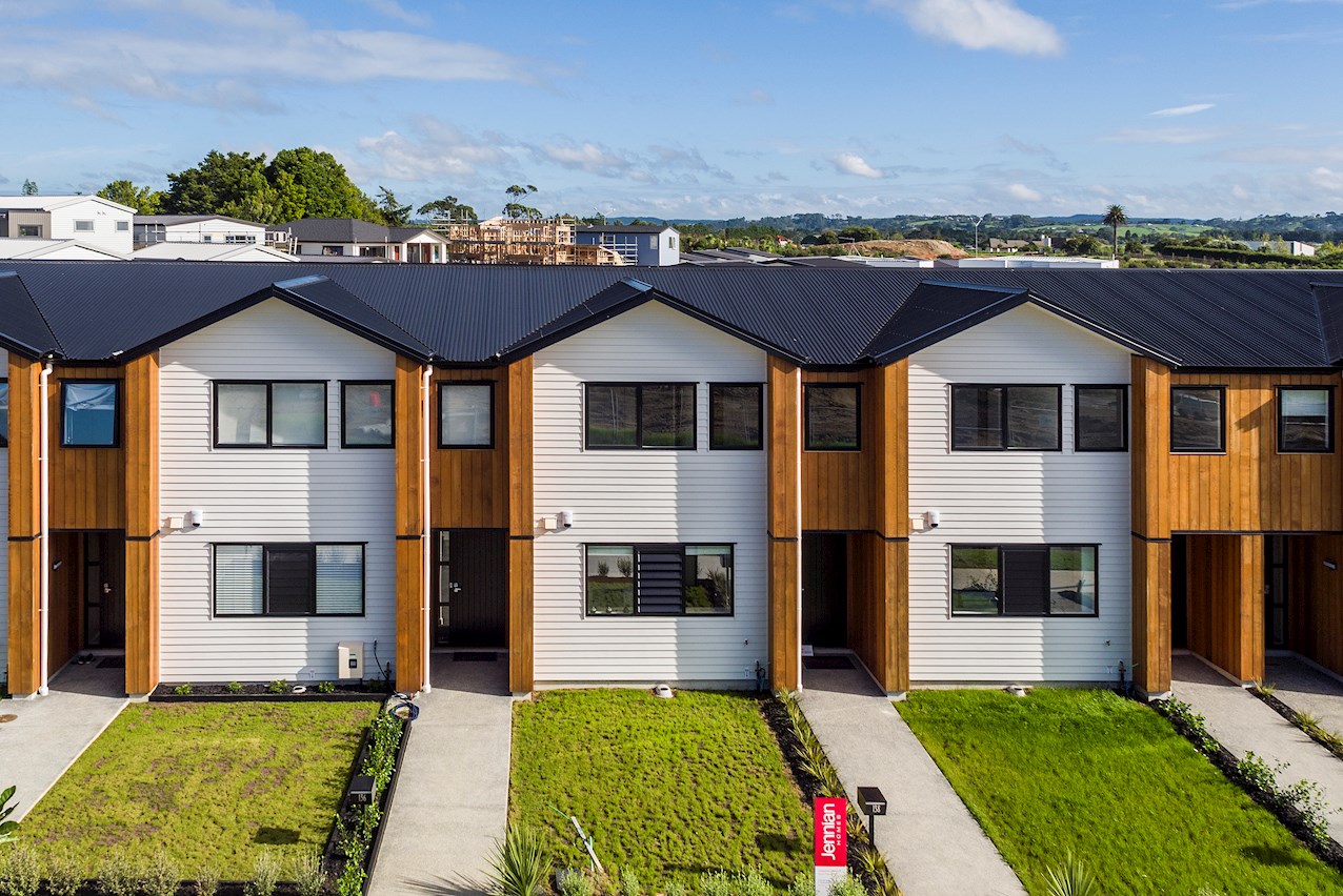 Clad in crisp weatherboard with the warmth of vertical wood, these Auckland homes are in line with modern design. Part of a multi unit development, the three-bedroom terraced dwellings offer functional family living and laidback relaxation on 140sqm. Soundproofing keeps the peace between neighbours.