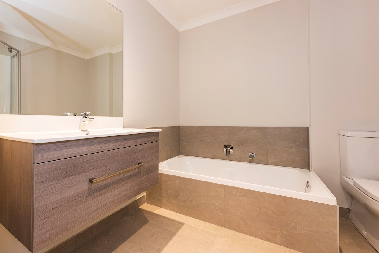 Upstairs the master bedroom beckons. Its walk-through wardrobe leads to a private ensuite. Two further light-filled bedrooms share a family bathroom with bathtub. Soak up the luxury.