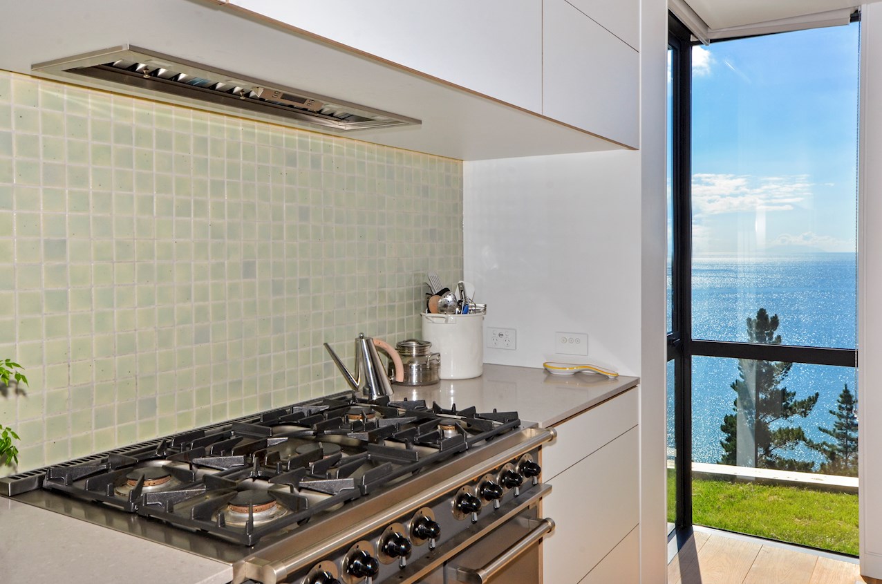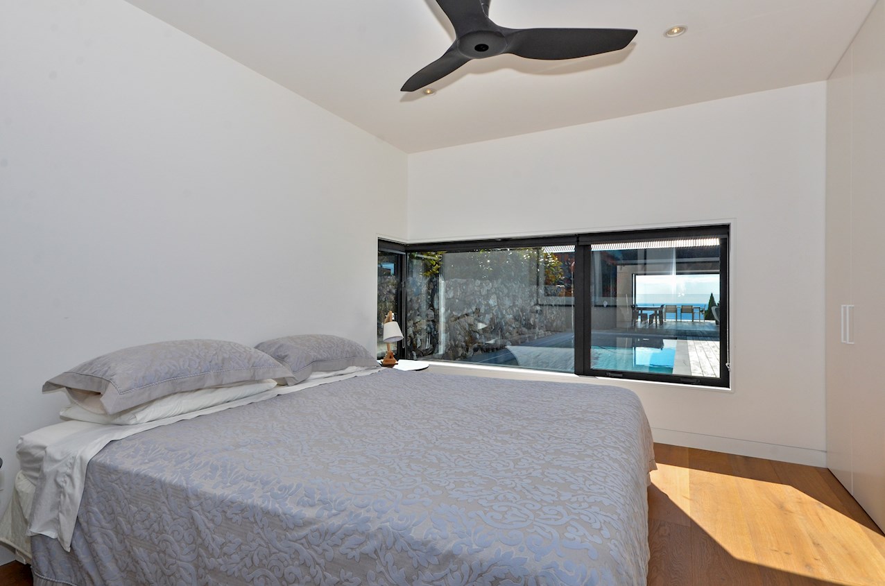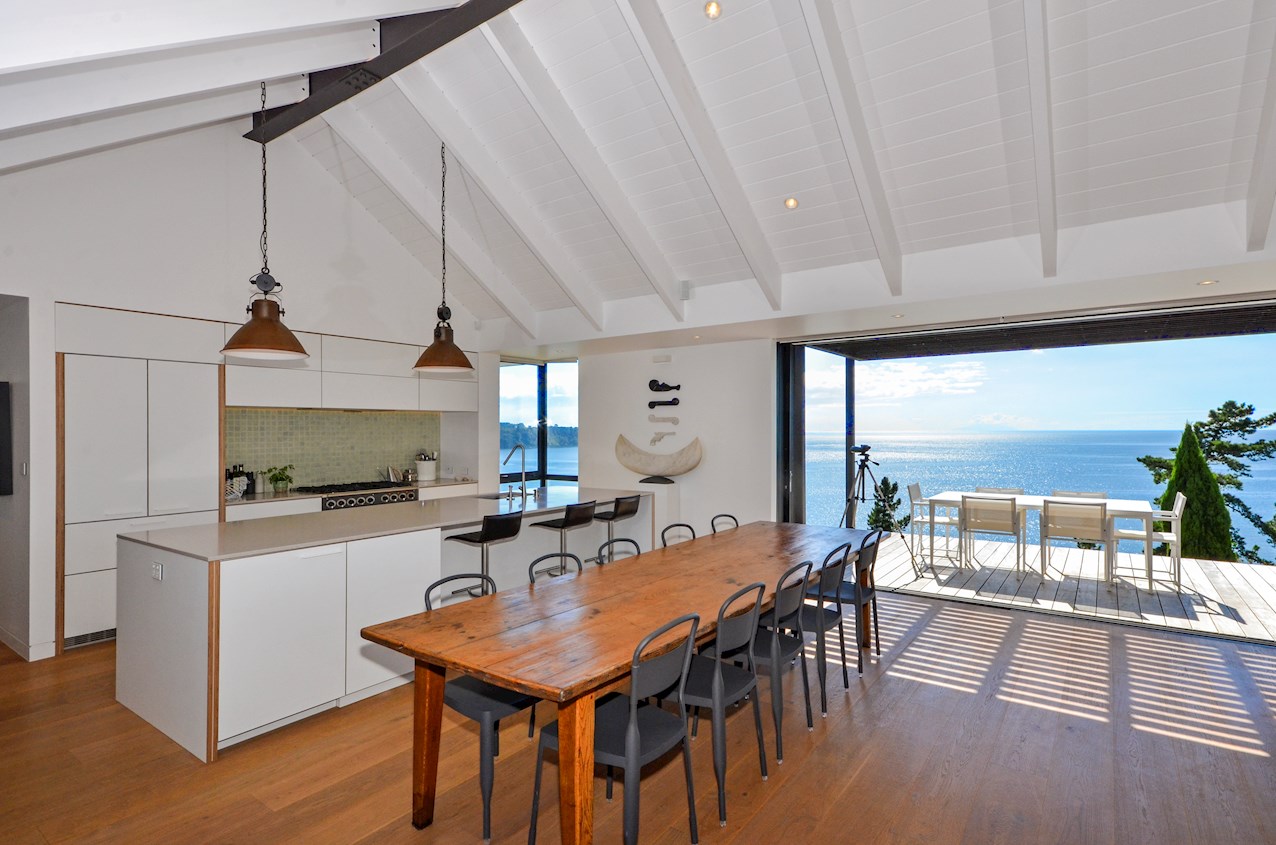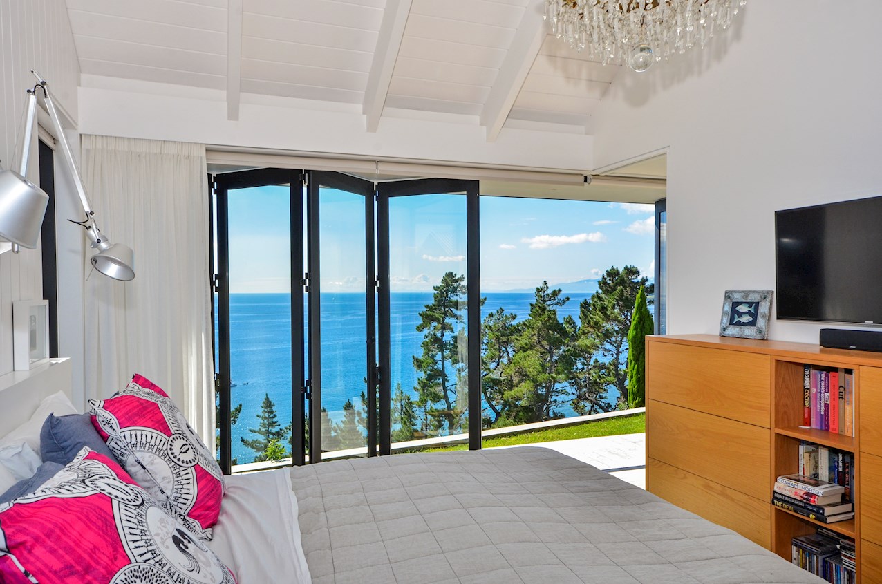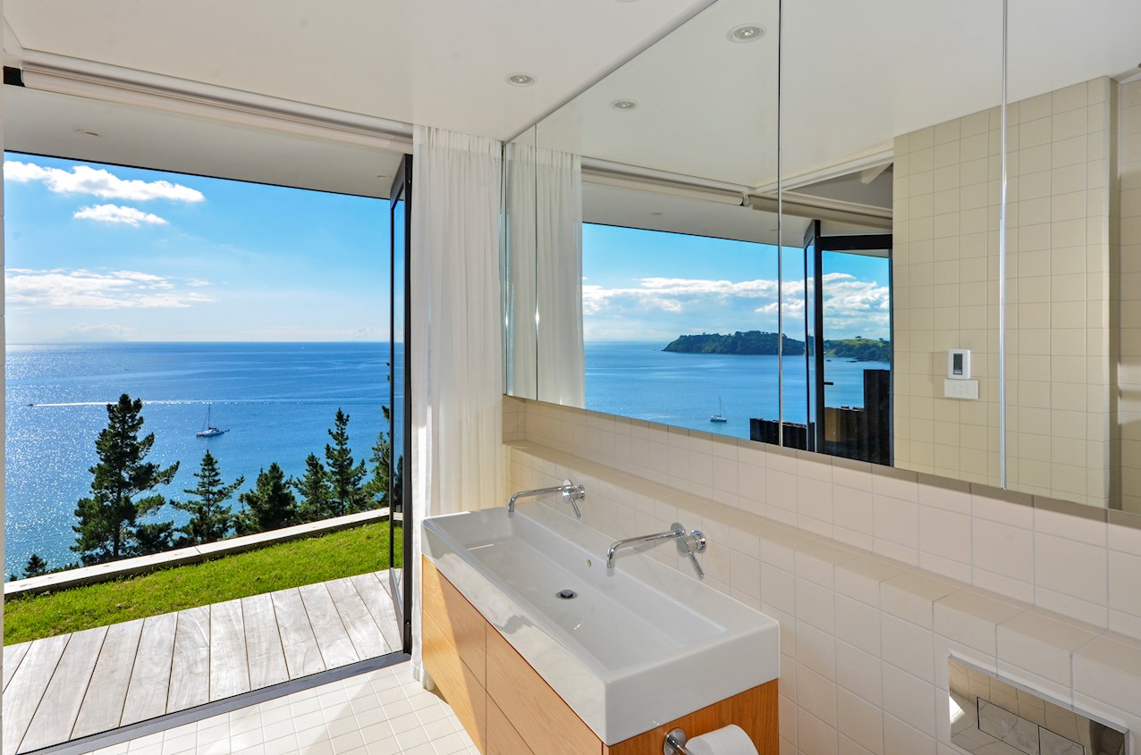 With glass bifolds eliminating a whole wall, the owners can even soak up the sight of the sea from the comfort of their master suite’s bed or bathroom.